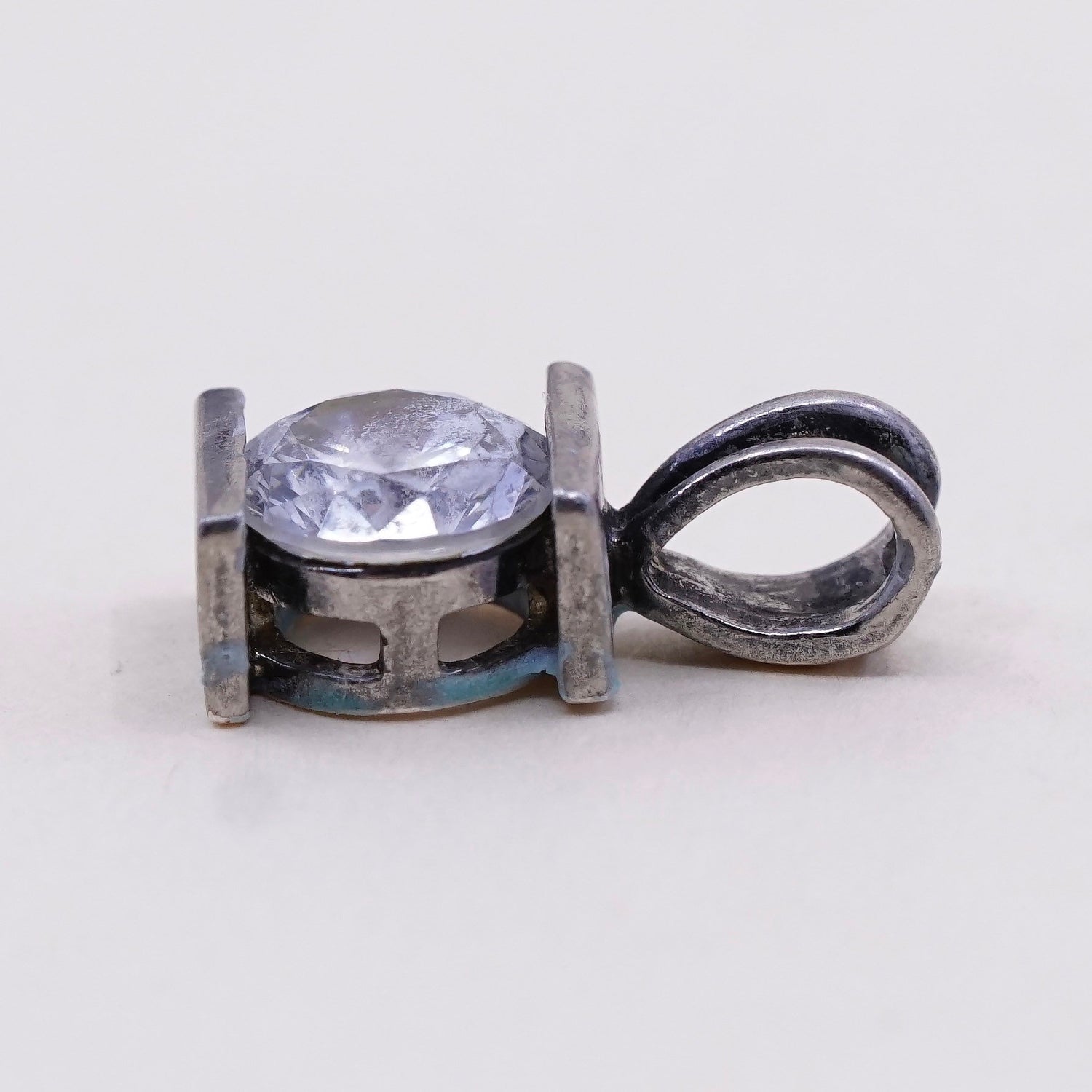 Vintage sterling silver cz crystal pendant, 925 pendant