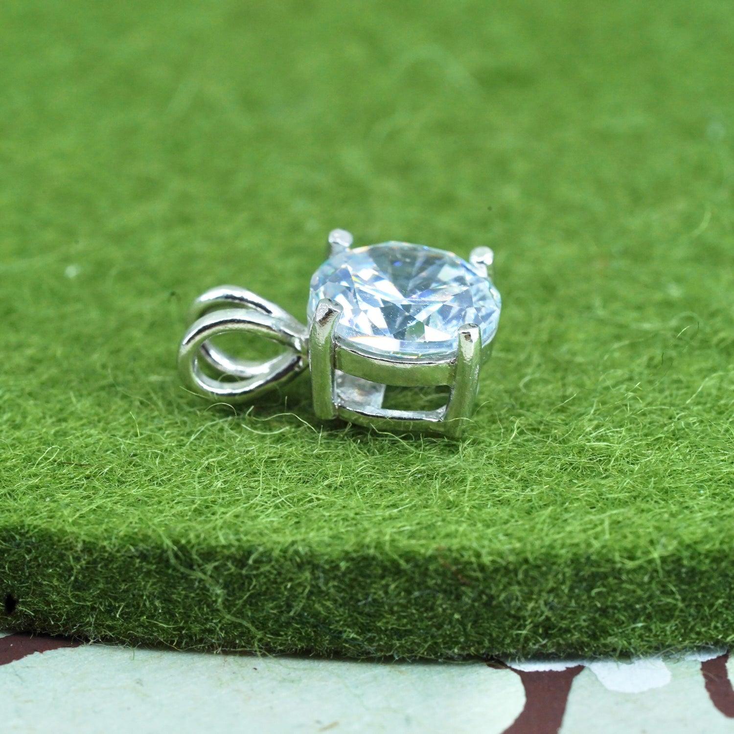 Vintage sterling silver cz crystal pendant, 925 silver pendant, stamped 925