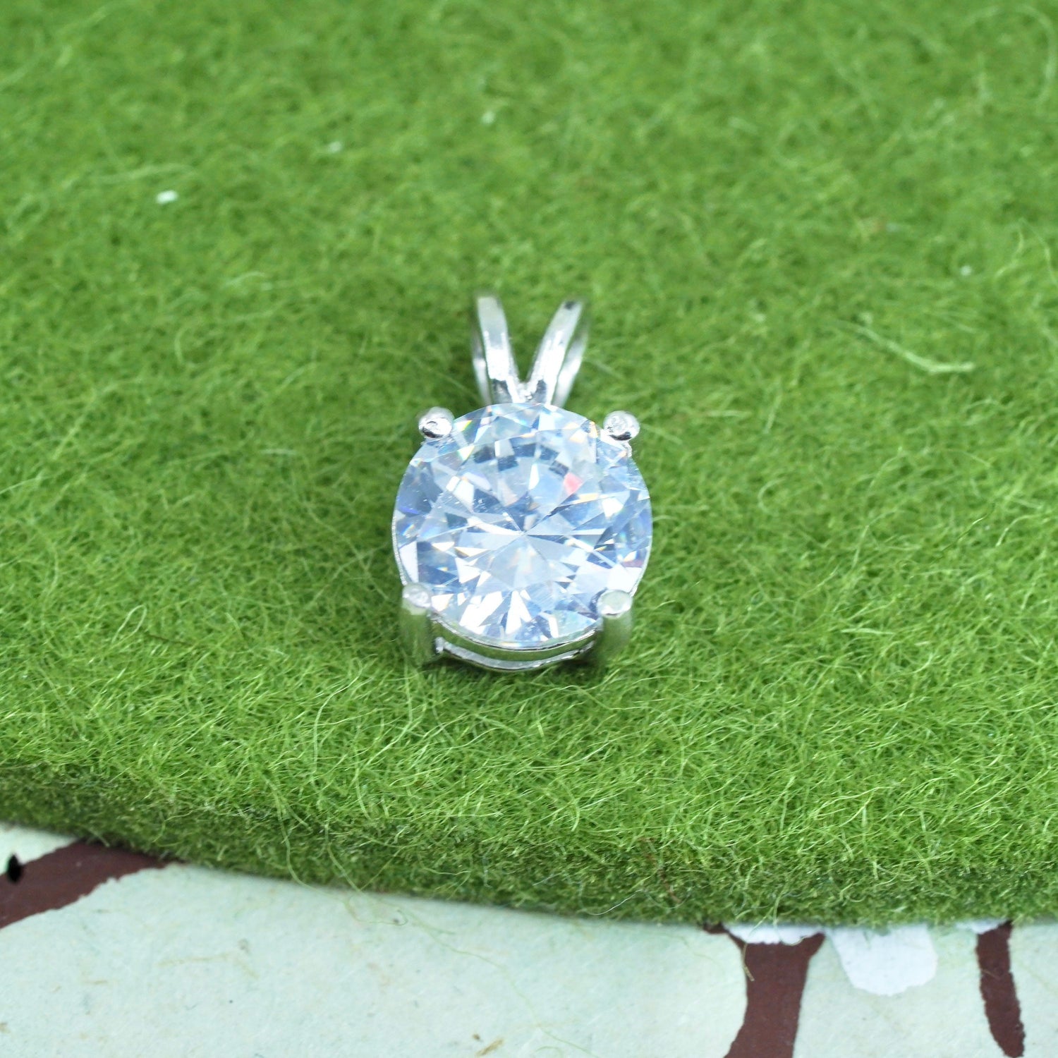 Vintage sterling silver cz crystal pendant, 925 silver pendant