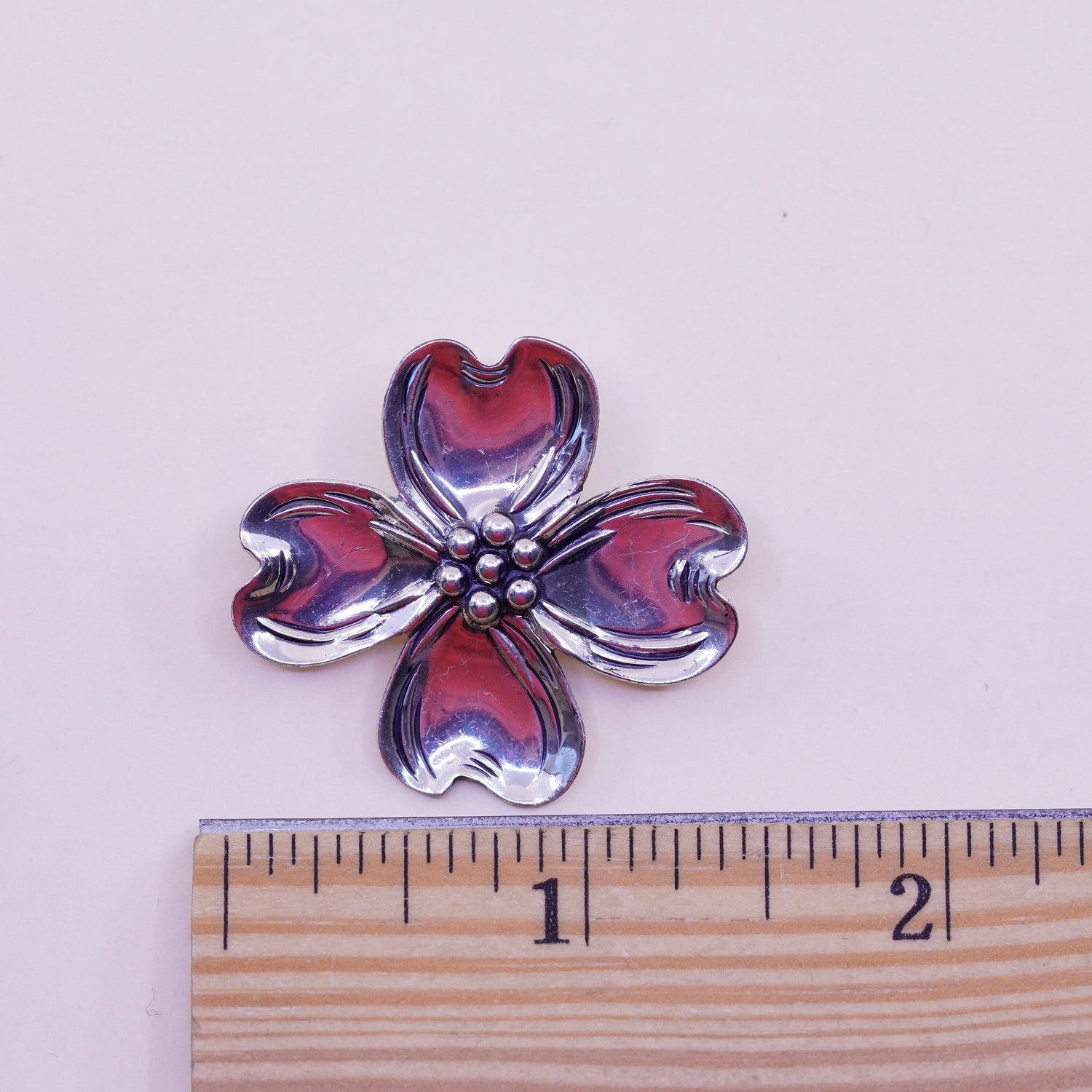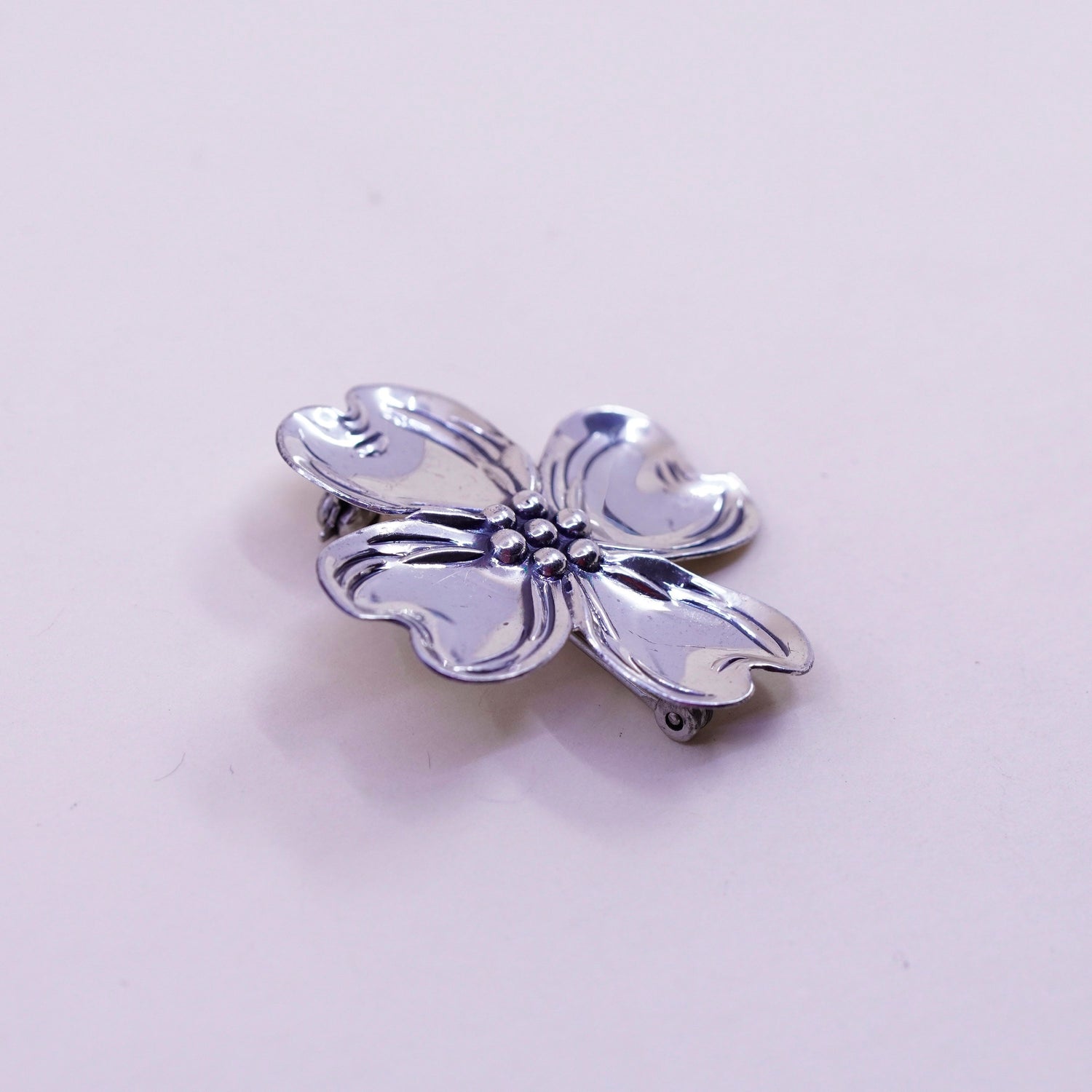 Vintage sterling silver dogwood flower shaped brooch, 925 pin