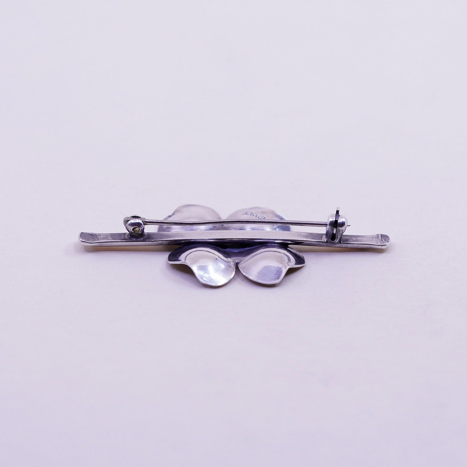 Vintage sterling silver dogwood flower shaped brooch, 925 pin, stamped NYE sterling
