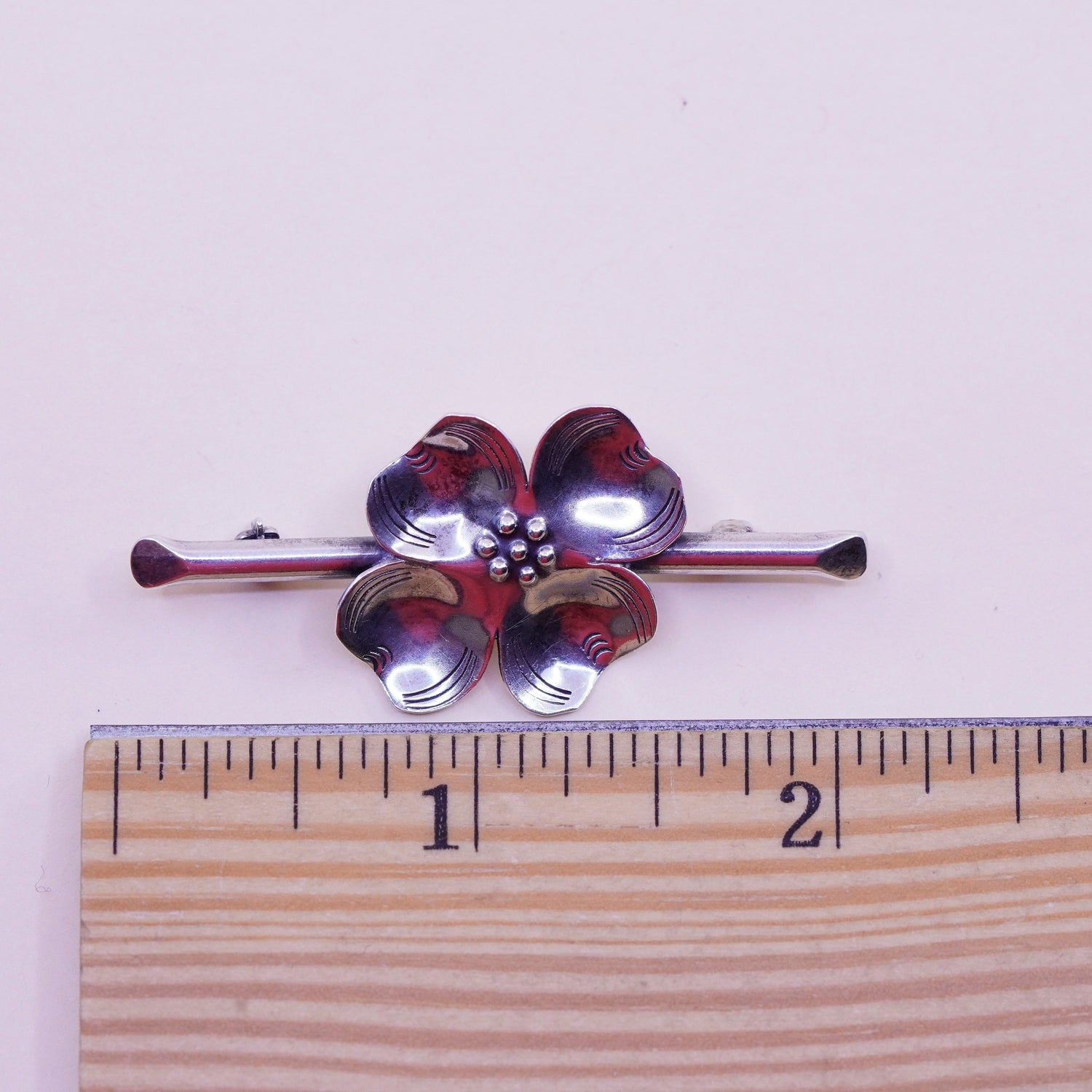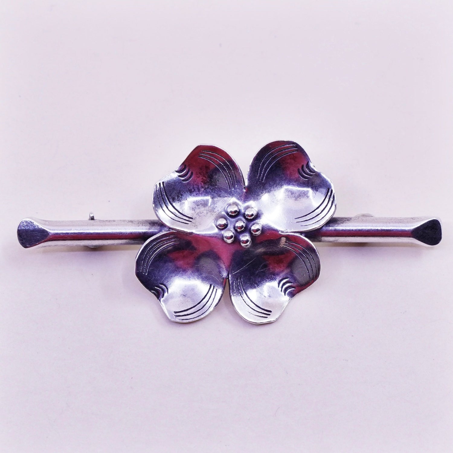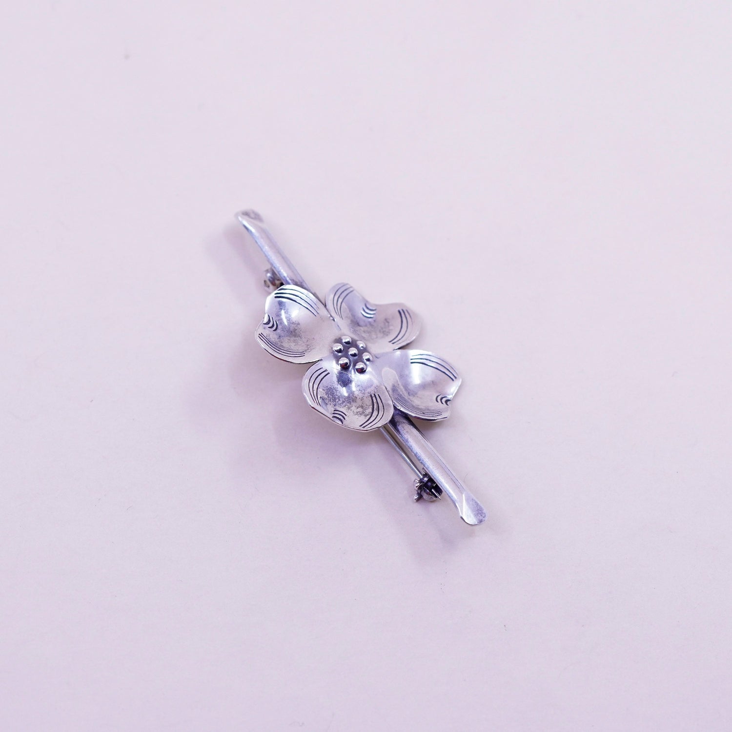 Vintage sterling silver dogwood flower shaped brooch, 925 pin