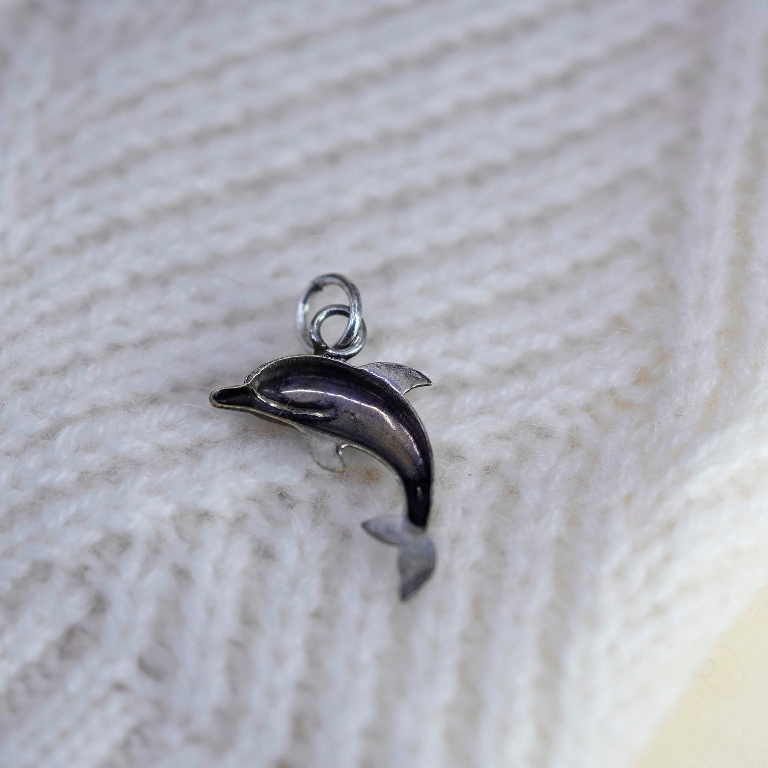 Vintage sterling silver dolphin pendant, 925 charm, silver tested