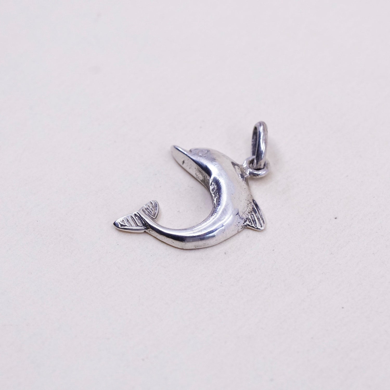 Vintage sterling silver dolphin pendant, 925 charm, stamped 925