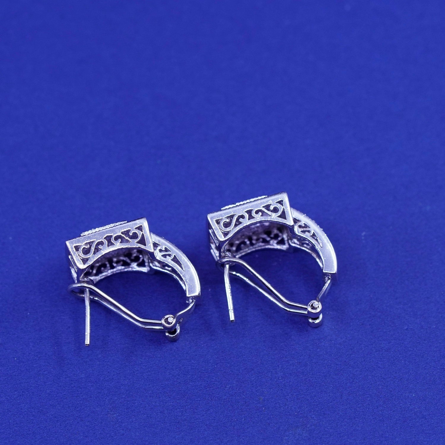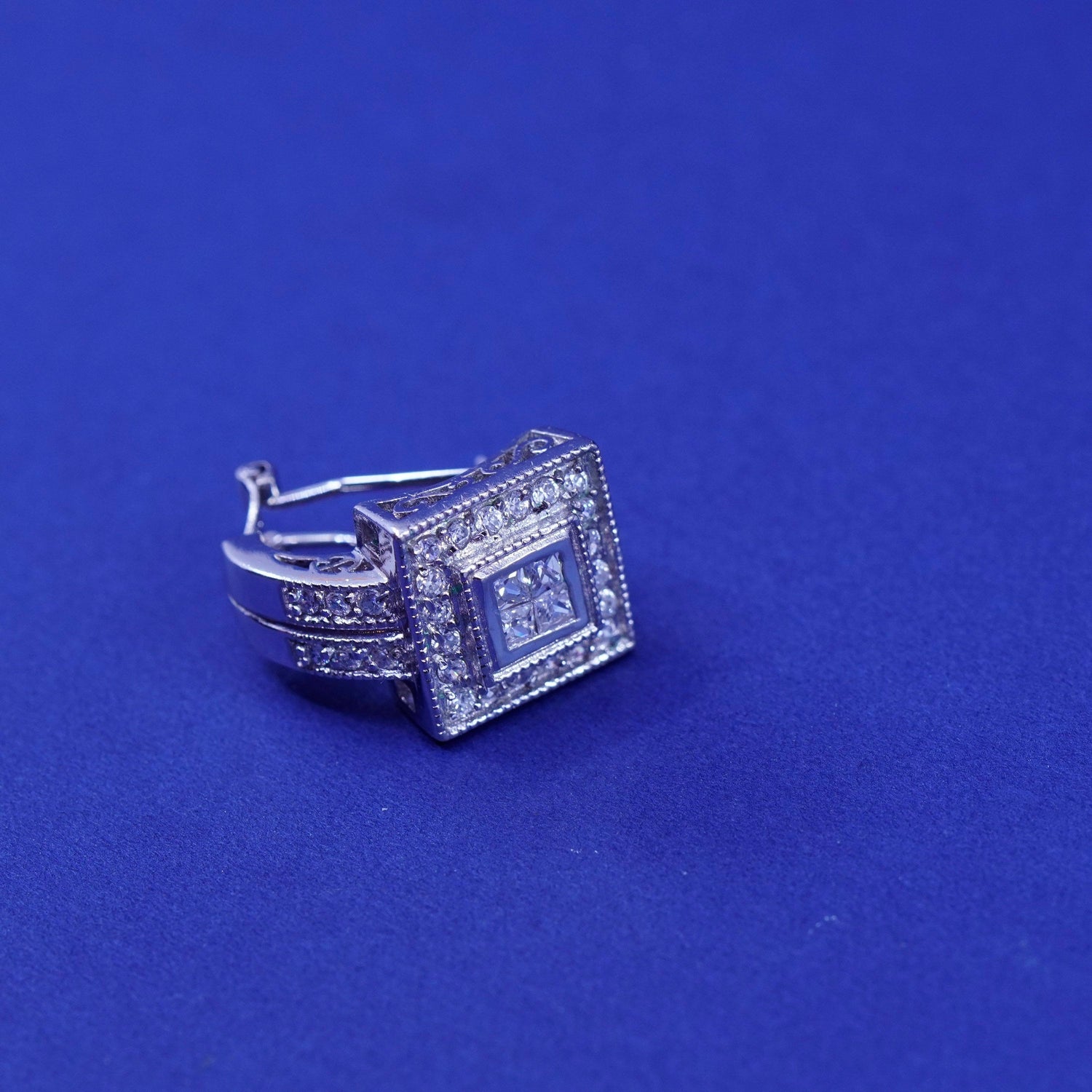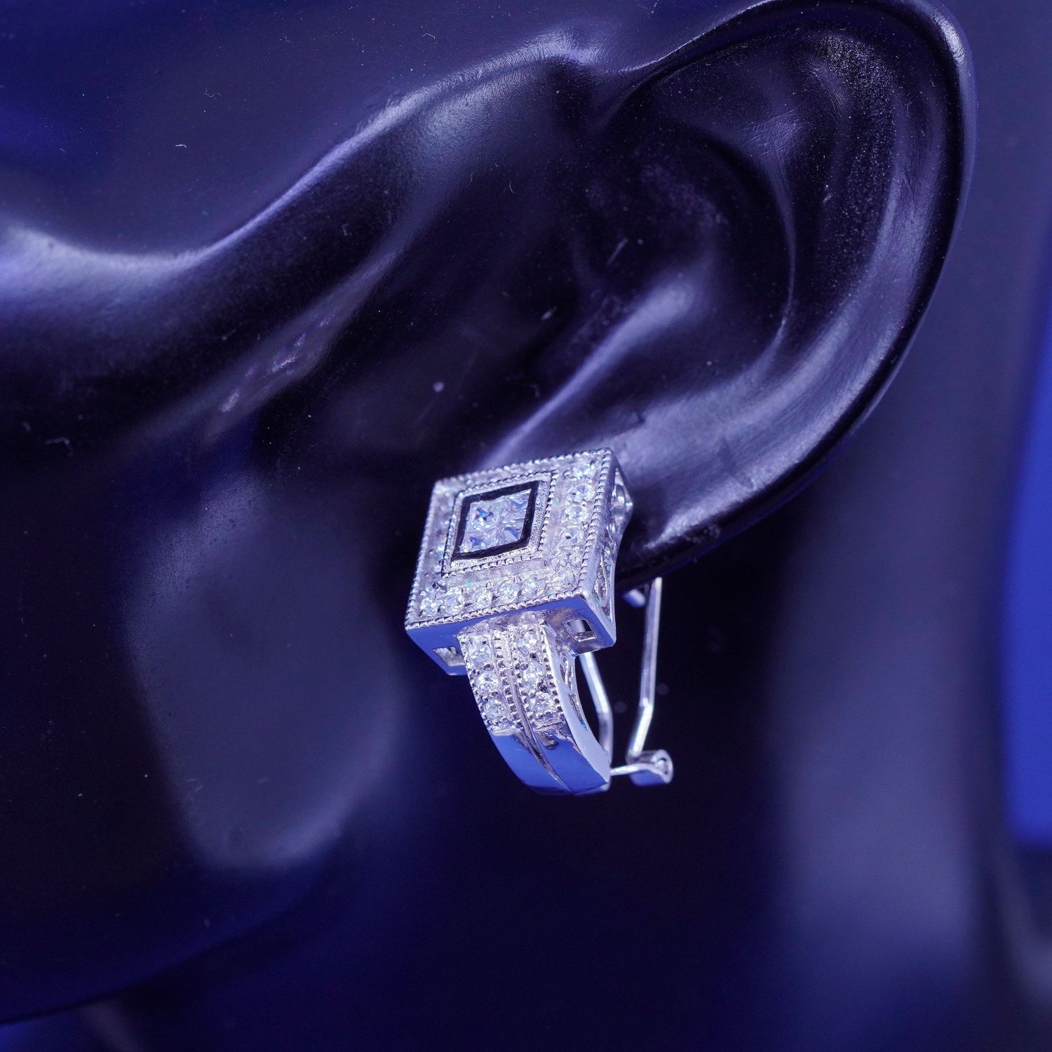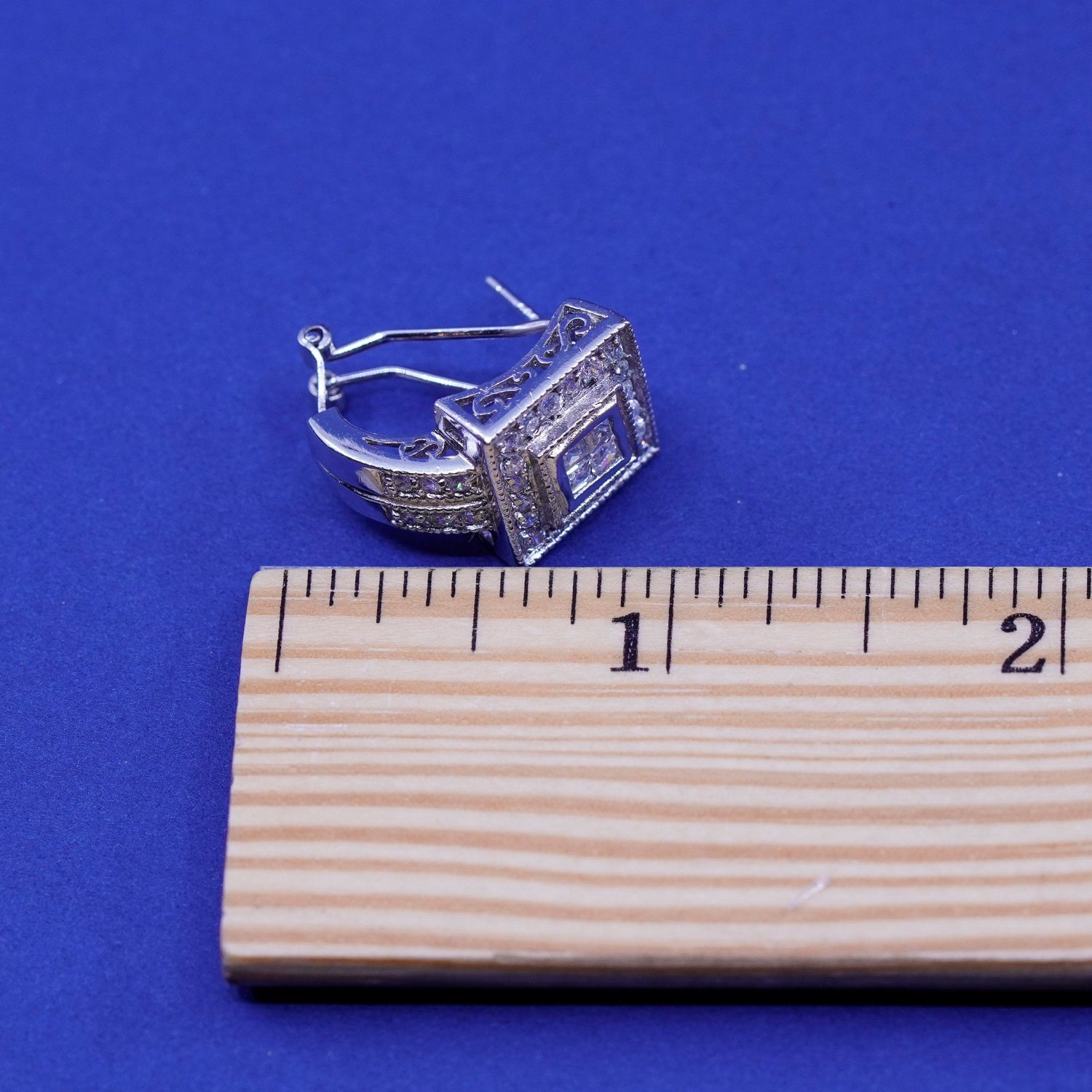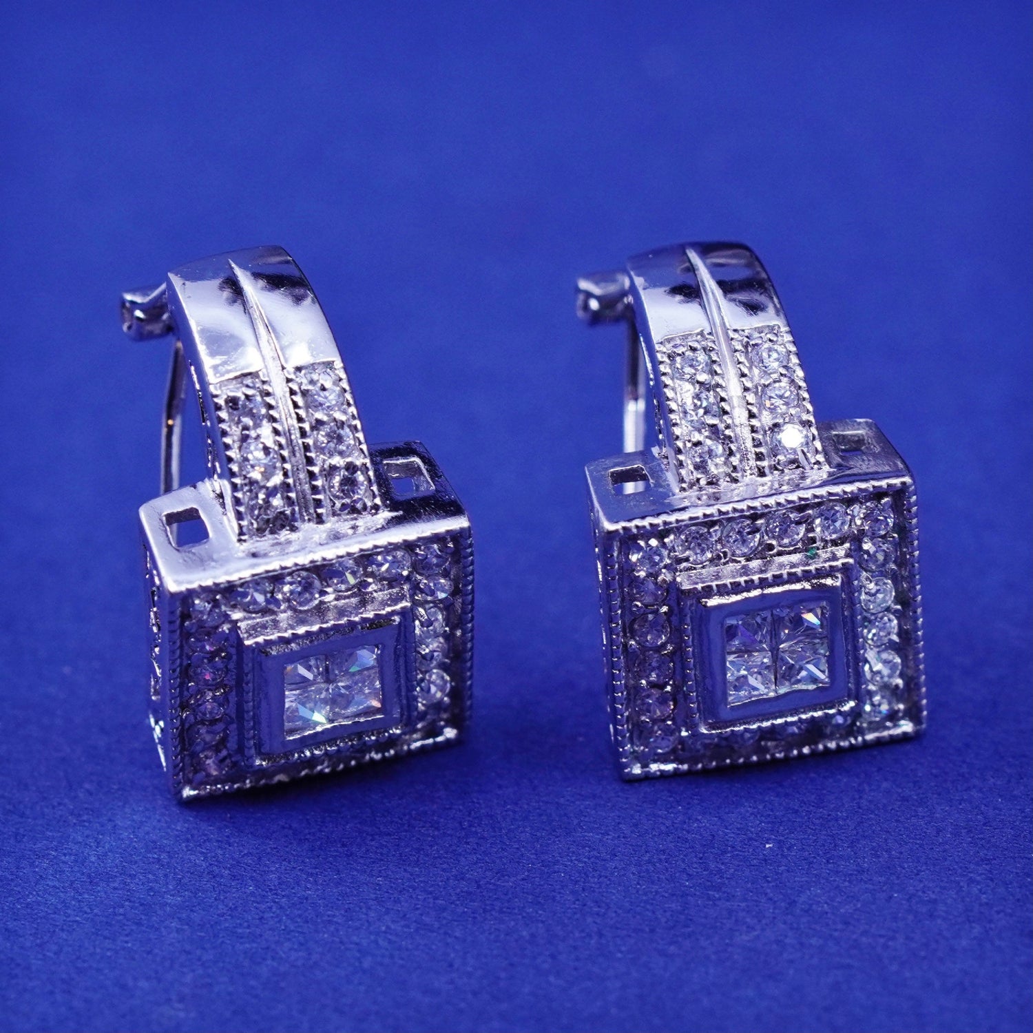 Vintage Sterling silver earrings, 925 circle with cluster cz, stamped 925