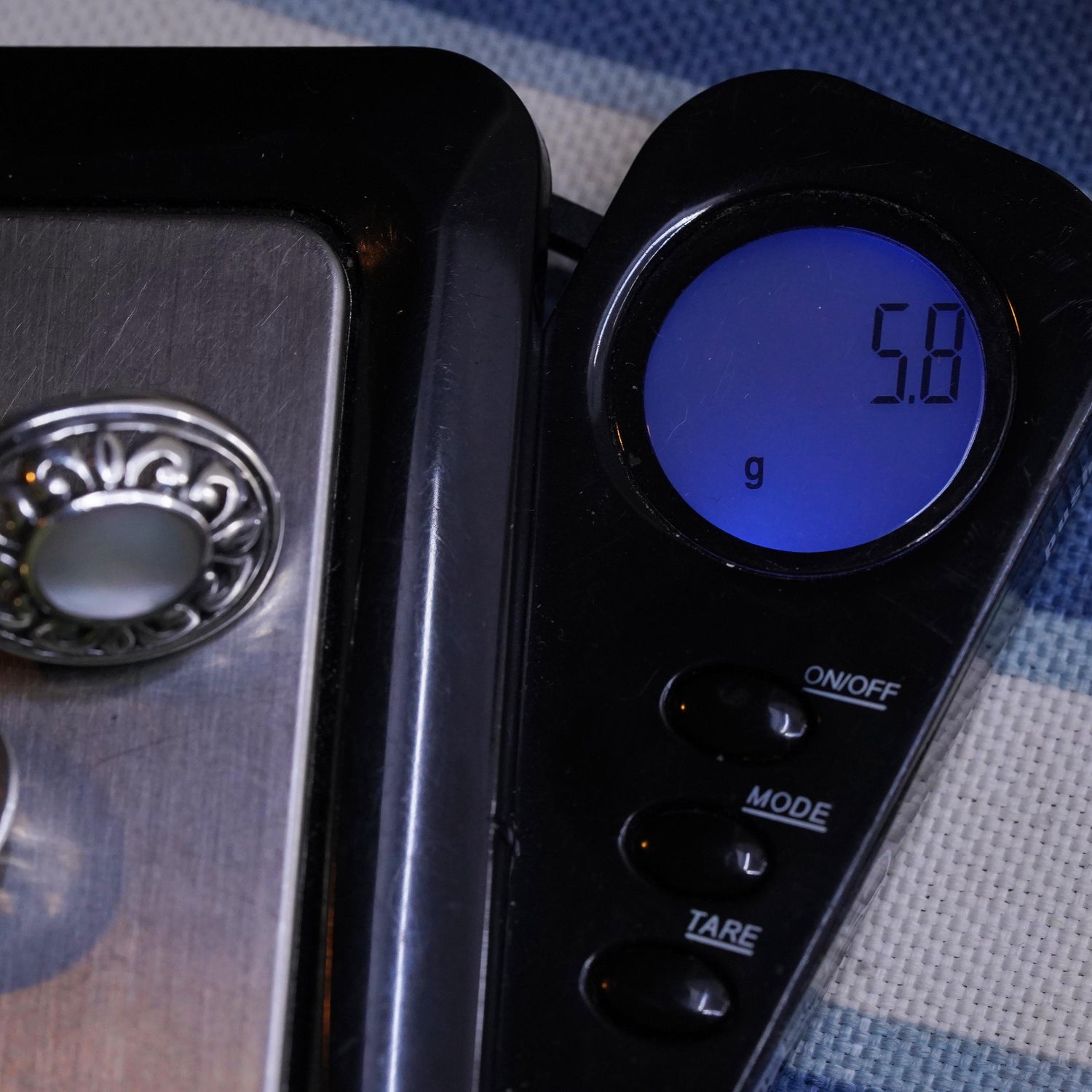 Vintage sterling silver earrings, solid 925 filigree studs with oval mother of pearl, stamped 925