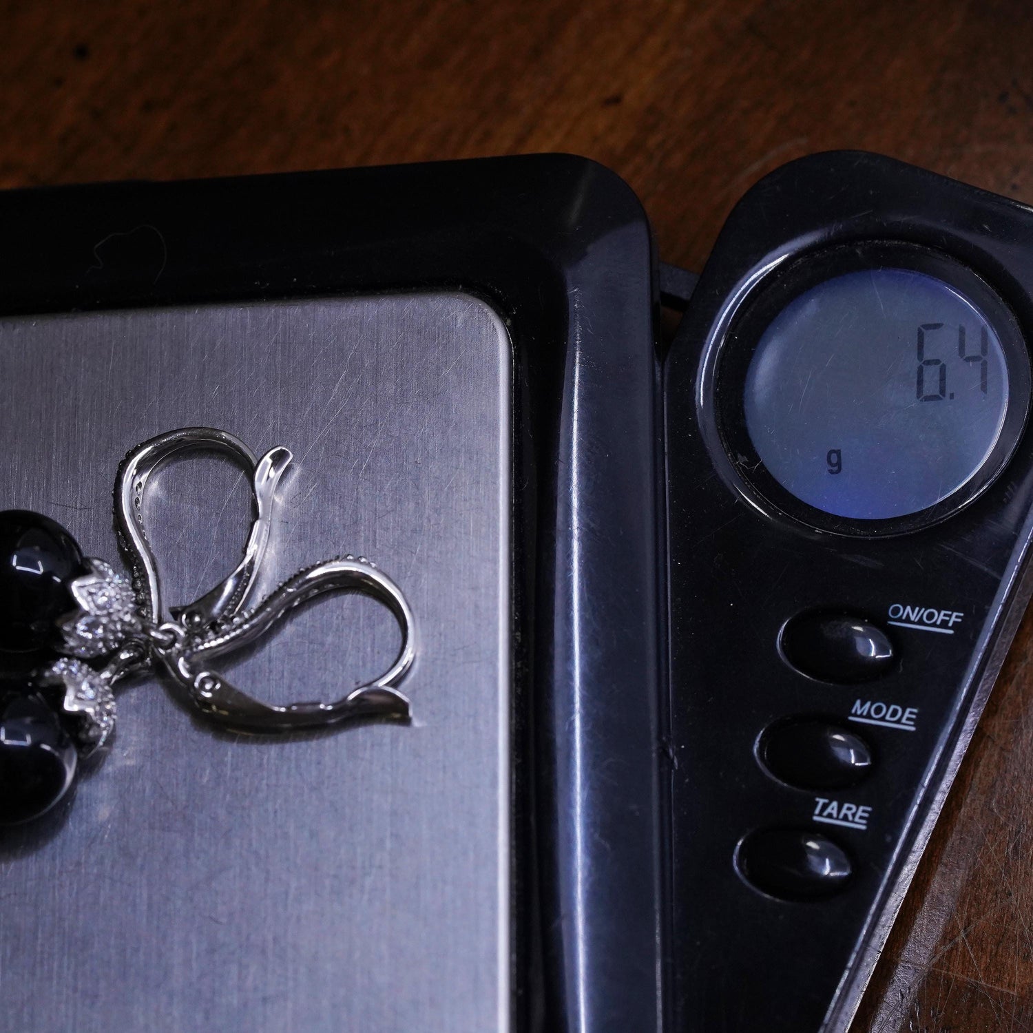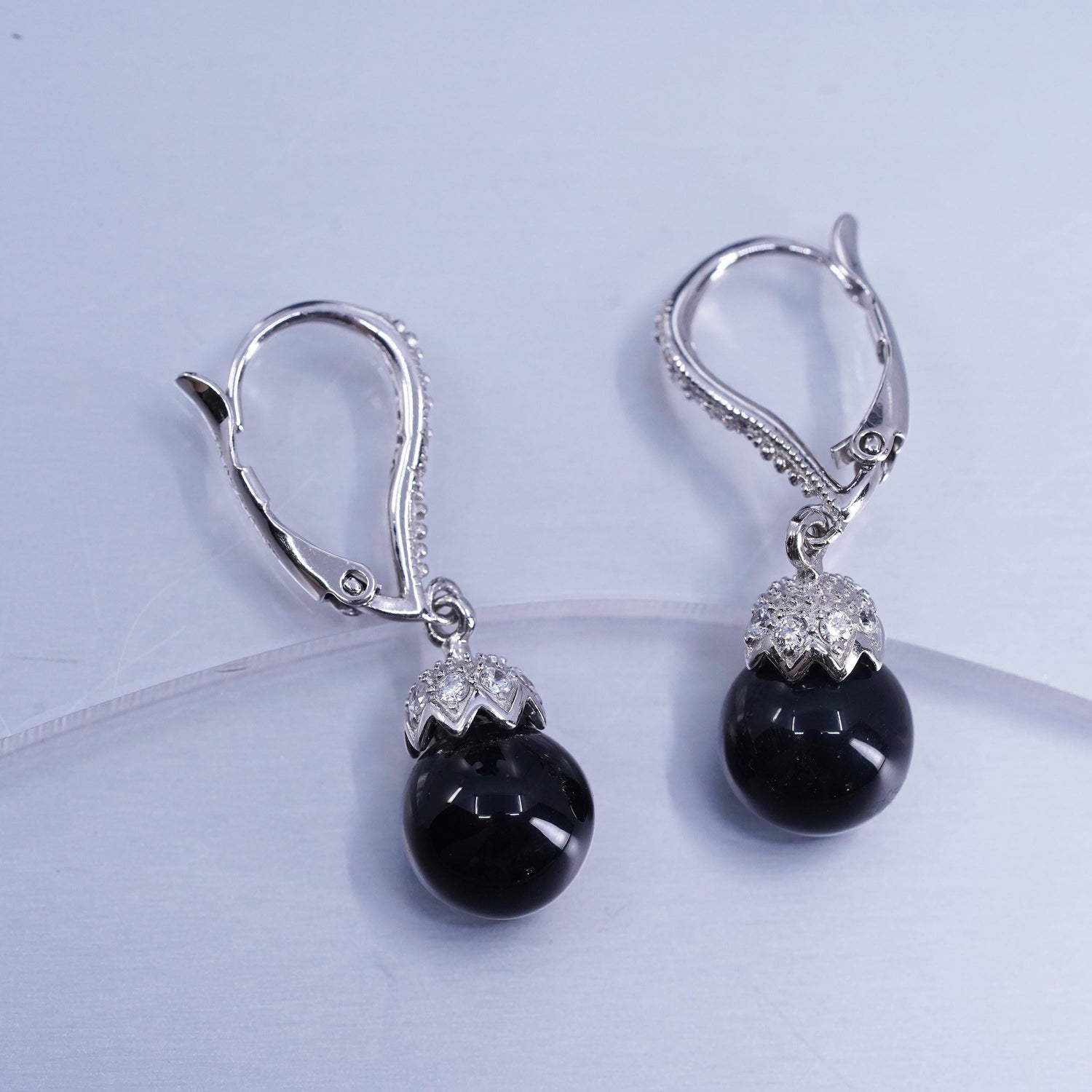 vintage Sterling silver earrings, 925 lever back with onyx beads and cz, stamped 925