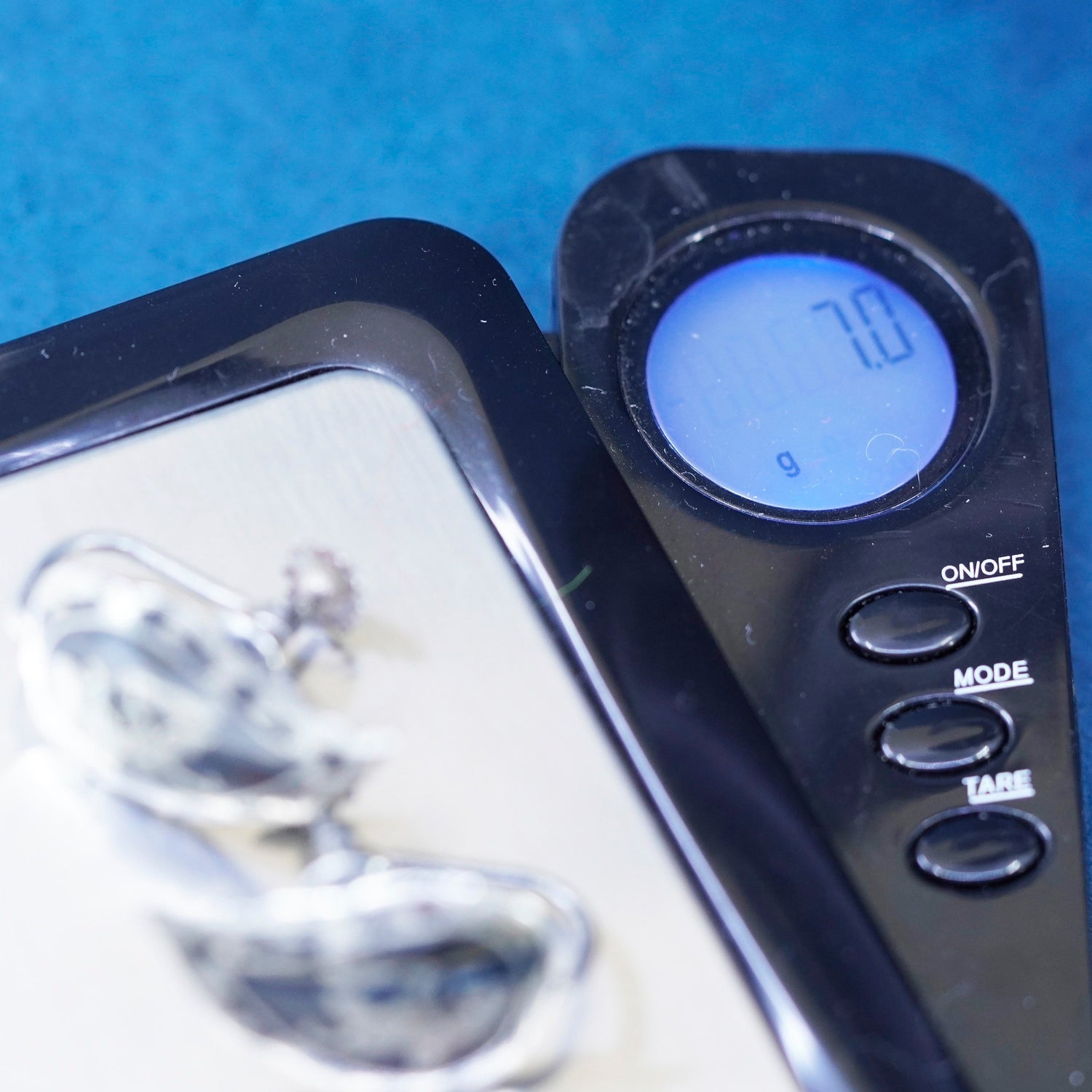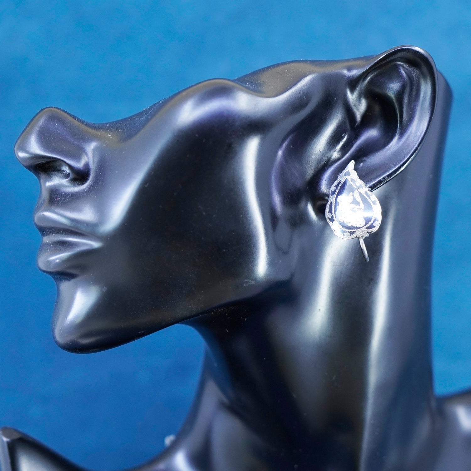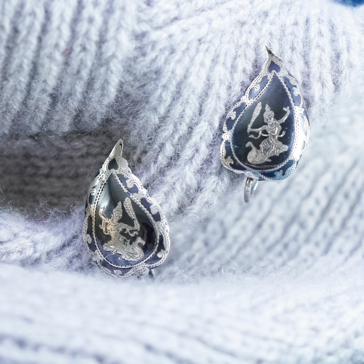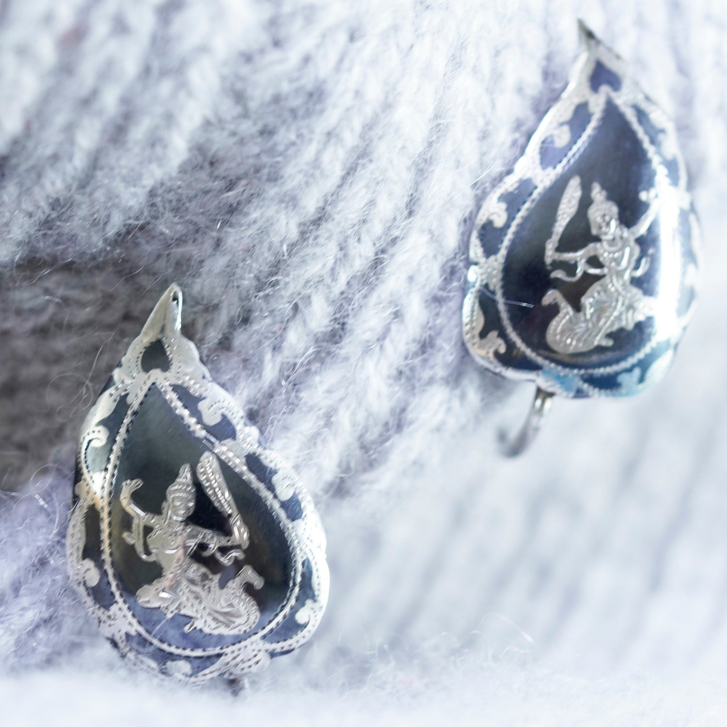 Vintage Sterling silver handmade earrings, 925 screw back with enamel Indian goddess teardrop, stamped sterling Siam