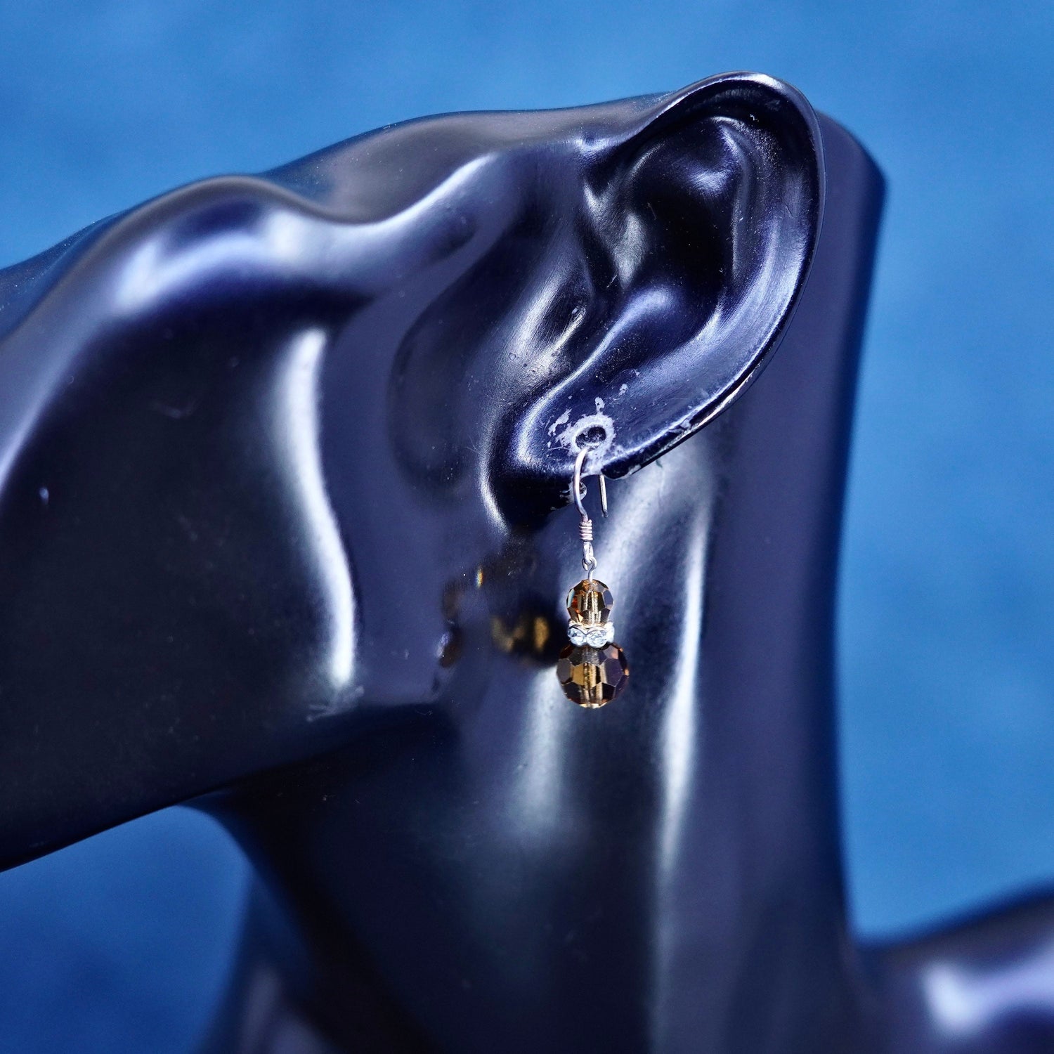 Vintage sterling silver earrings, 925 silver with smoky crystal dangles