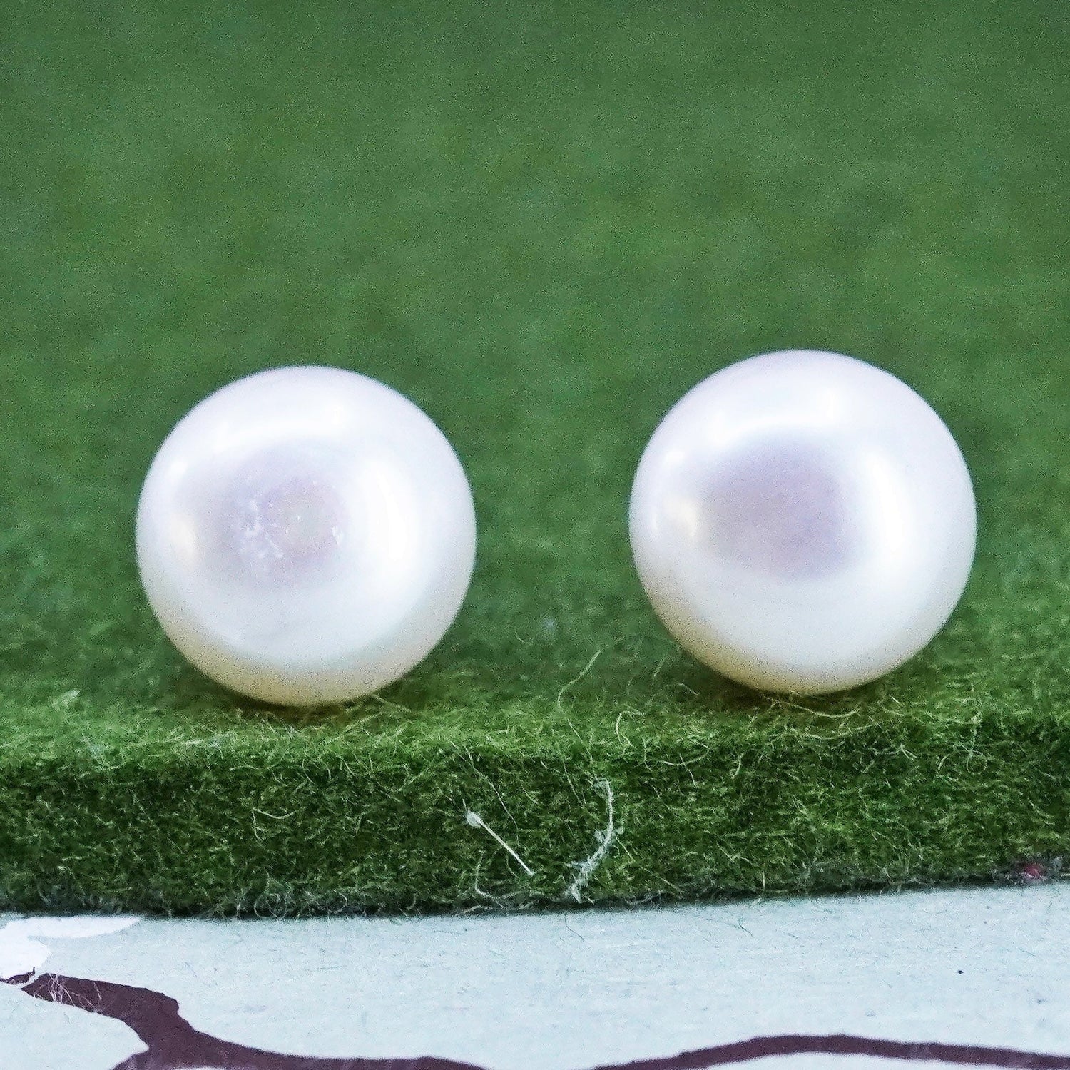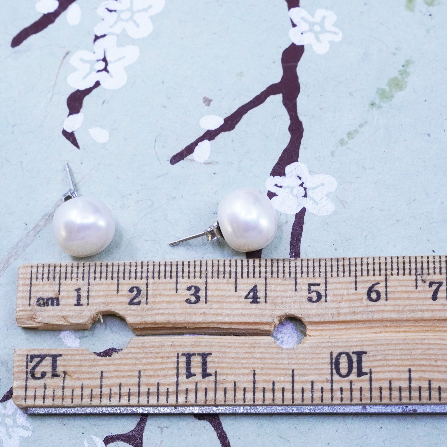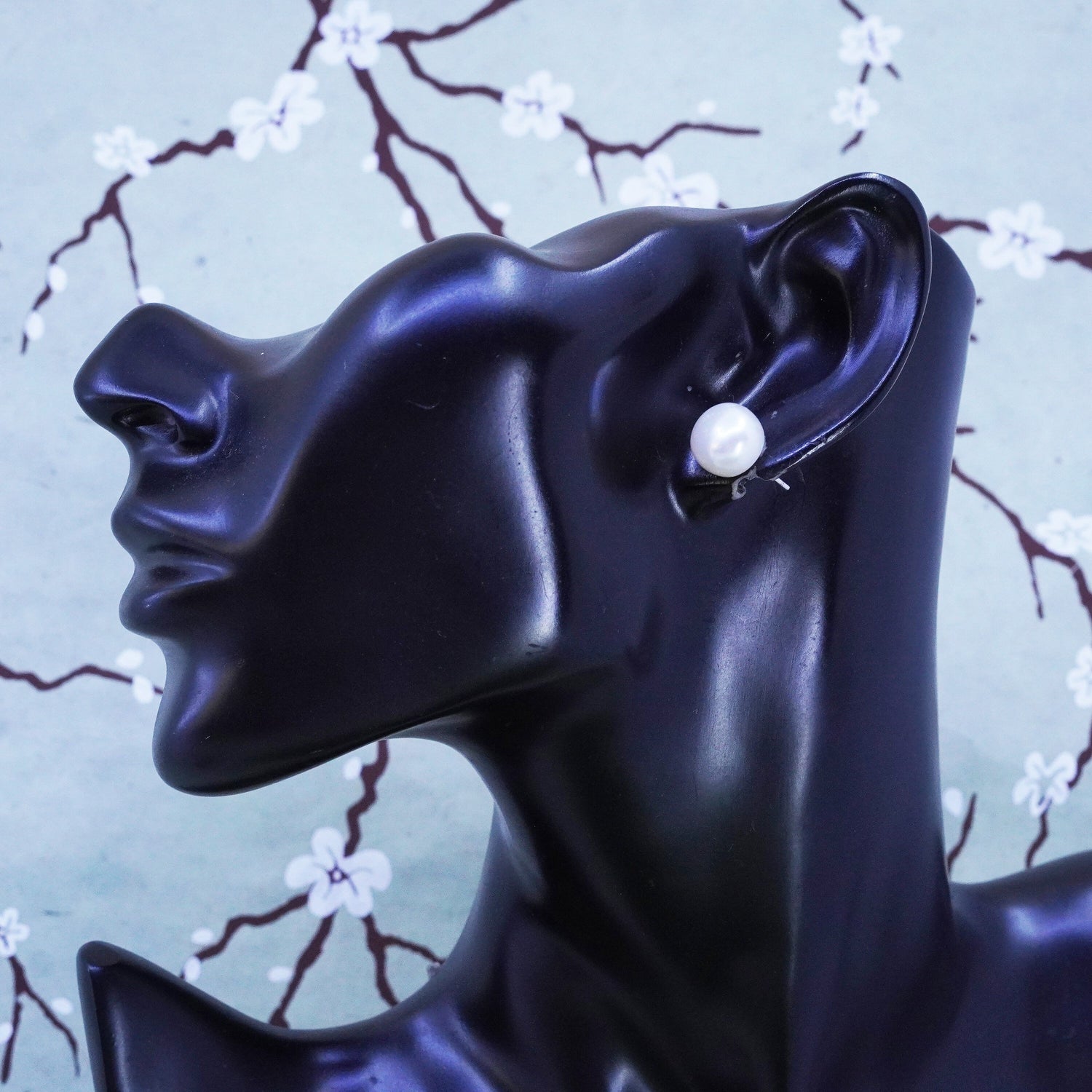 Vintage sterling silver earrings, 925 studs with 9mm pearl, stamped 925