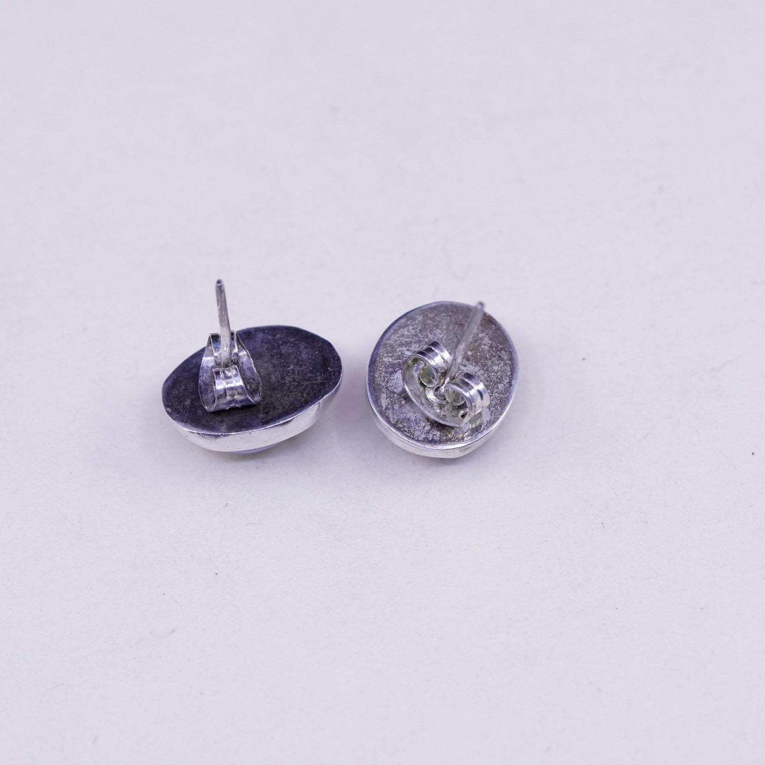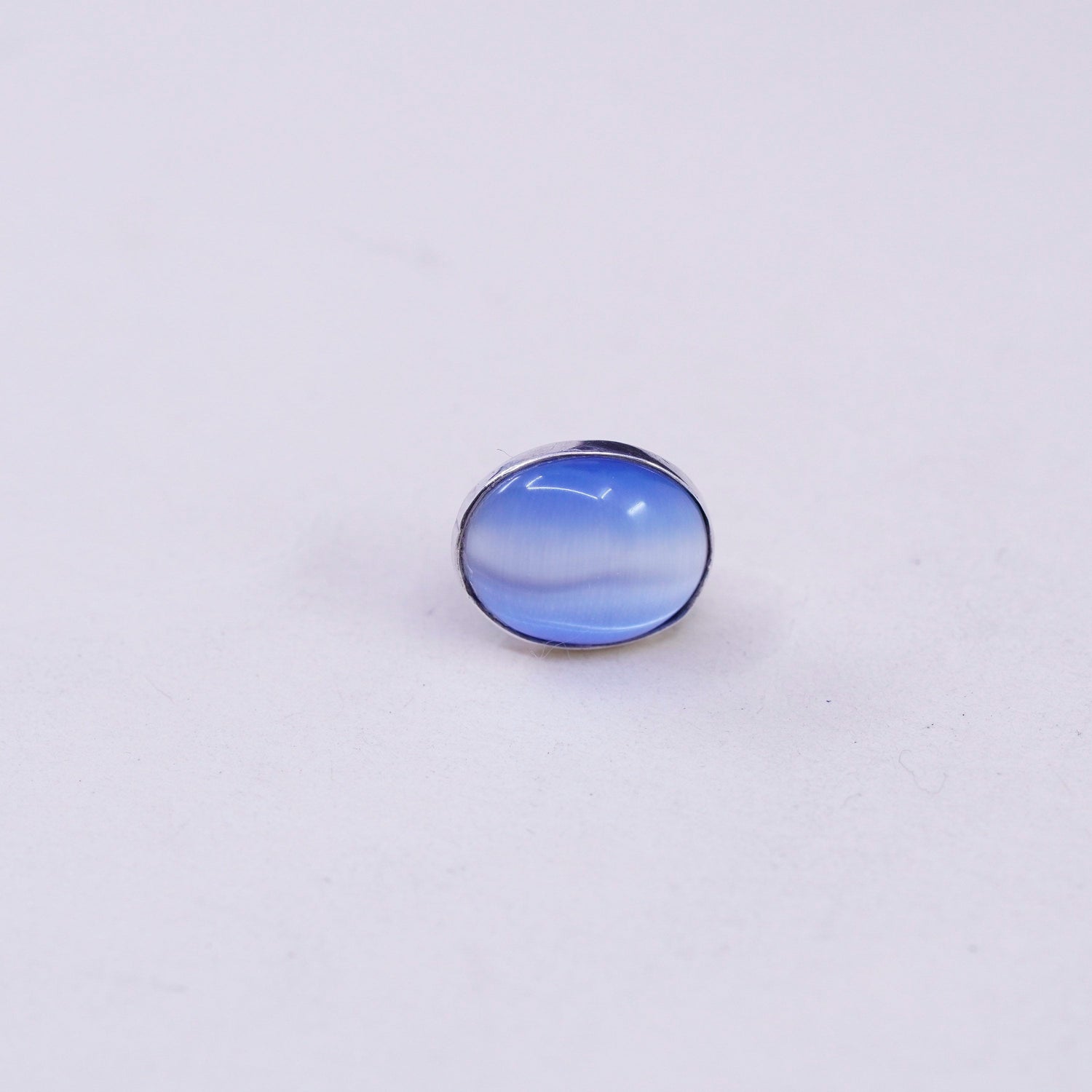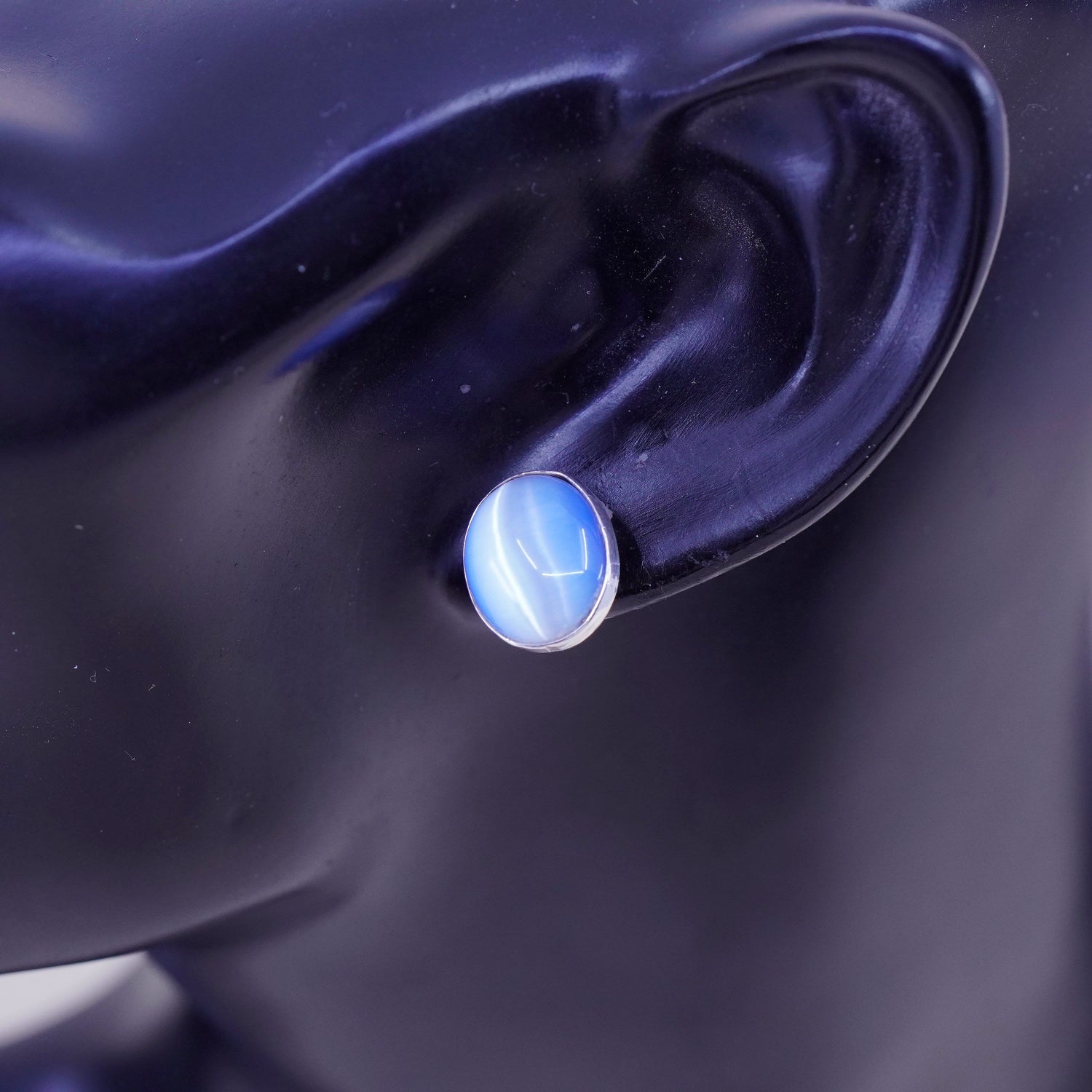 Vintage sterling silver earrings, 925 studs with blue cats eye, silver tested