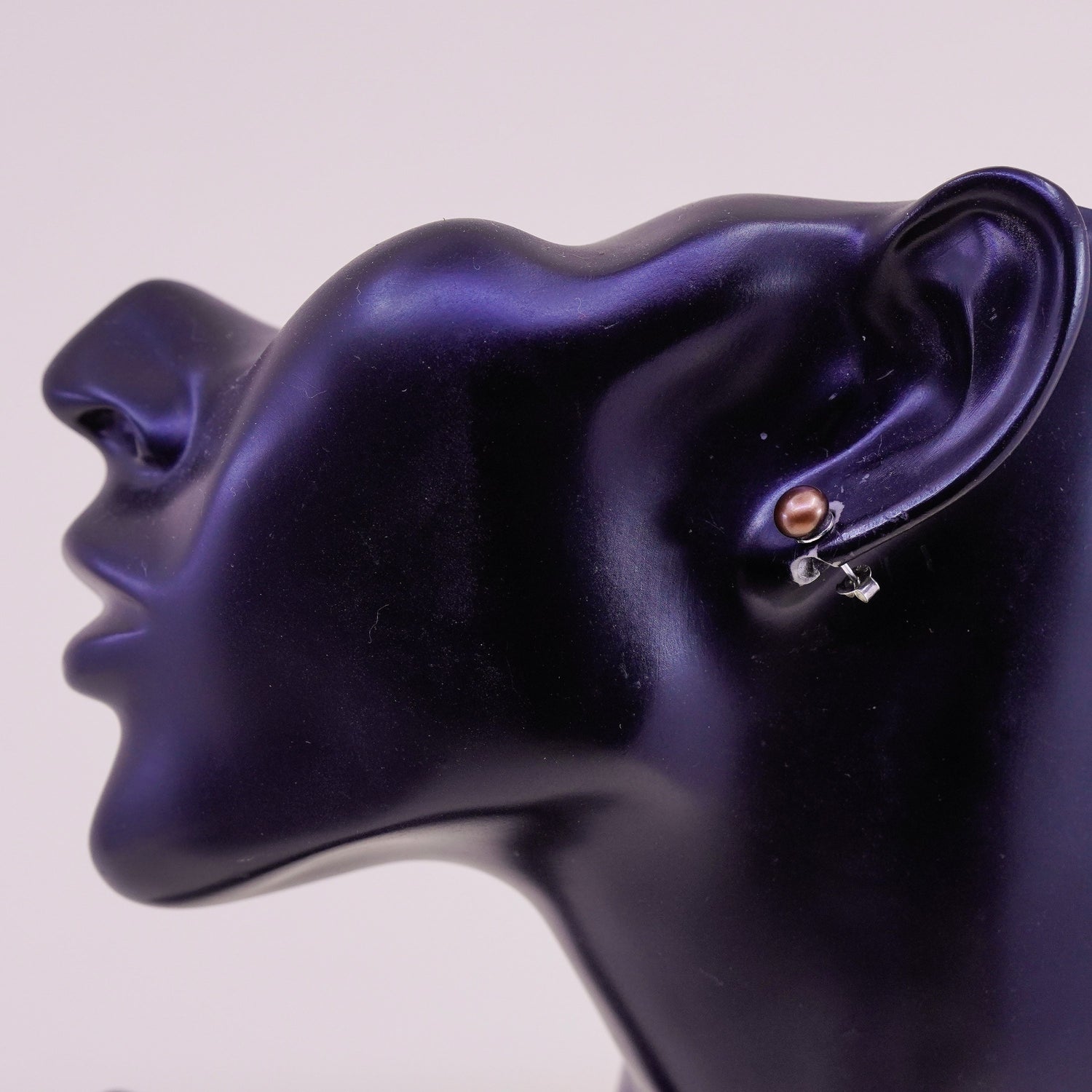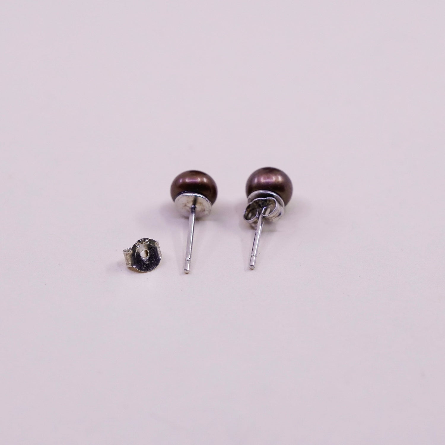 Vintage sterling silver earrings, 925 studs with brown pearl, stamped 925
