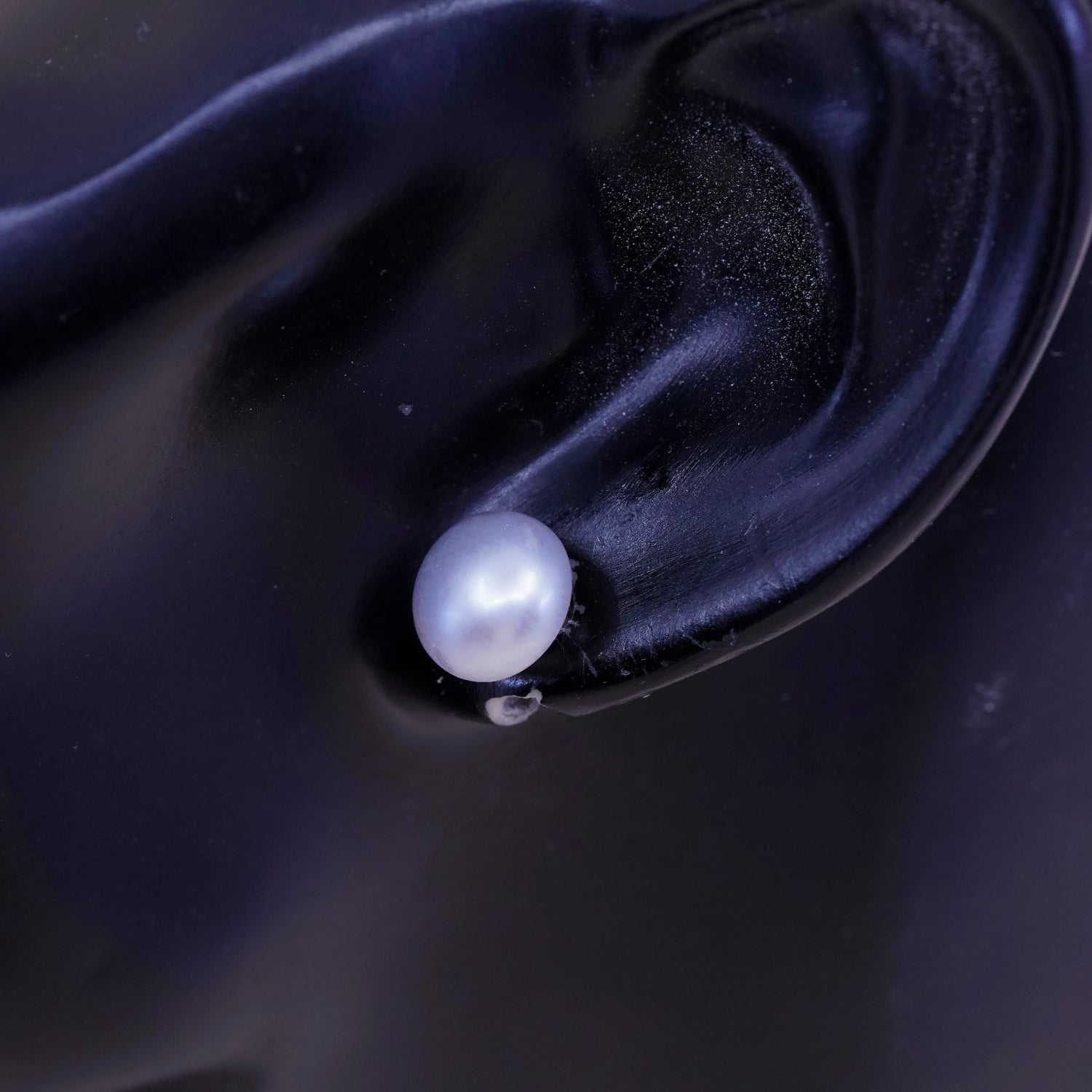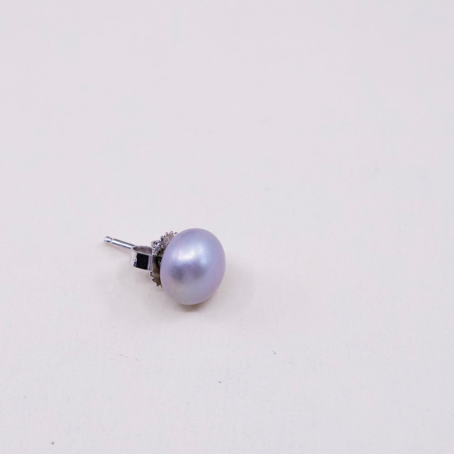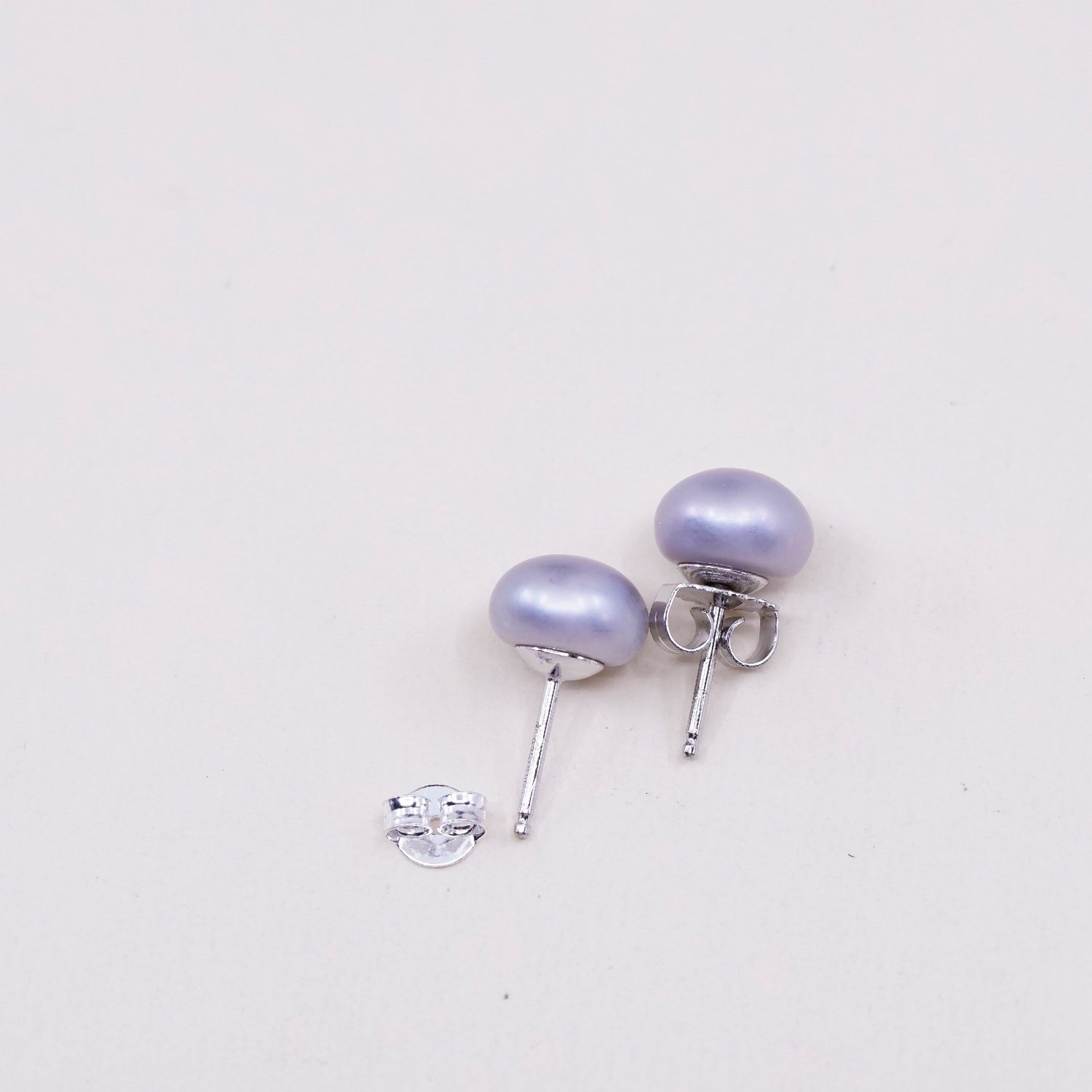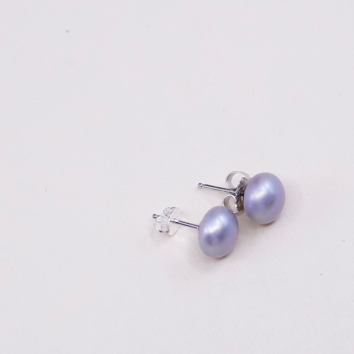 Vintage sterling silver earrings, 925 studs with gray pearl, stamped 925