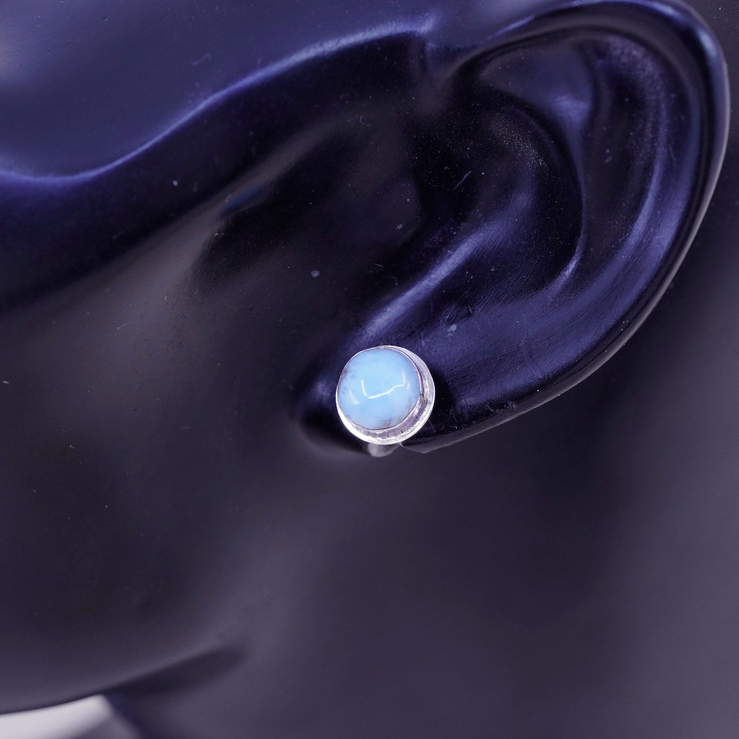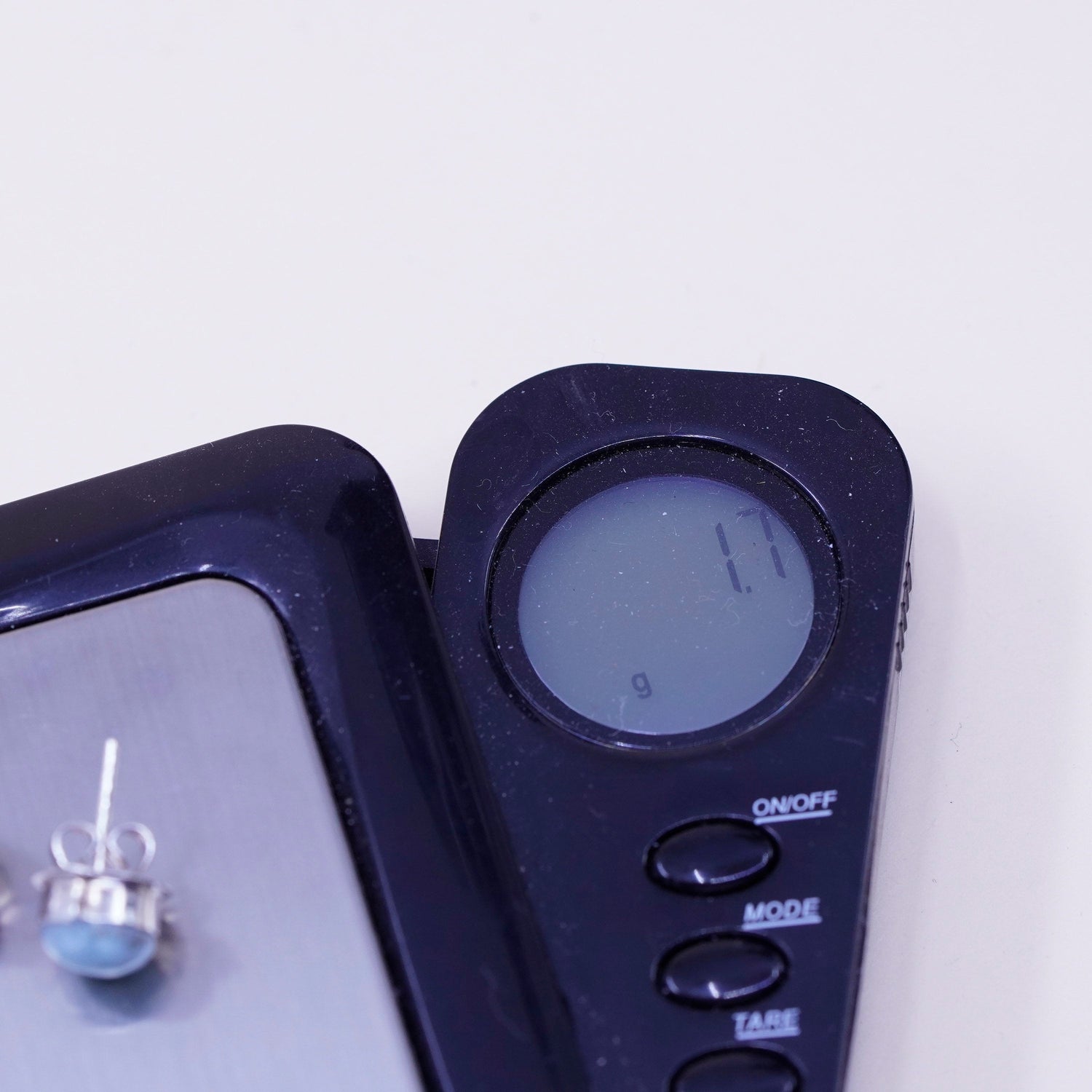 Vintage sterling silver earrings, 925 studs with larimar , silver tested