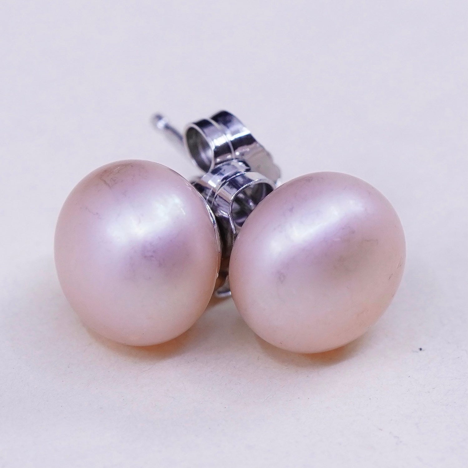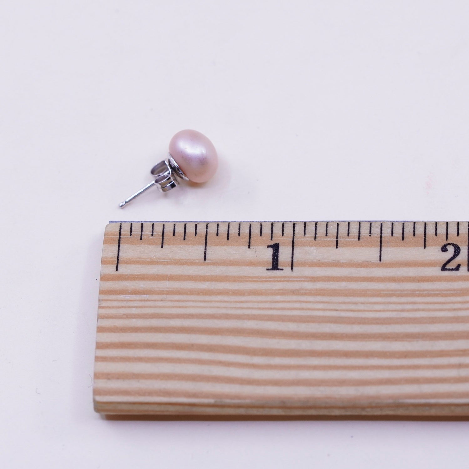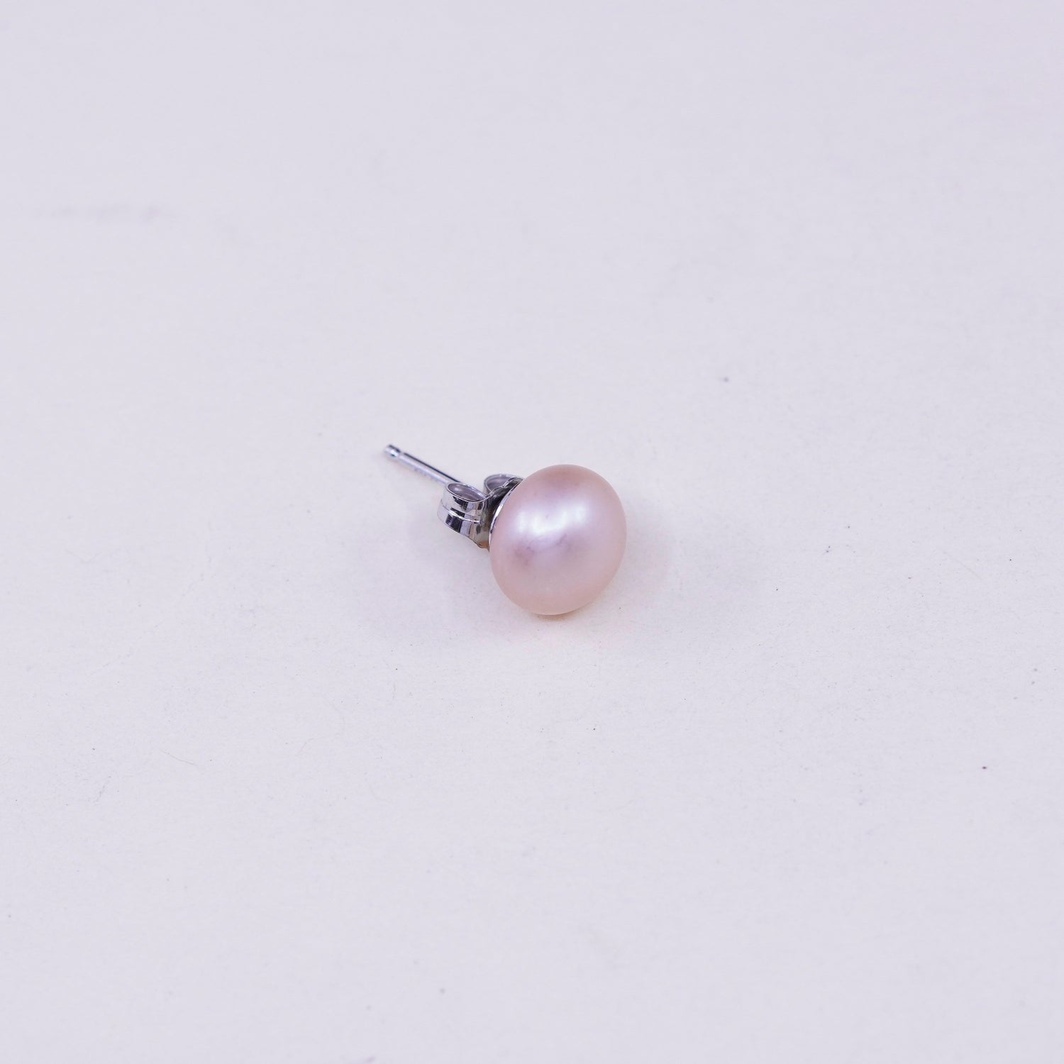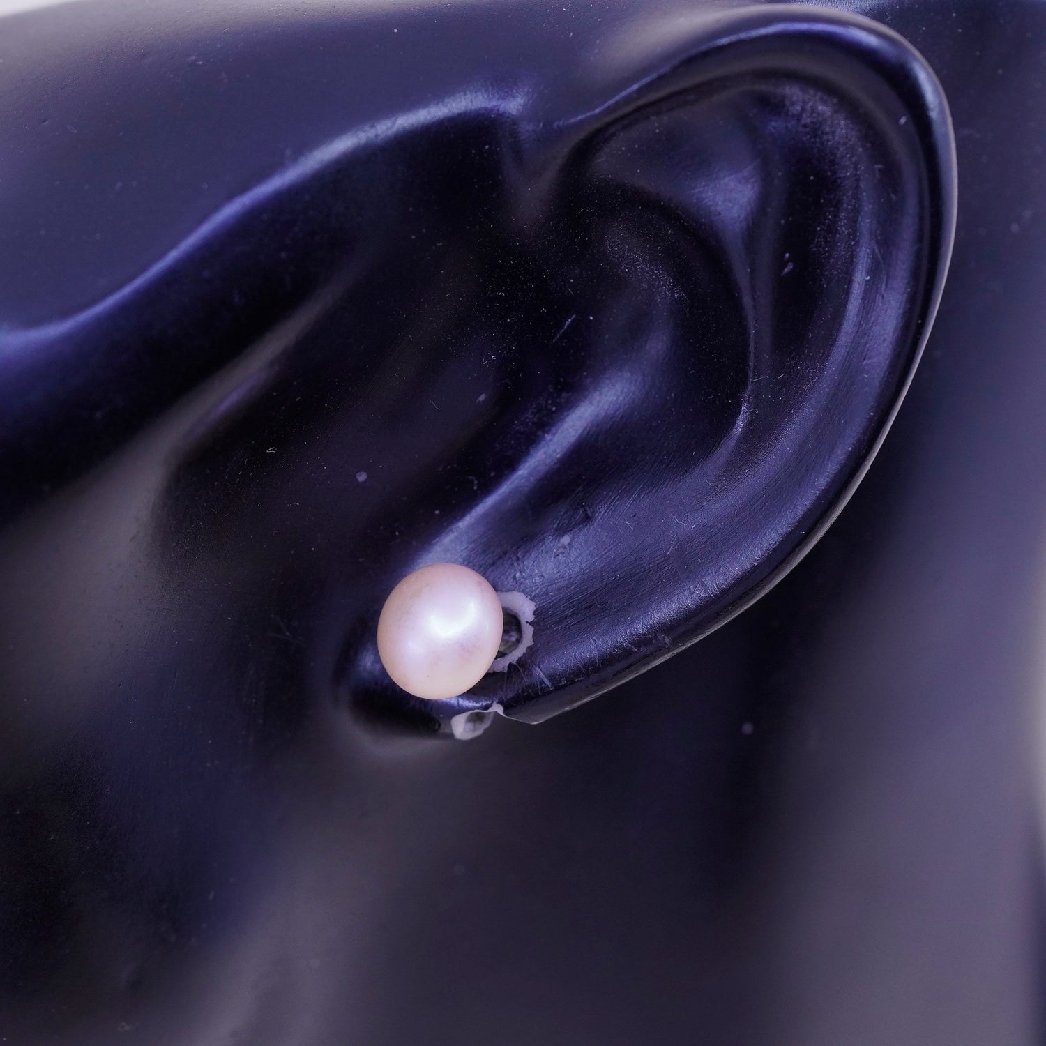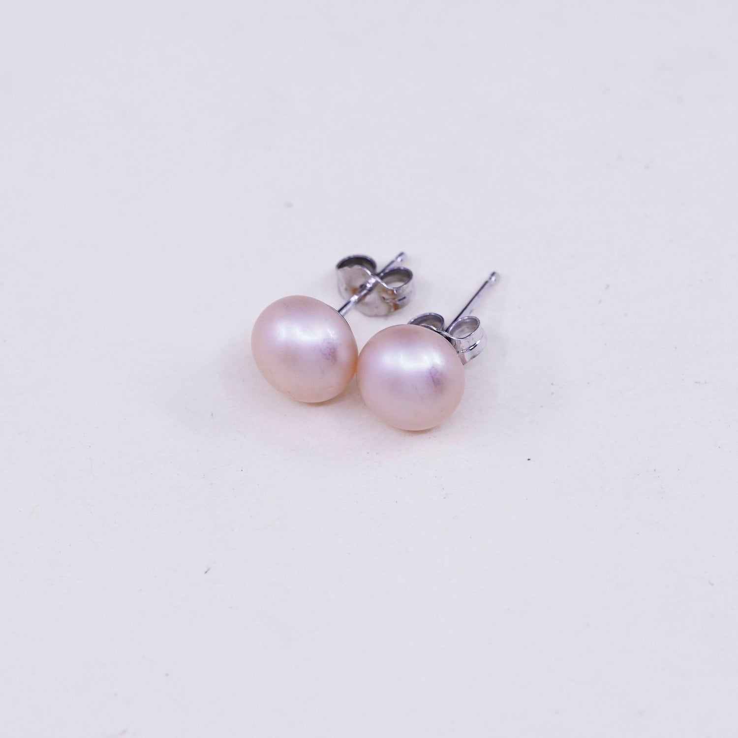 Vintage sterling silver earrings, 925 studs with orange pearl, stamped 925