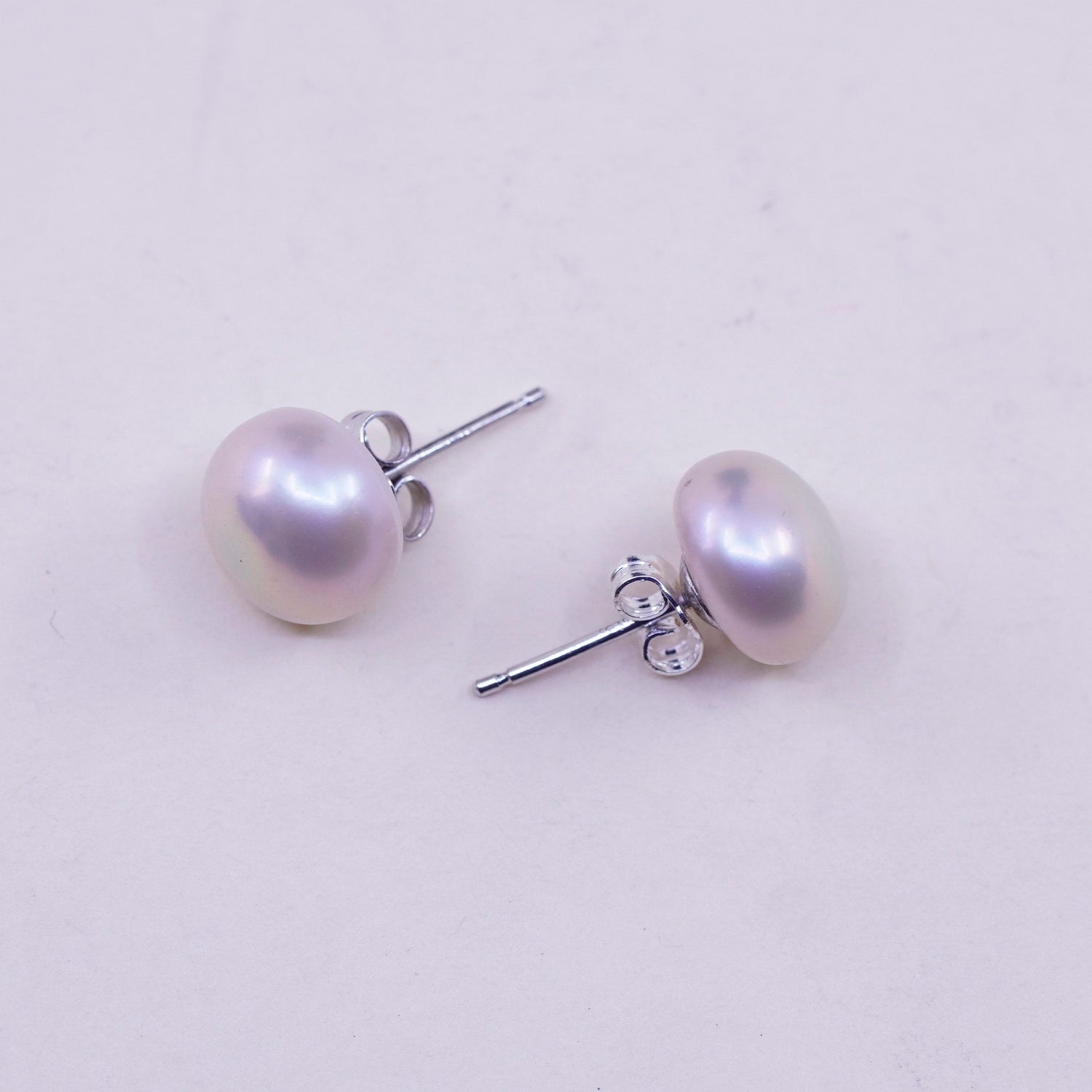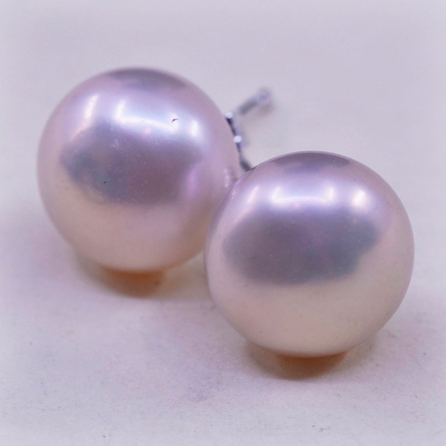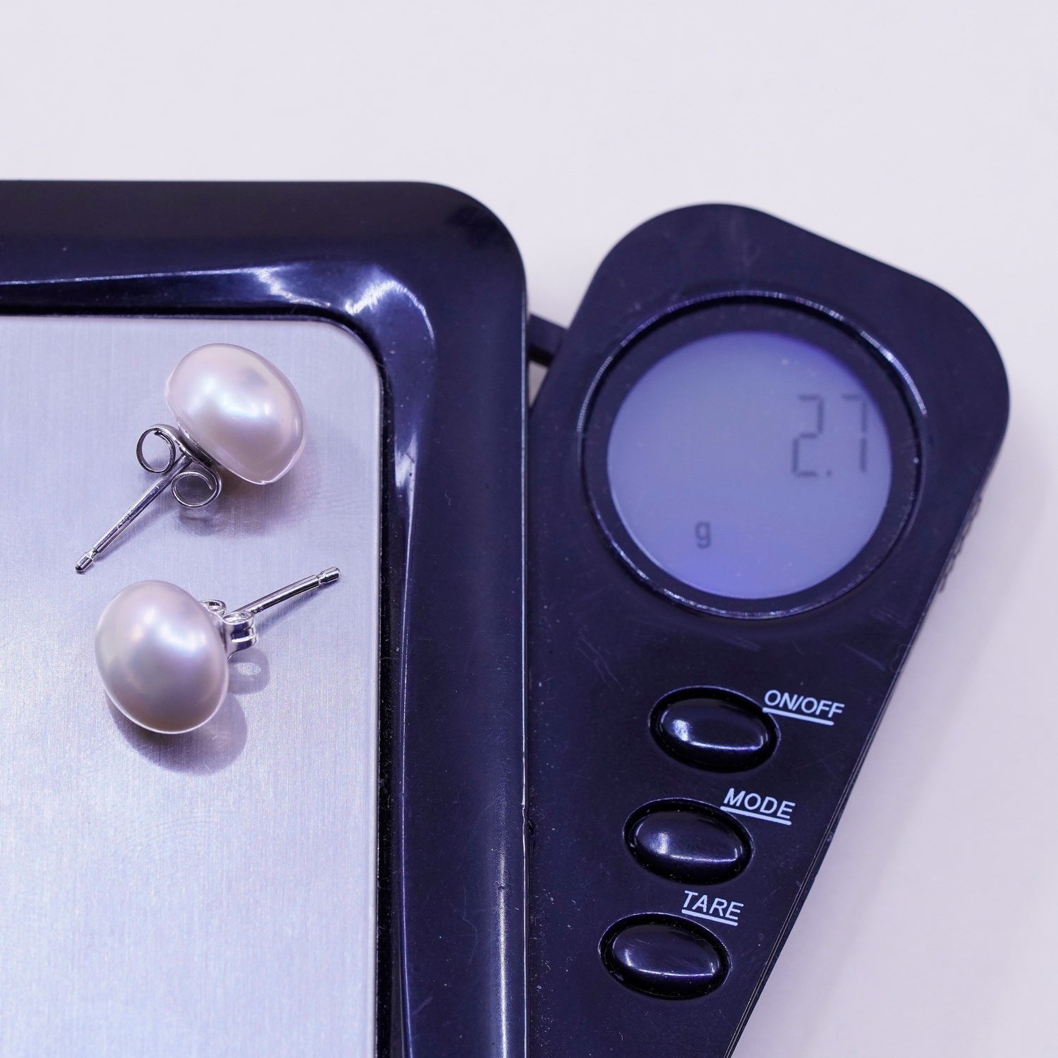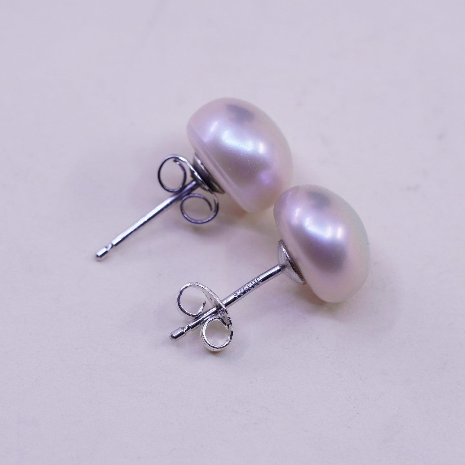 Vintage sterling silver earrings, 925 studs with pearl, stamped 925