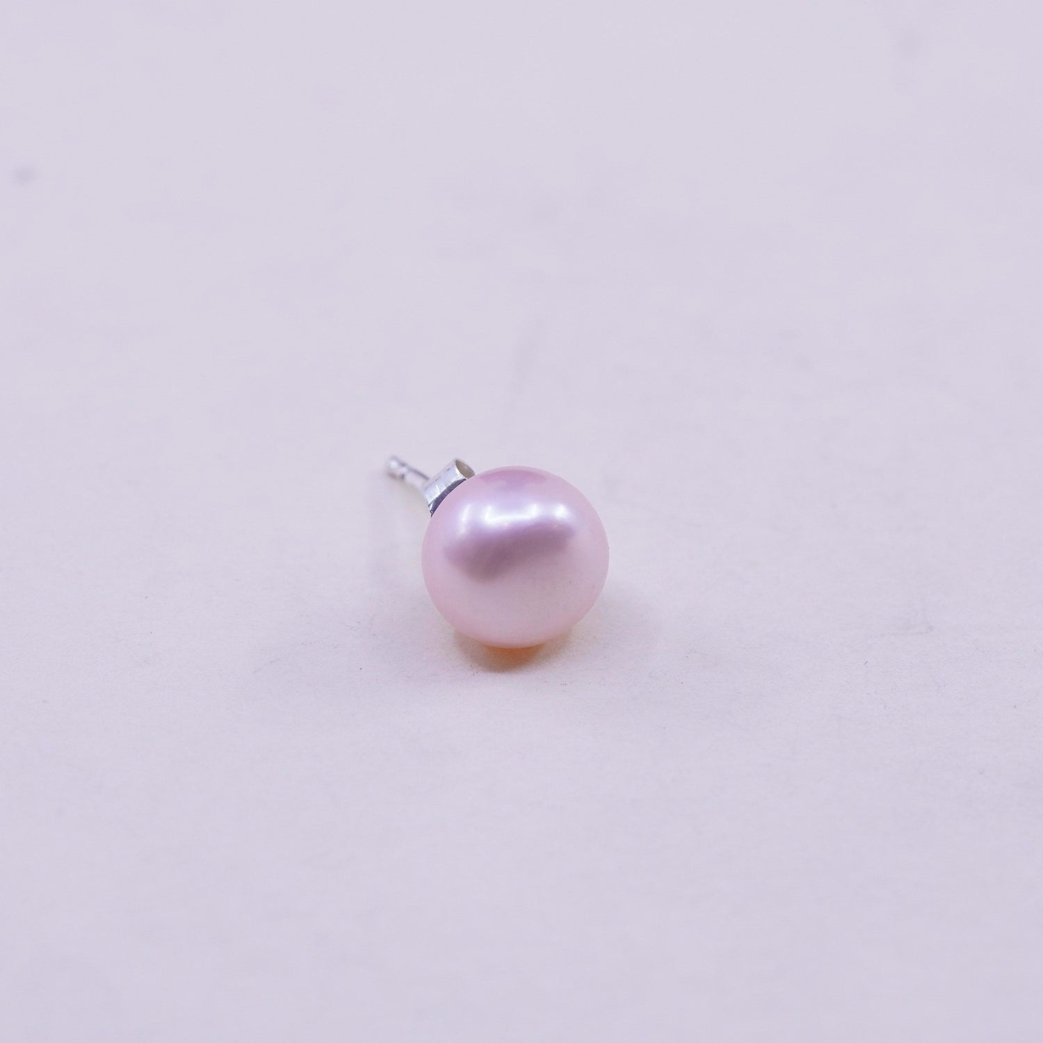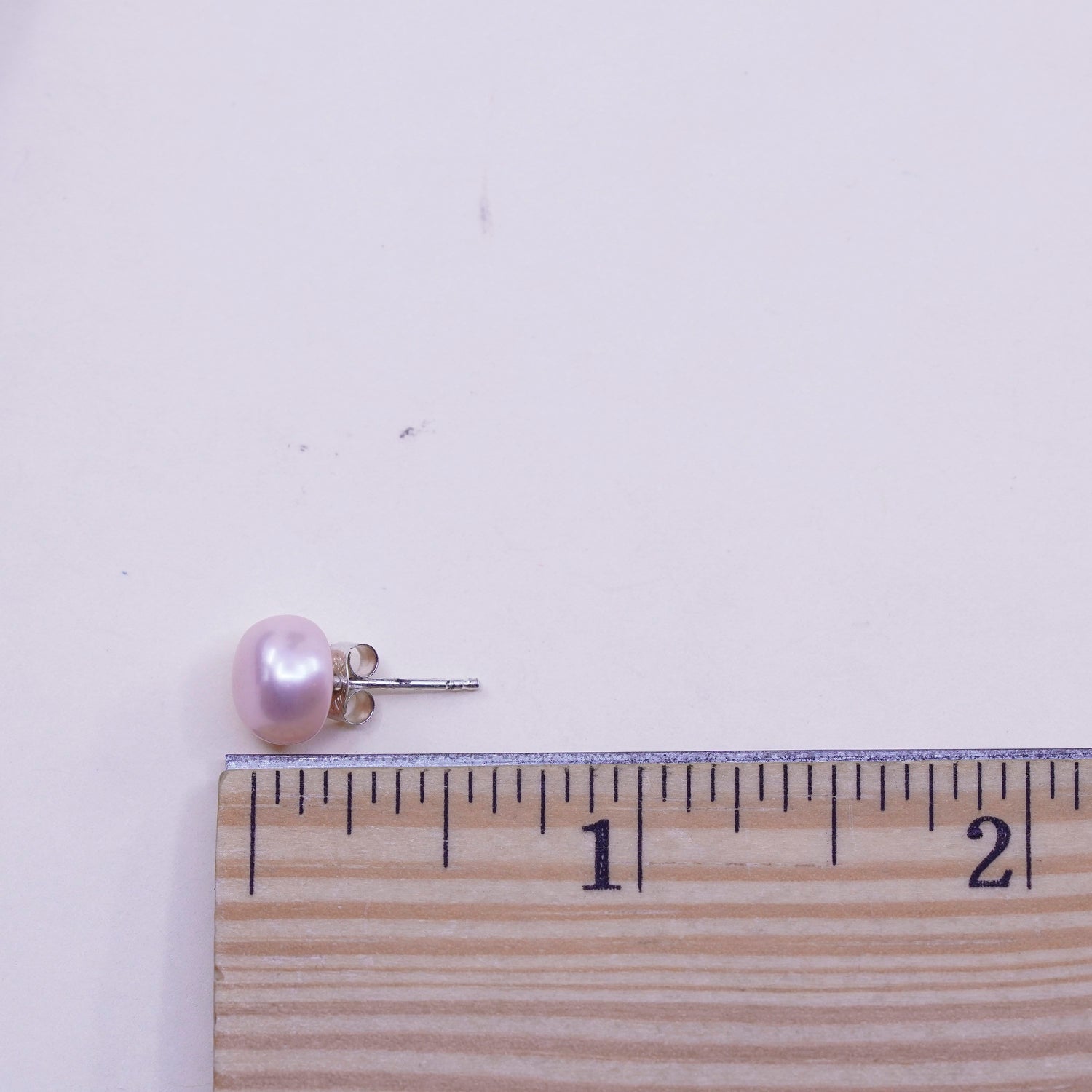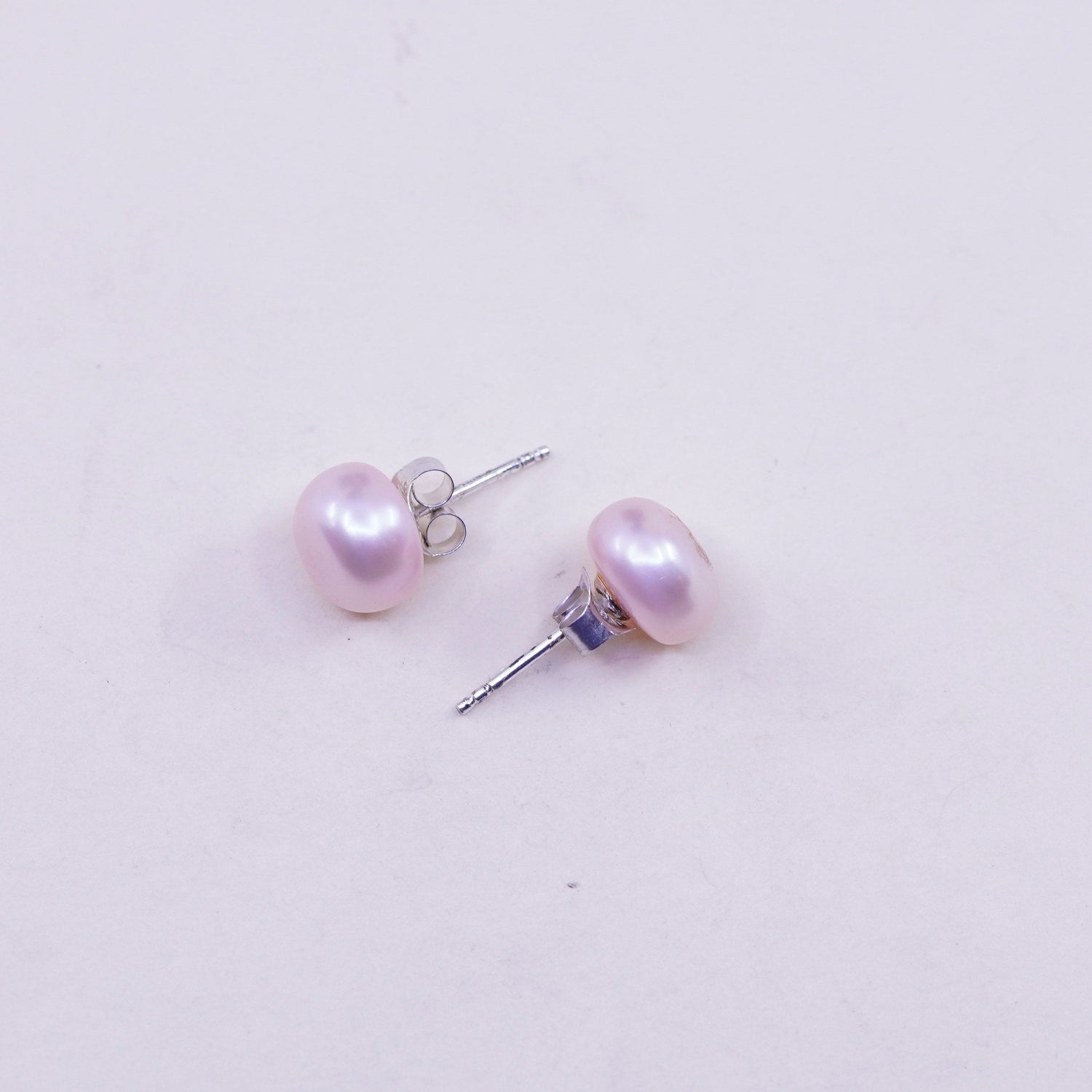 Vintage sterling silver earrings, 925 studs with pink pearl, stamped 925