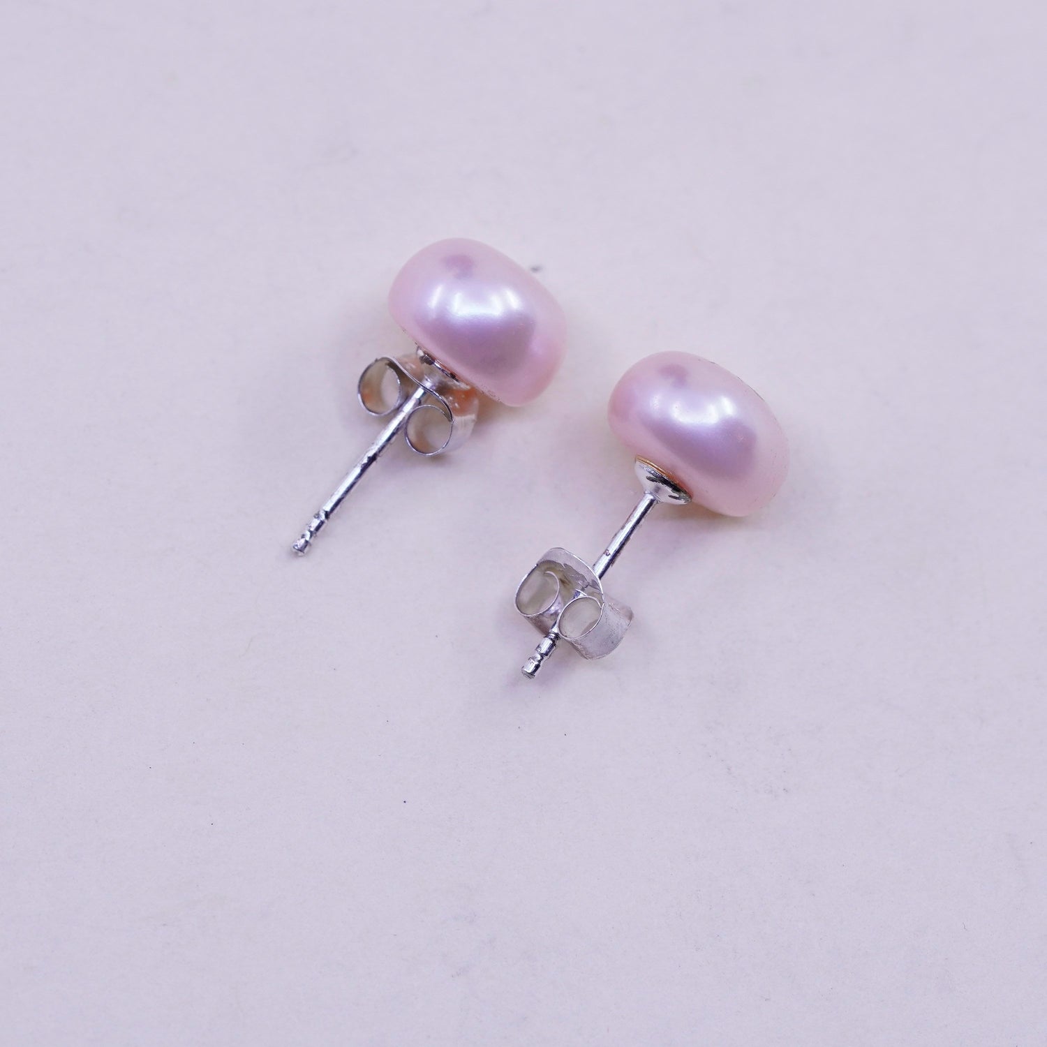 Vintage sterling silver earrings, 925 studs with pink pearl