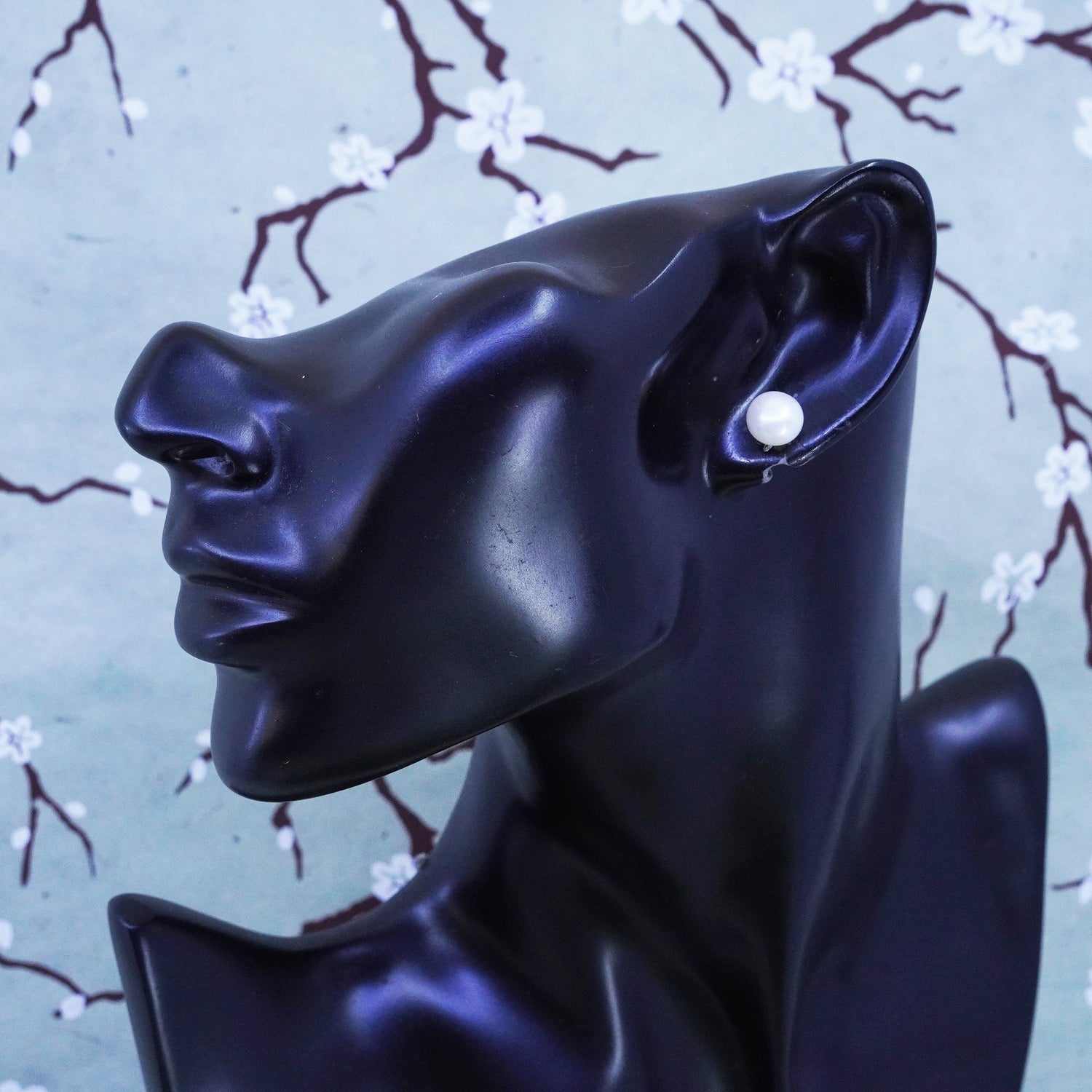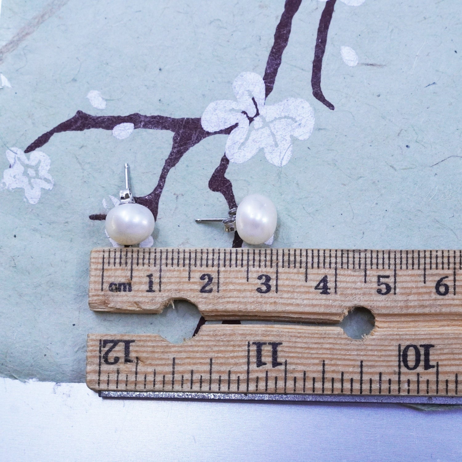 Vintage sterling silver earrings, 925 studs with white pearl
