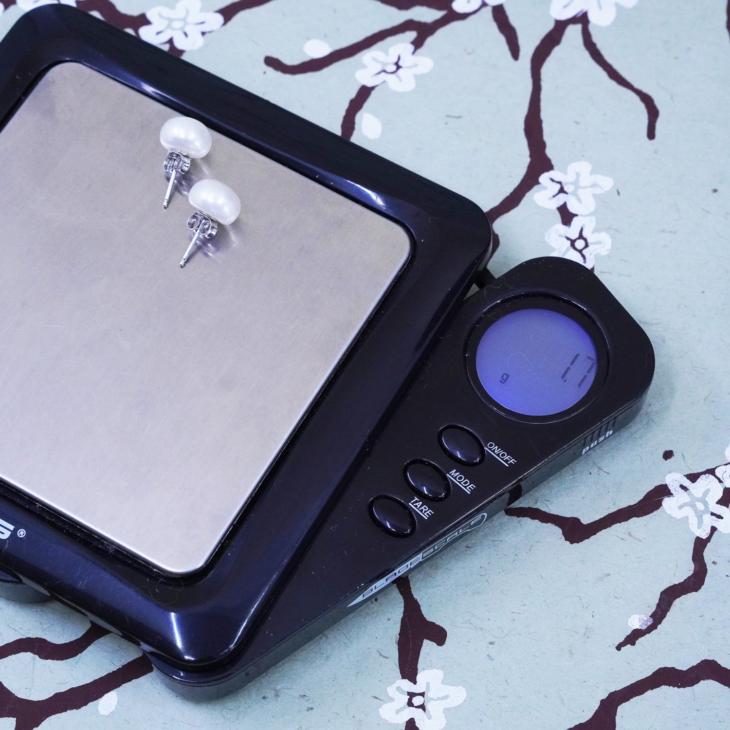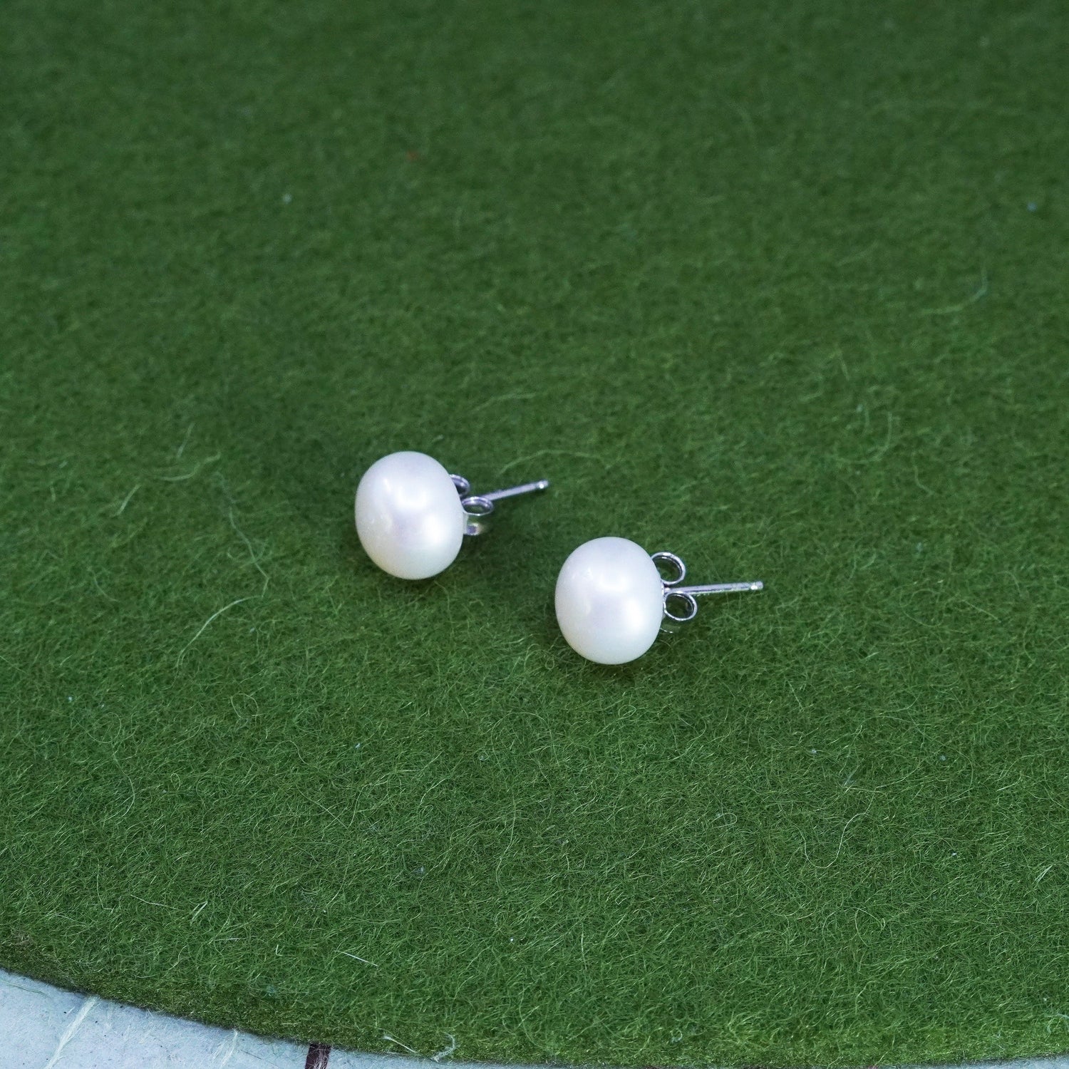 Vintage sterling silver earrings, 925 studs with white pearl, stamped 925