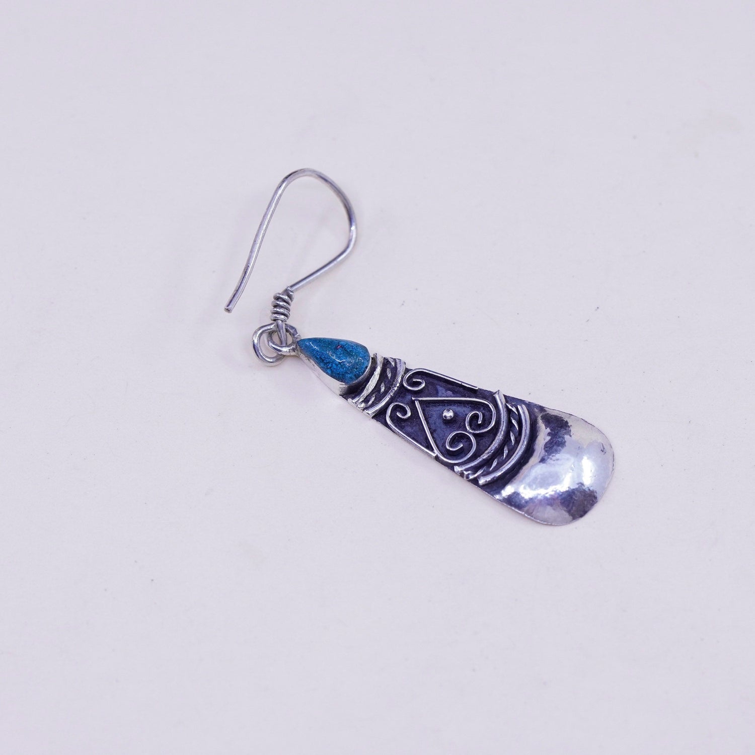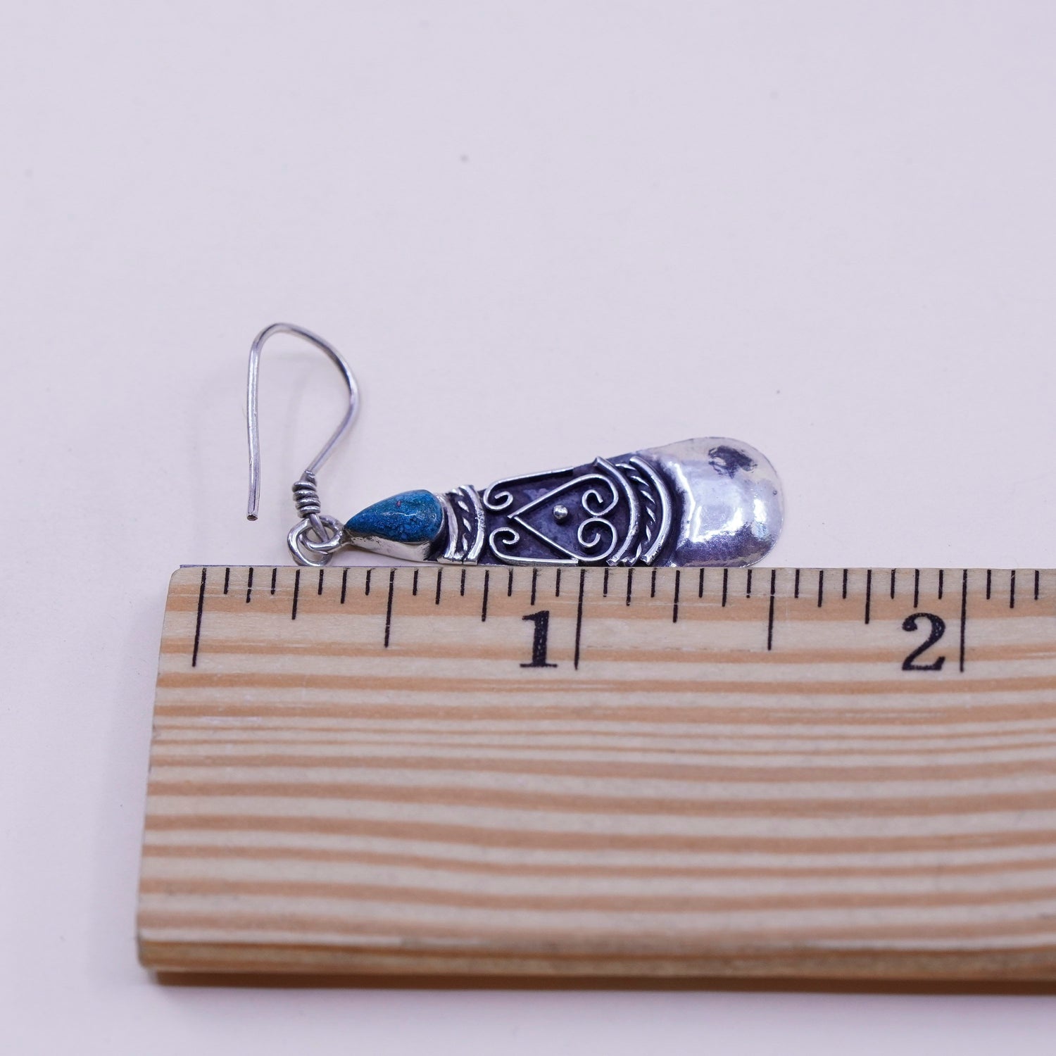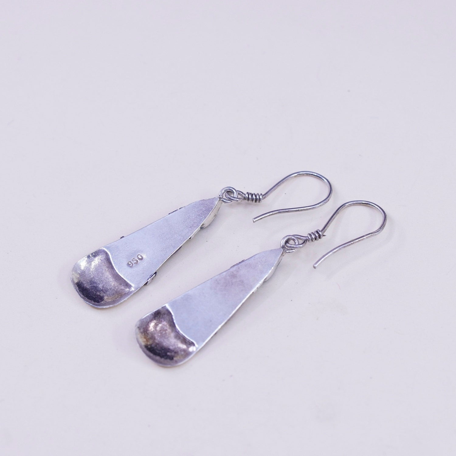 Vintage Sterling silver earrings, 950 teardrop dangle with malachite, stamped 950