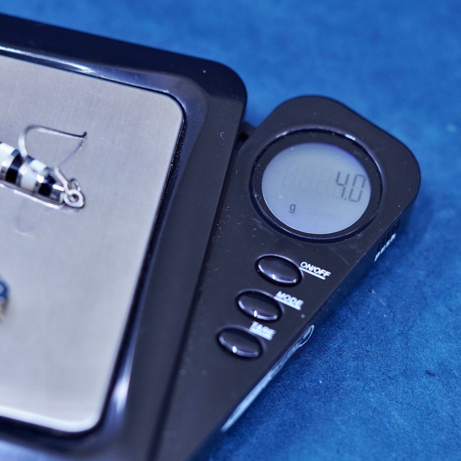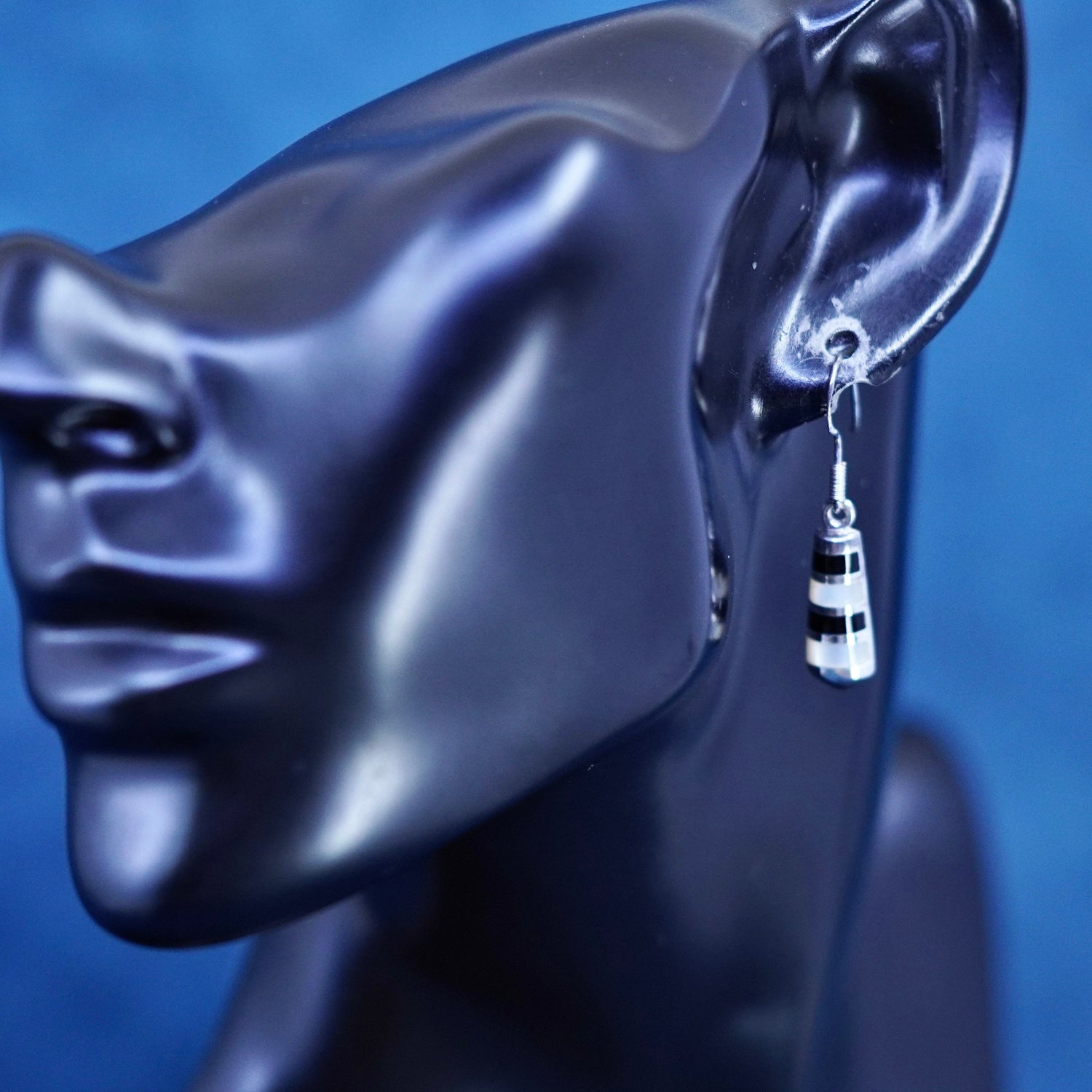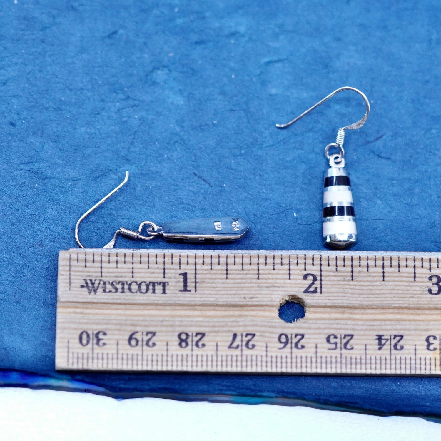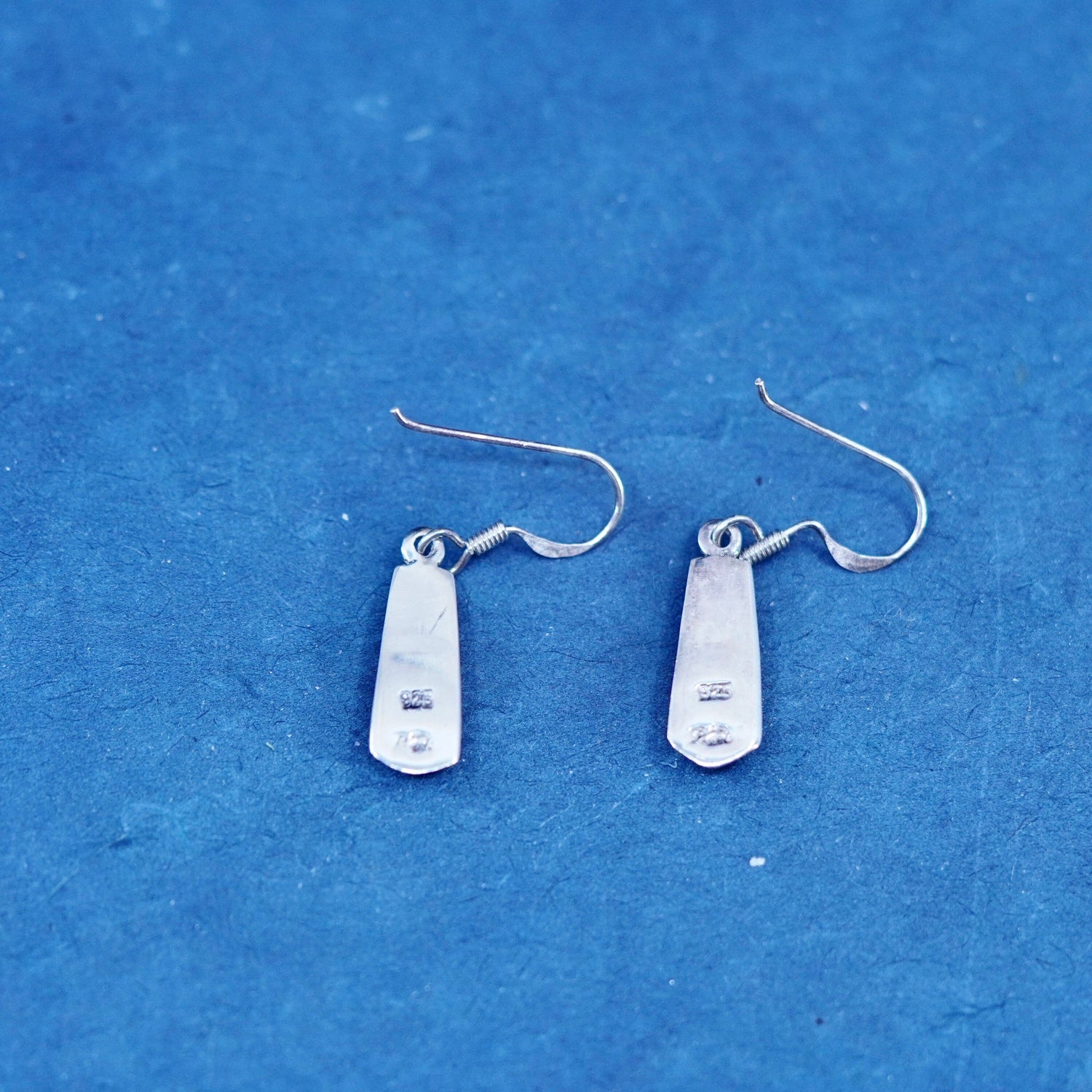 Vintage Sterling silver handmade earrings, 925 teardrop drops with mother of pearl inlay, stamped 925