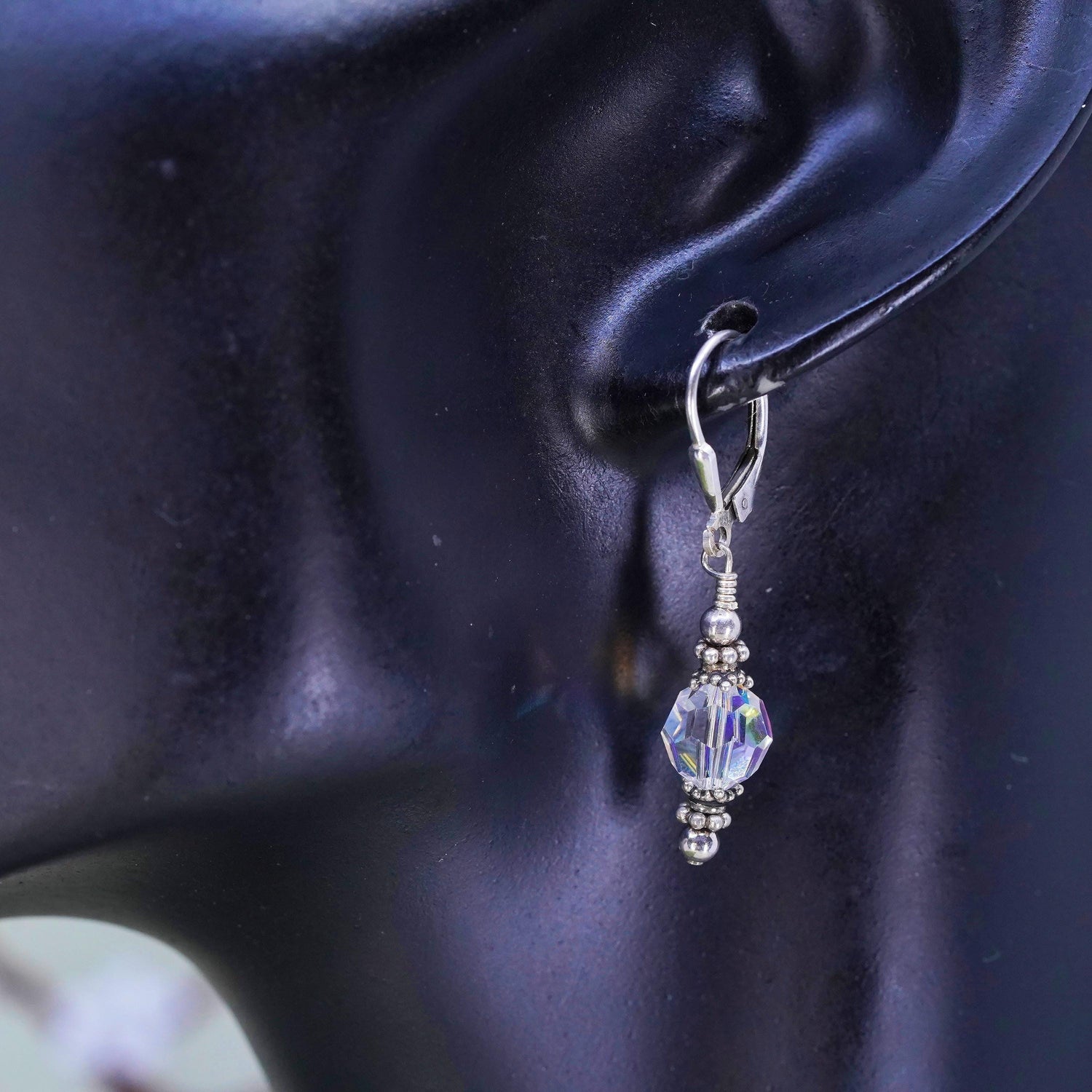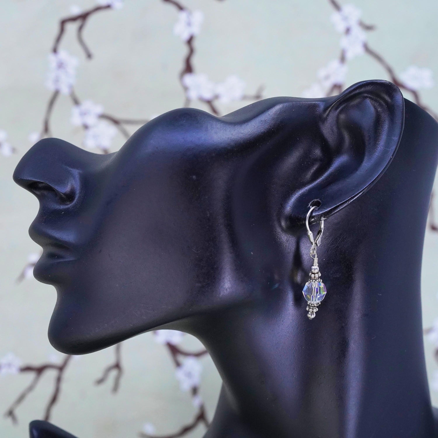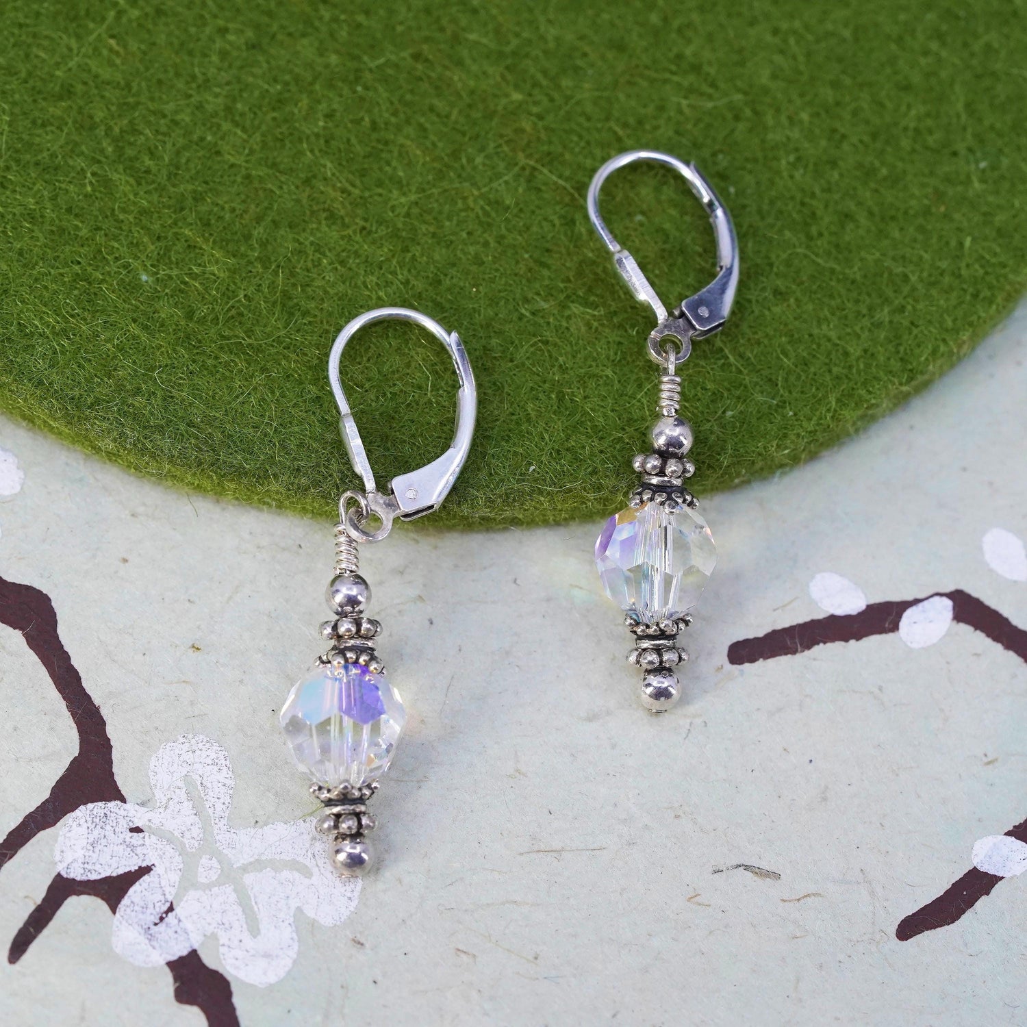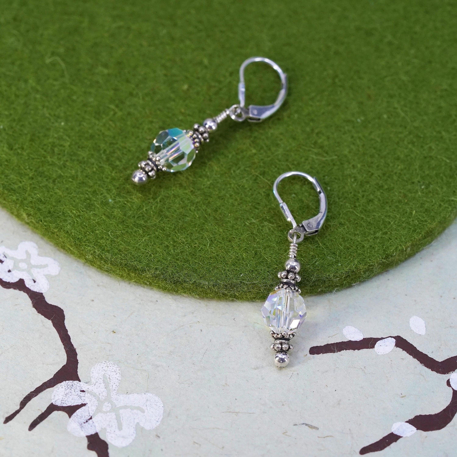 Vintage sterling silver earrings, fine 925 silver hoops with crystal beads