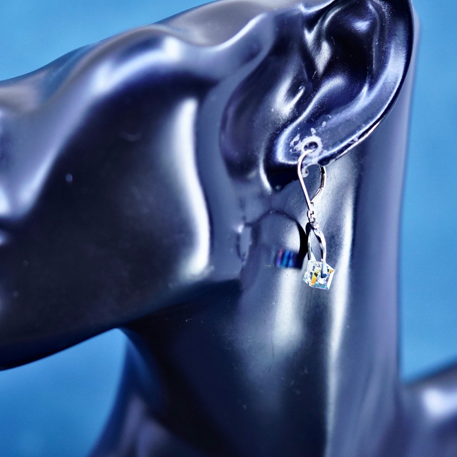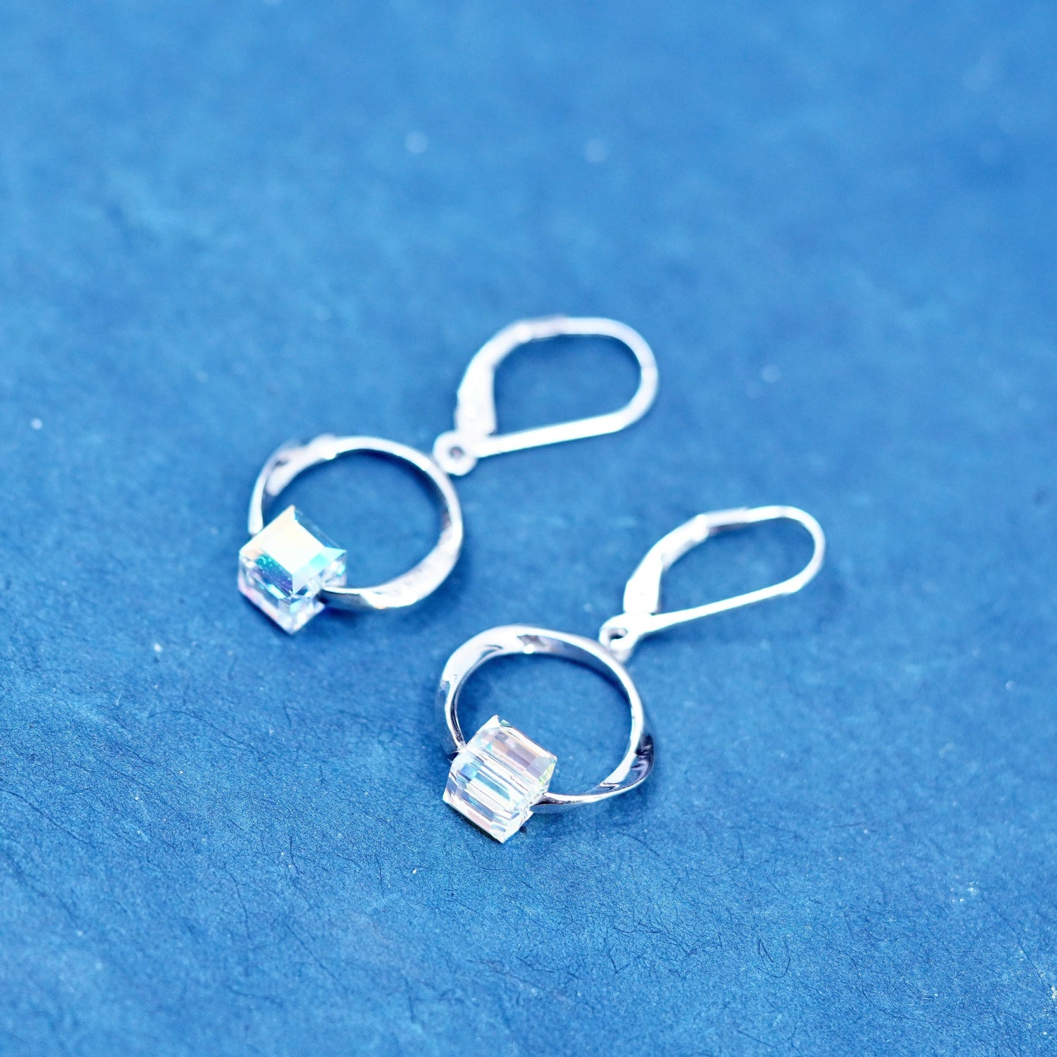 Vintage sterling silver earrings, solid 925 silver circle with cz