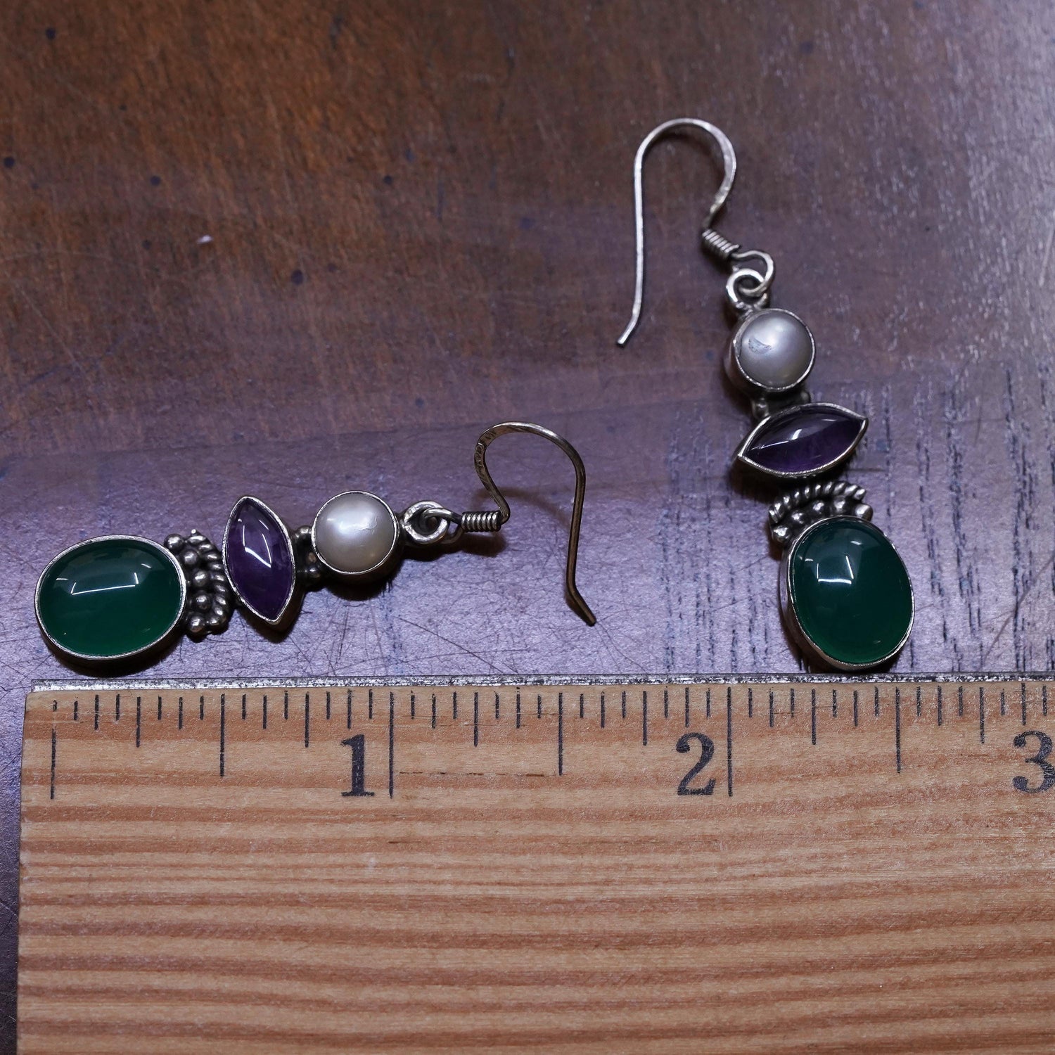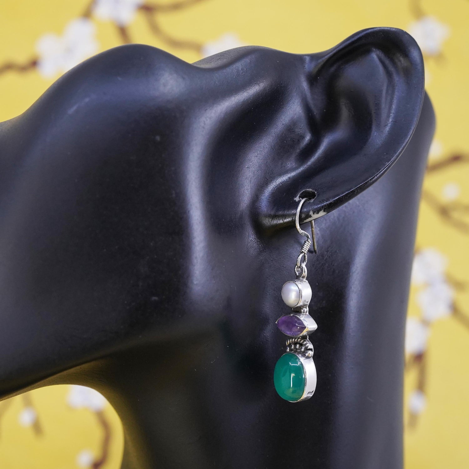 Vintage Sterling silver earrings, southwestern 925 dangles pearl jade amethyst