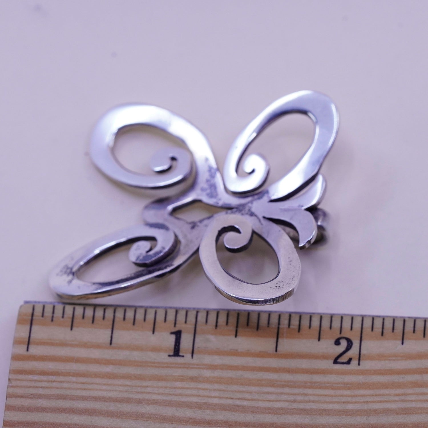 Vintage sterling silver filigree butterfly pendant, 925 handmade charm