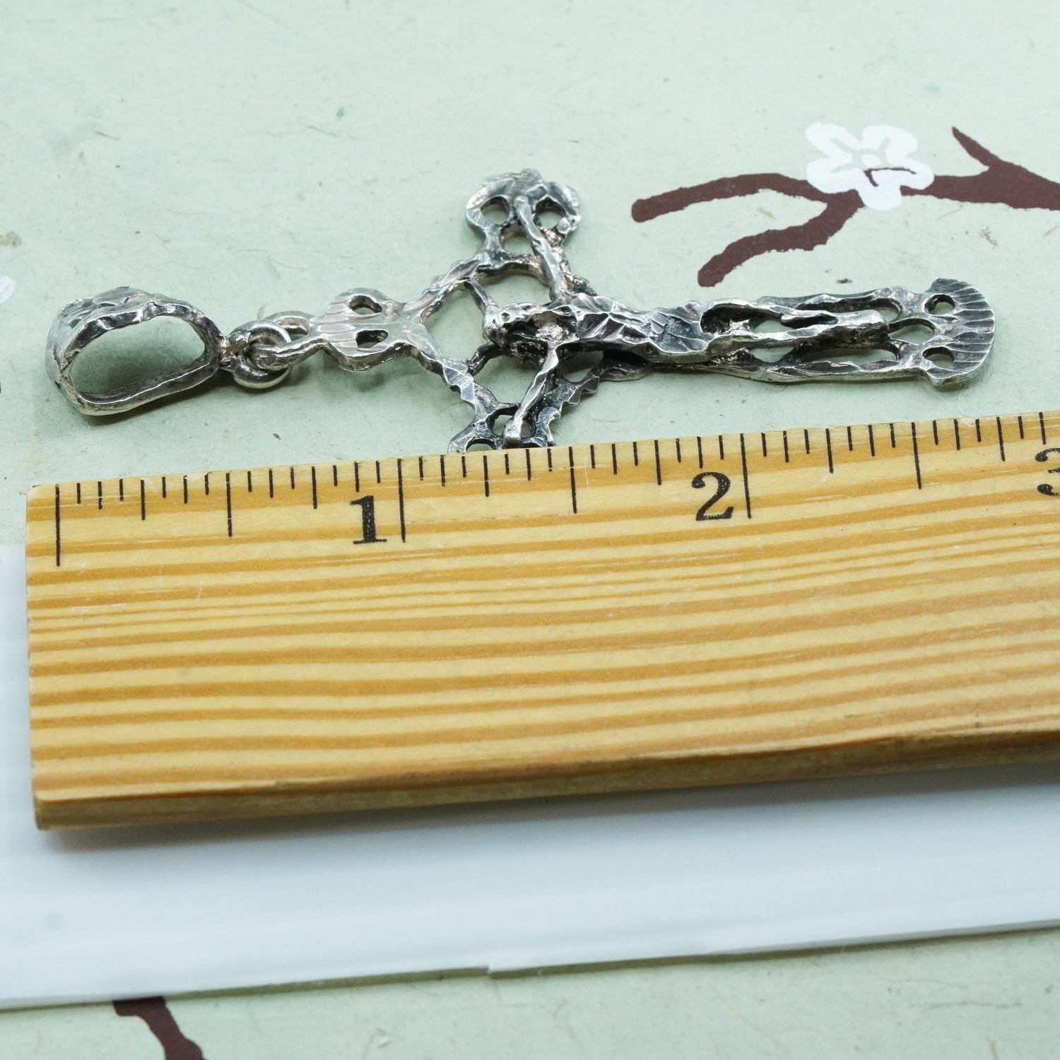 Vintage Sterling silver filigree pendant, 925 cross charm with Jesus