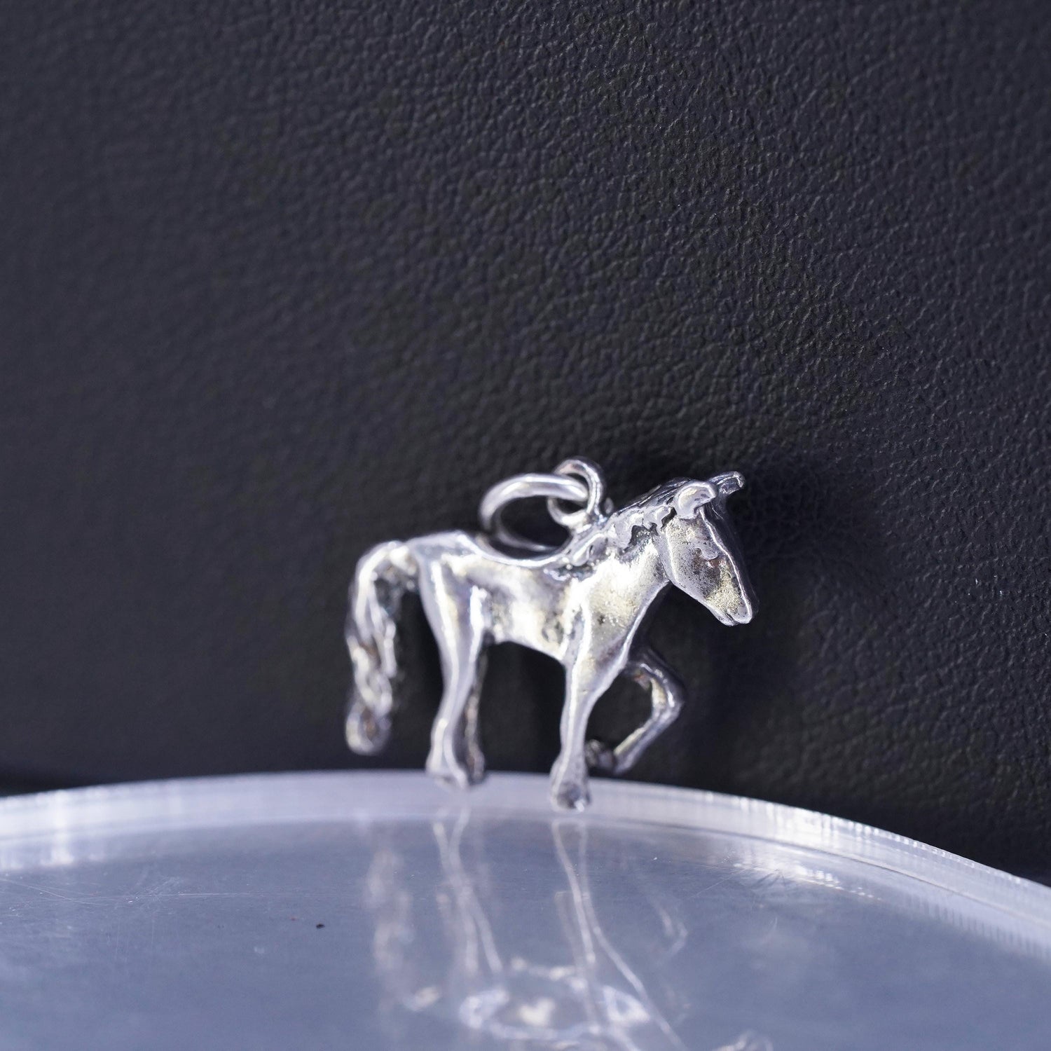 Vintage Sterling silver handmade 925 horse charm pendant, Stamped Ster