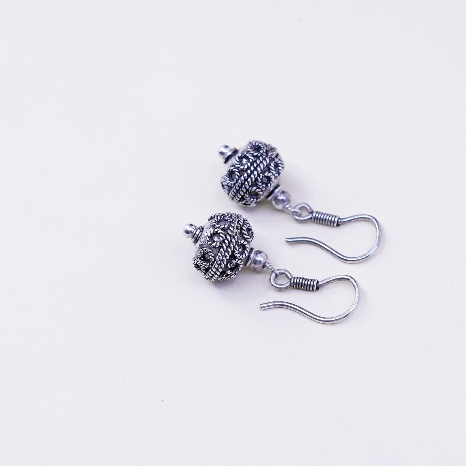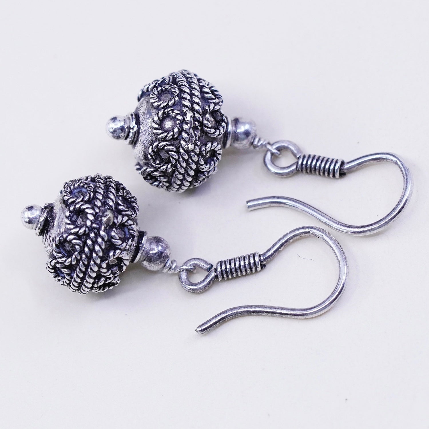 Vintage Sterling silver handmade Bali earrings, 925 swirl patterned bead