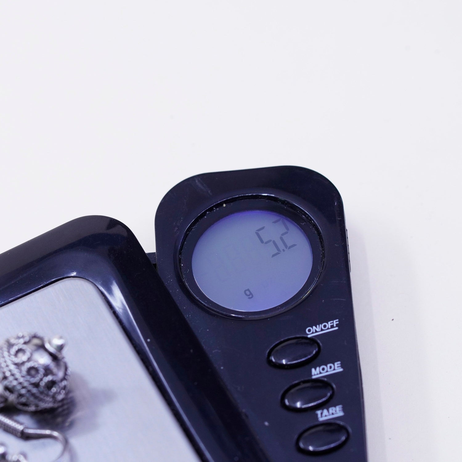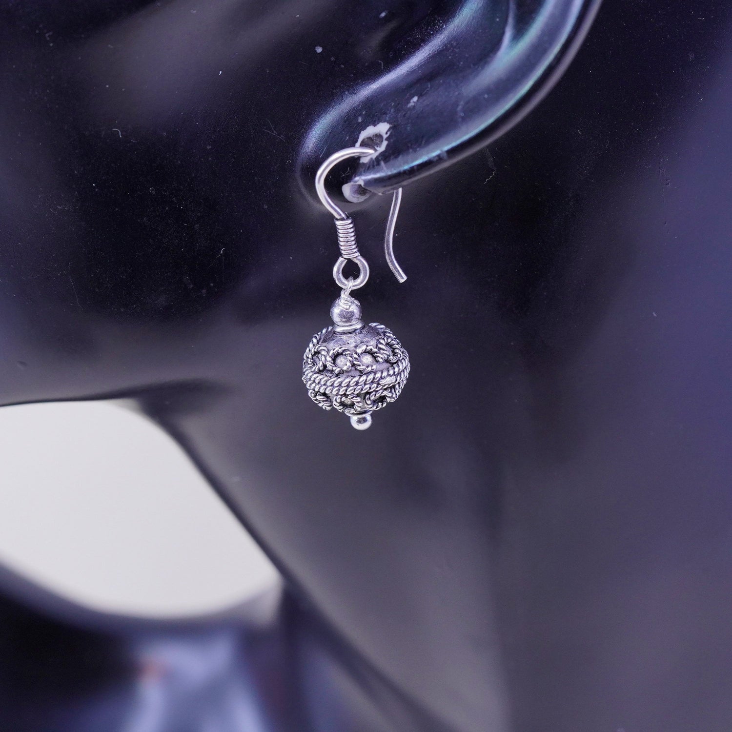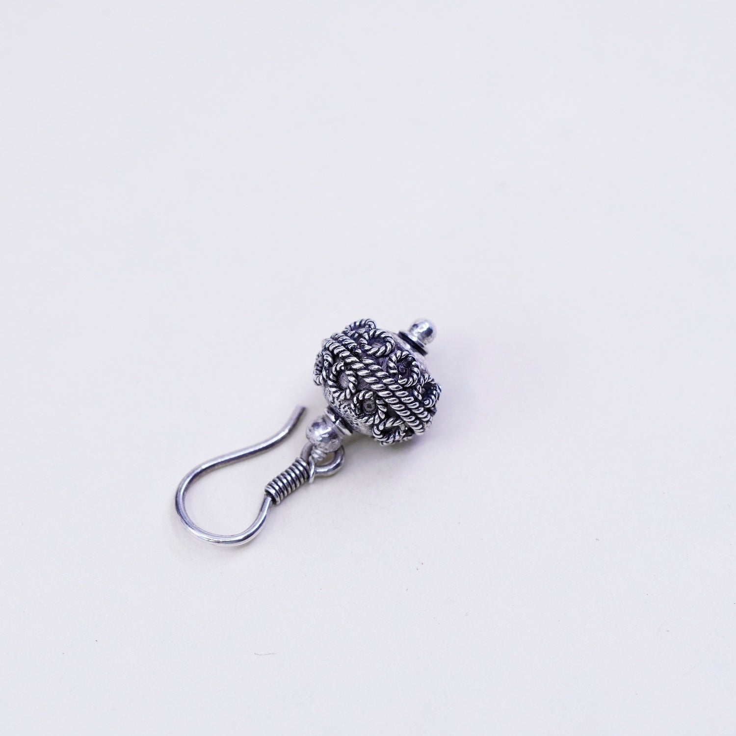 Vintage Sterling silver handmade Bali earrings, 925 swirl patterned bead, silver tested