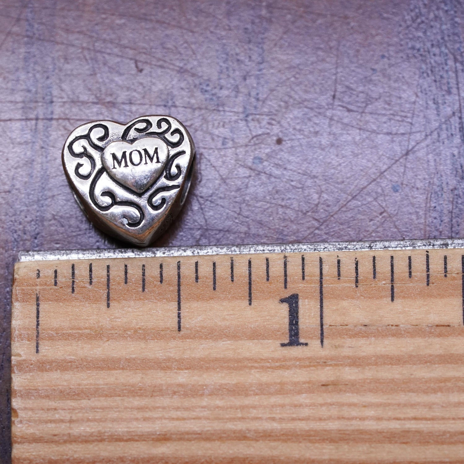 Vintage Sterling silver handmade bead charm, 925 heart pendant embossed mom, stamped 925 Thai IBB