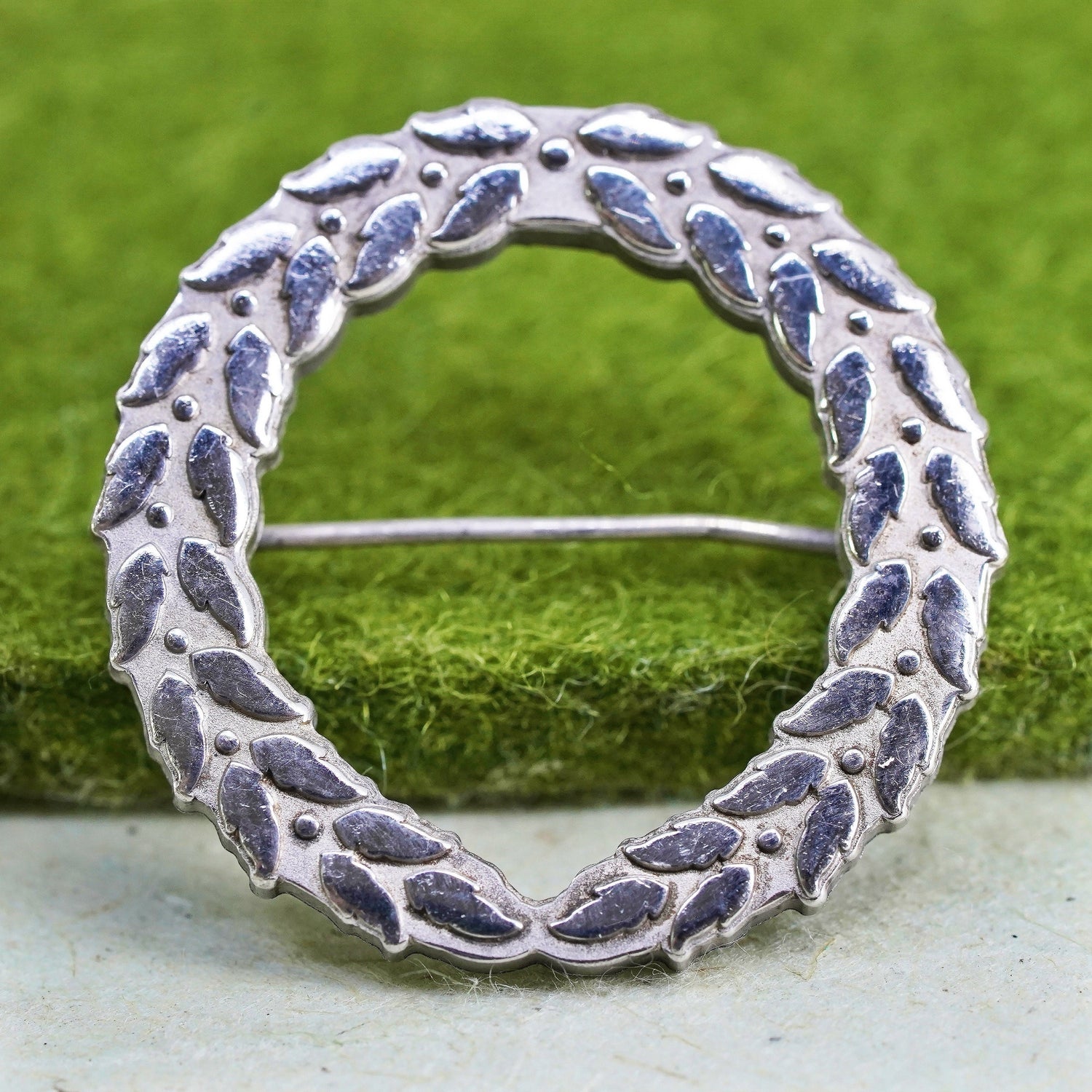 Vintage sterling silver handmade brooch, 925 circle, Christmas pin