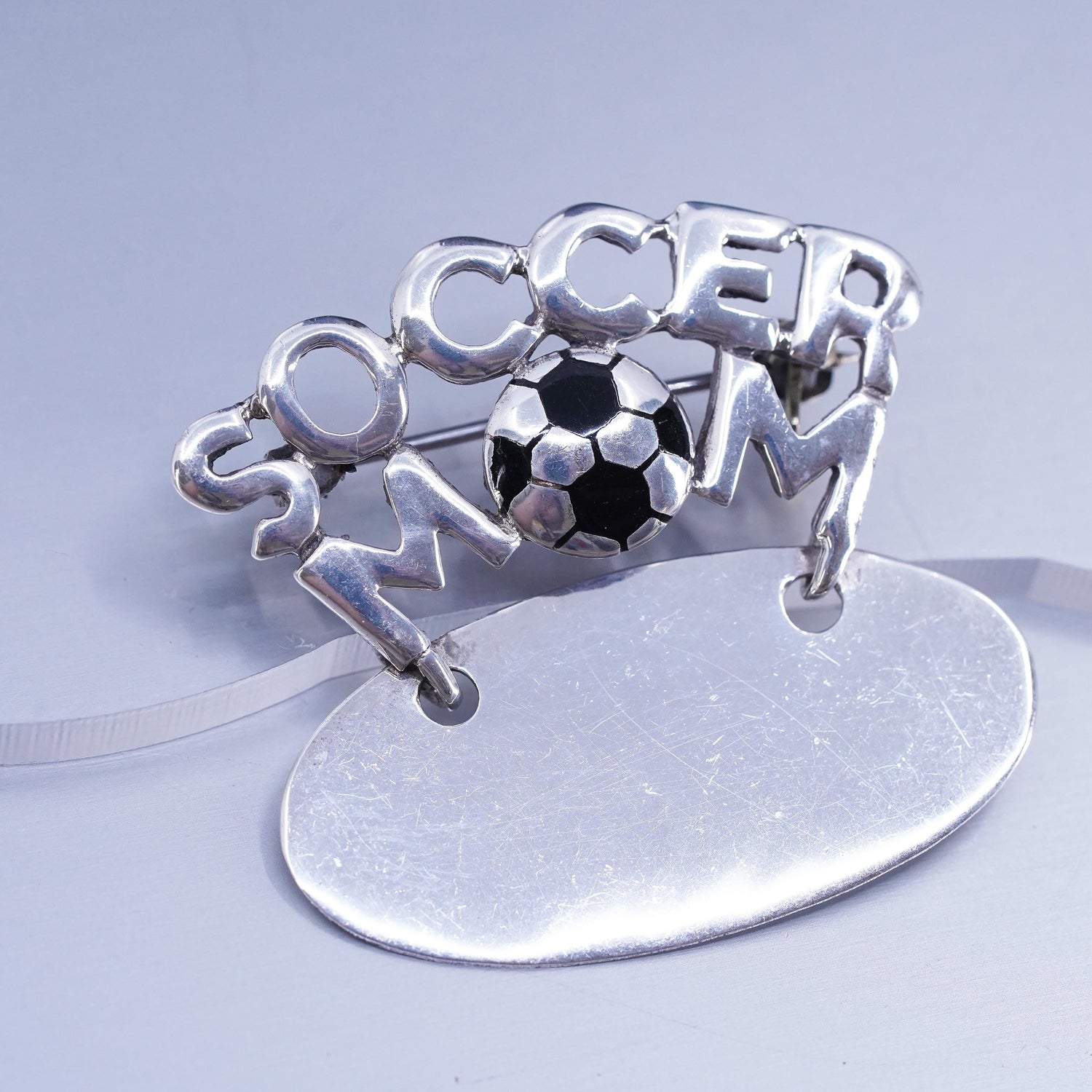 Vintage sterling silver handmade brooch, 925 soccer mom pin with blank tag