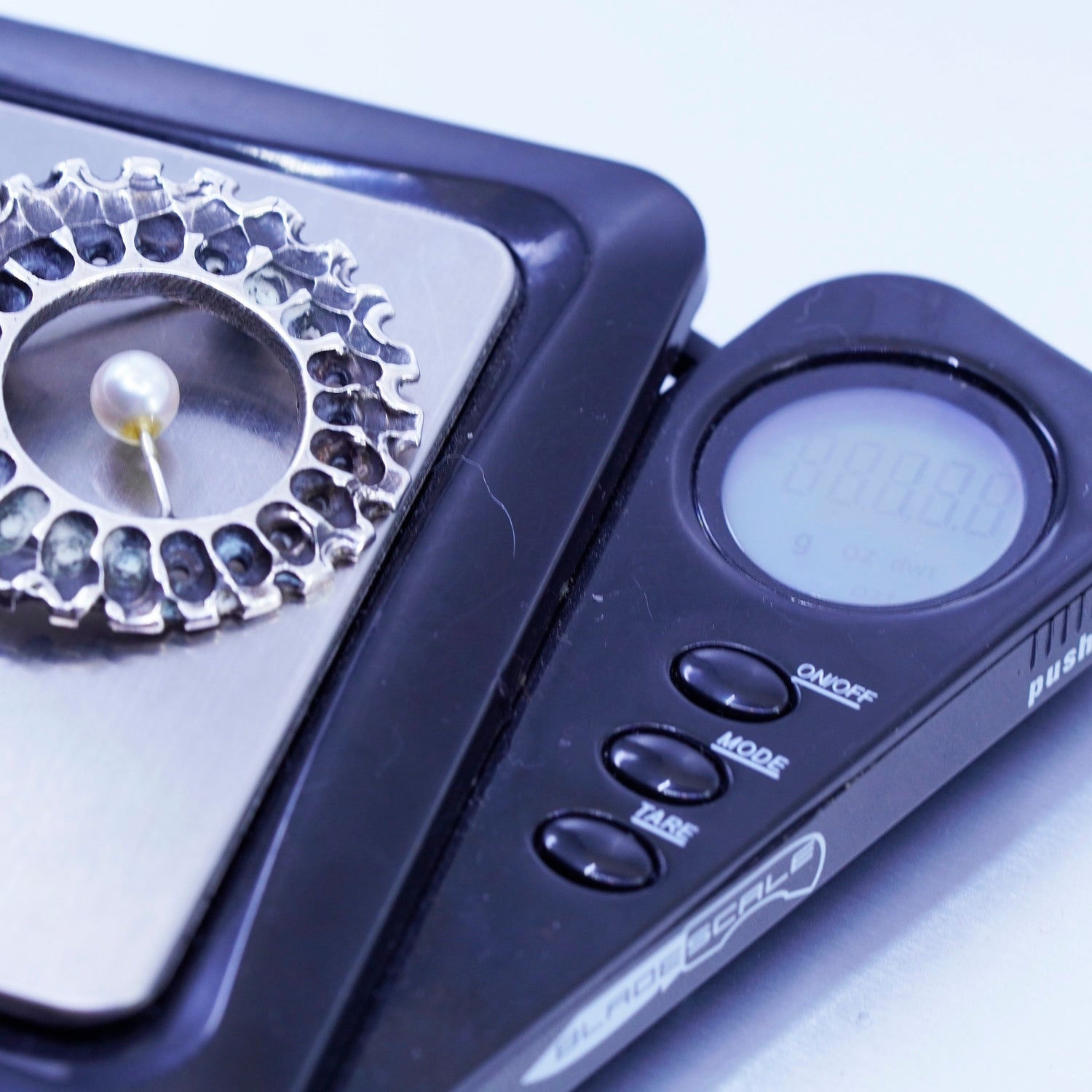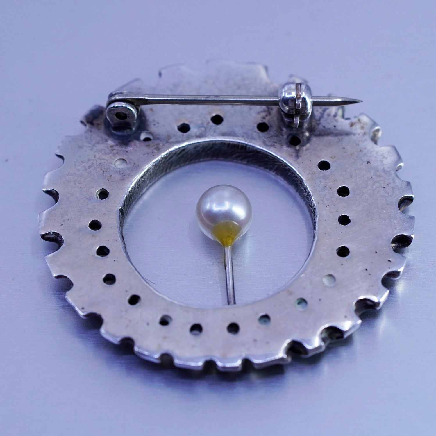 Vintage sterling silver handmade brooch, modern 925 circle pin and pearl