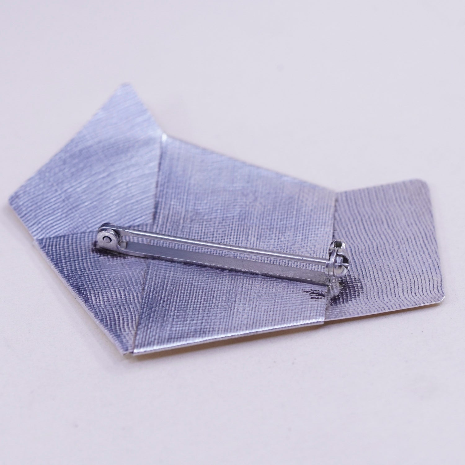 Vintage sterling silver handmade brooch, modern textured 925 pin