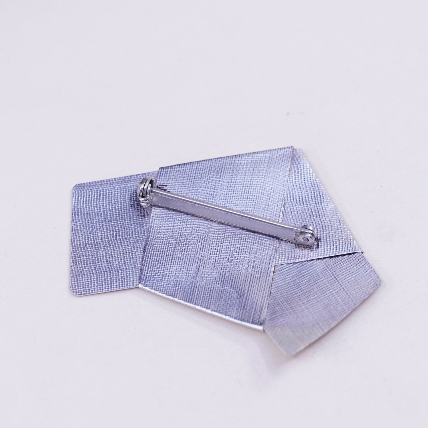 Vintage sterling silver handmade brooch, modern textured 925 pin, stamped Sterling