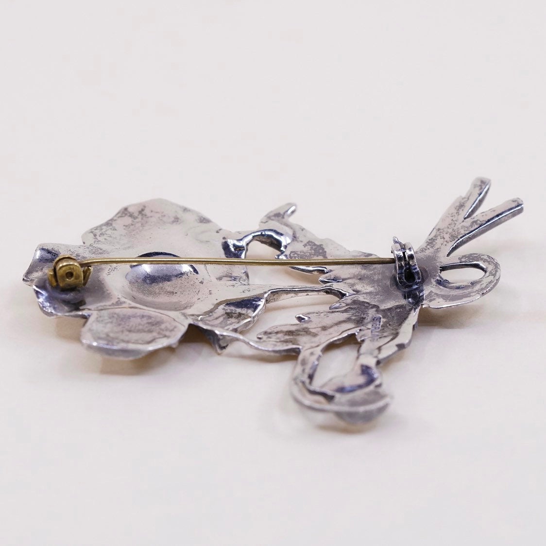 Vintage sterling silver handmade brooch, solid 925 silver flower pin, stamped Sterling