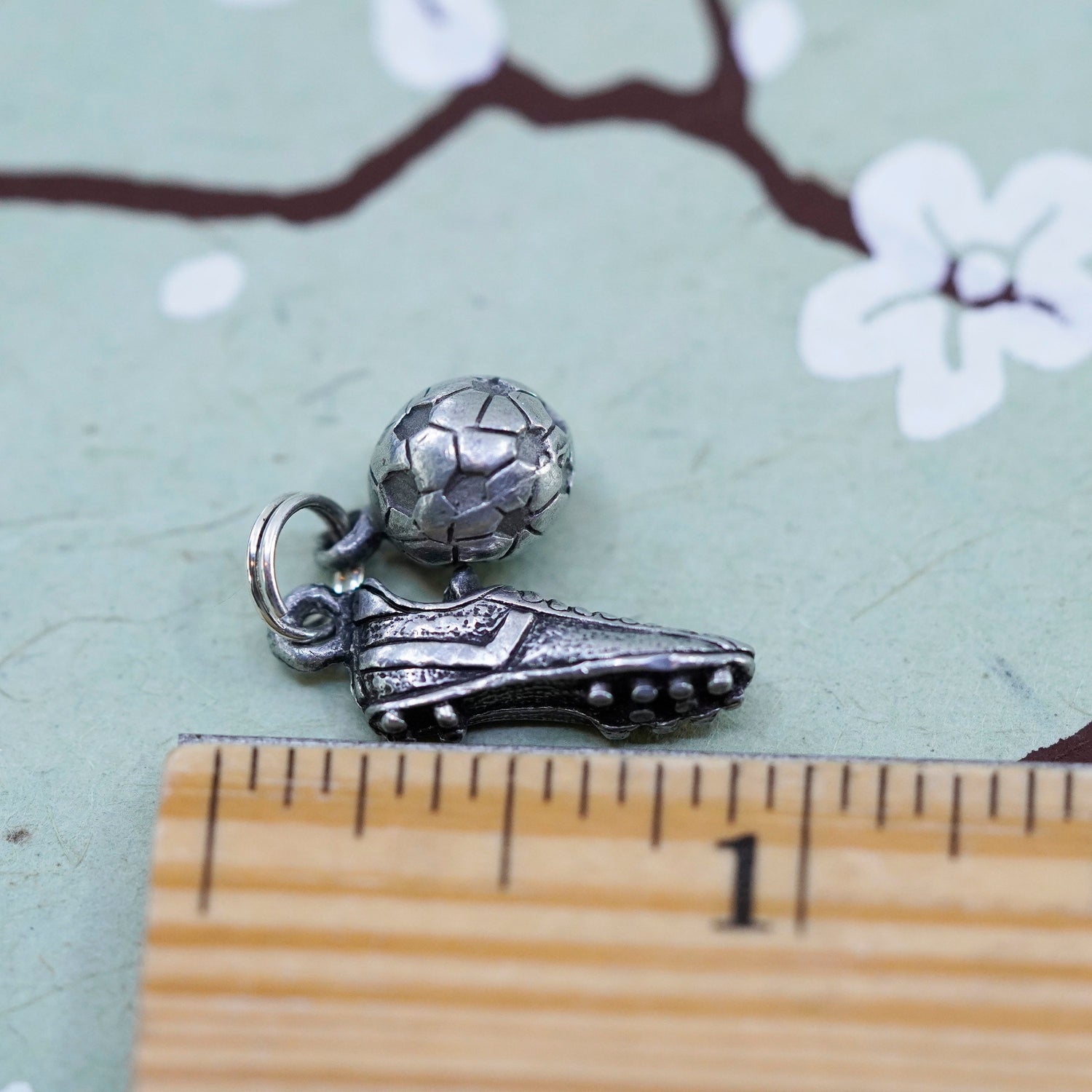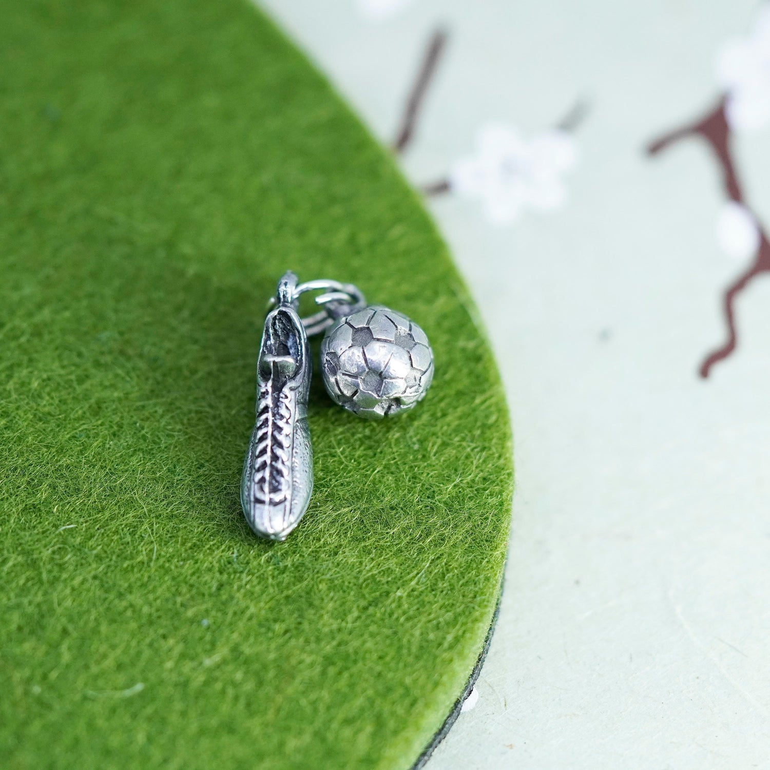 Vintage sterling silver handmade charm, 925 football, soccer shoe charms, silver tested