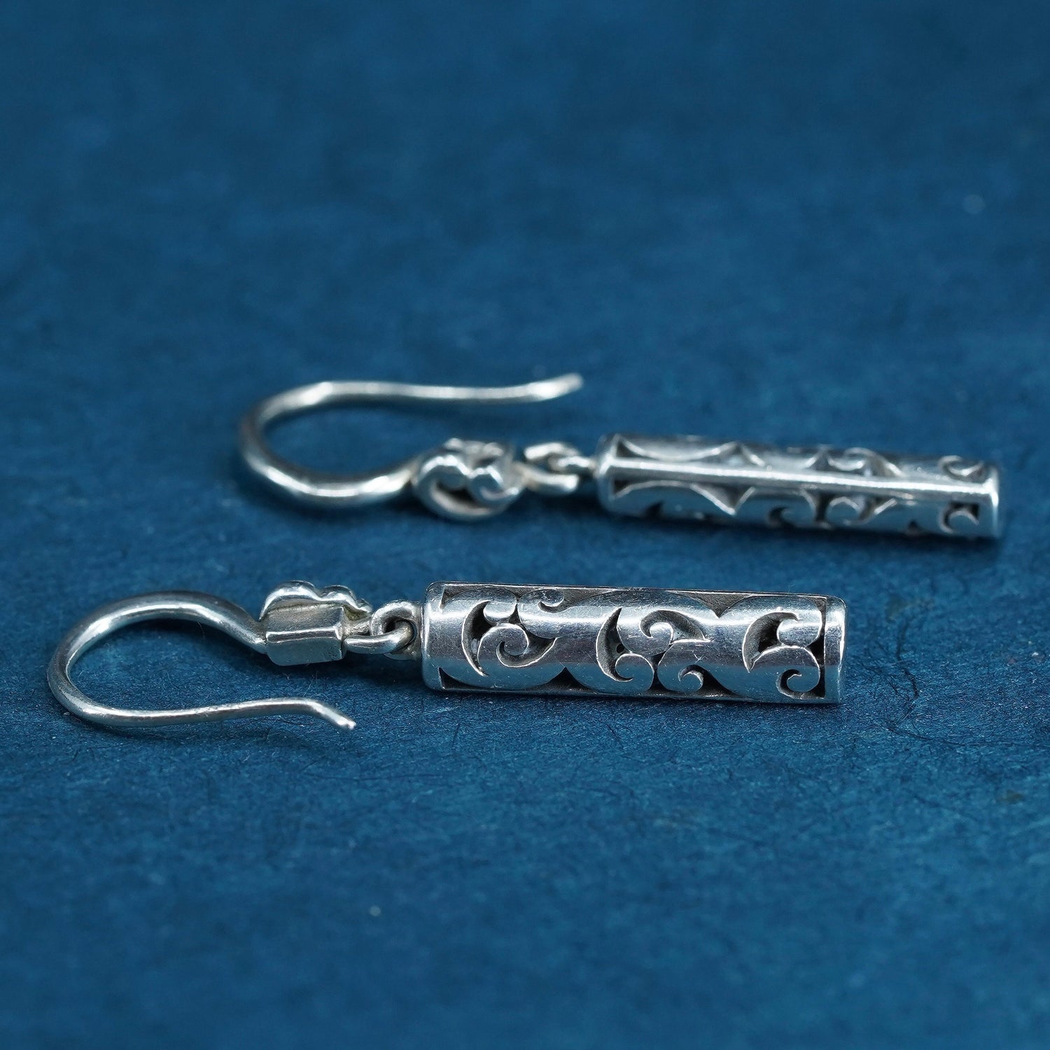 Vintage sterling silver handmade earrings, 925 Bali beads long drop