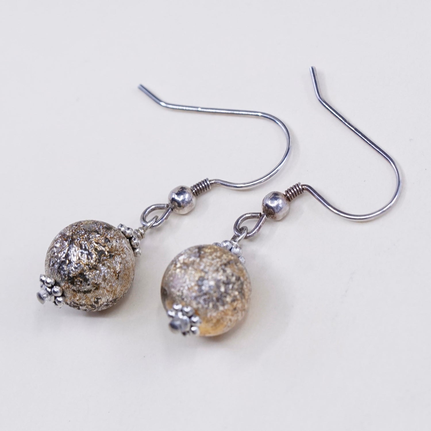 Vintage sterling silver handmade earrings, 925 beads dangles