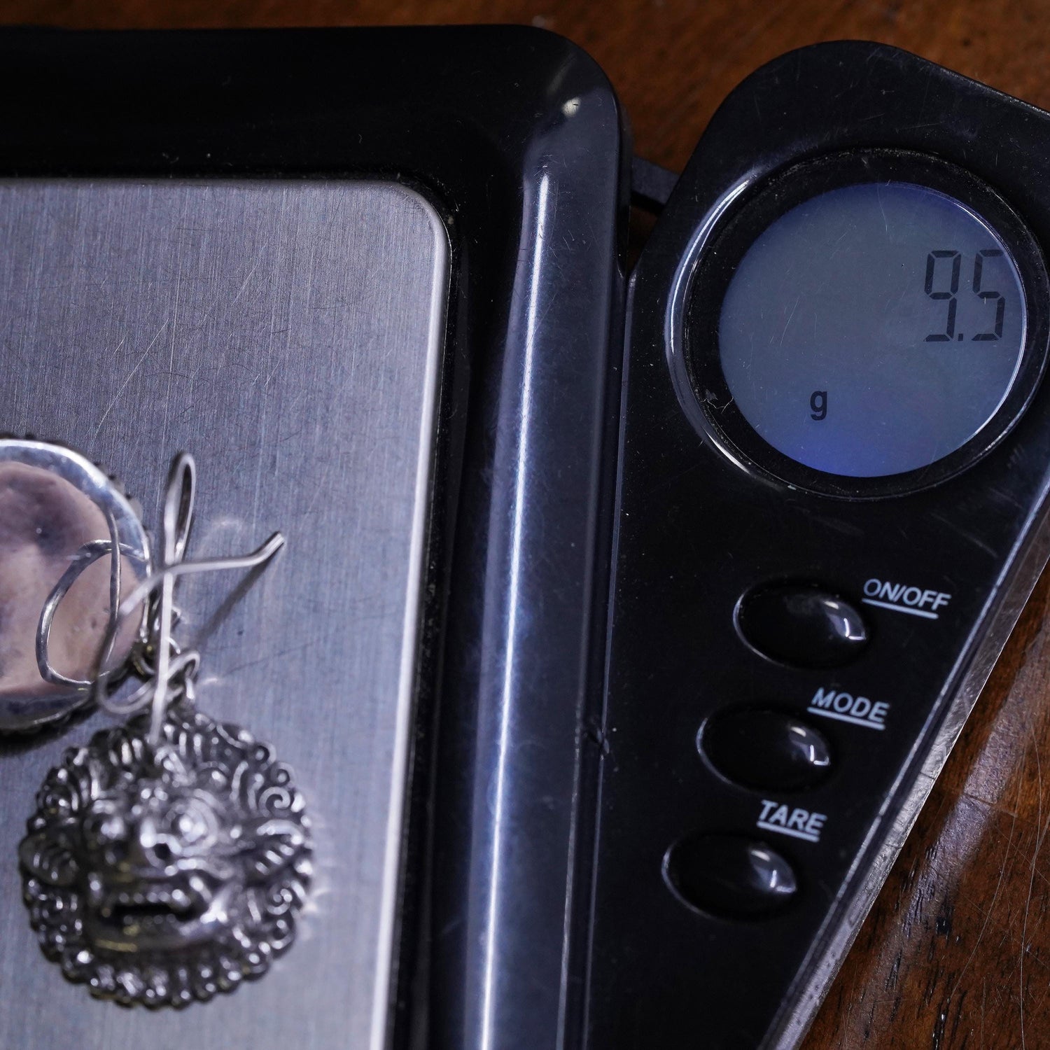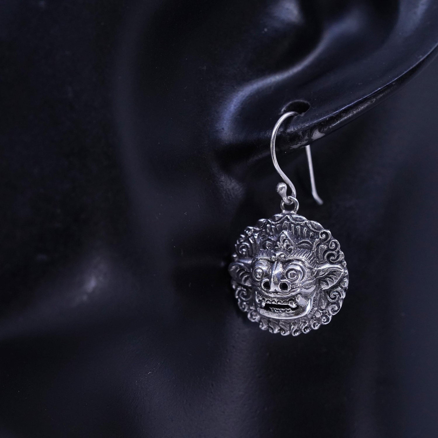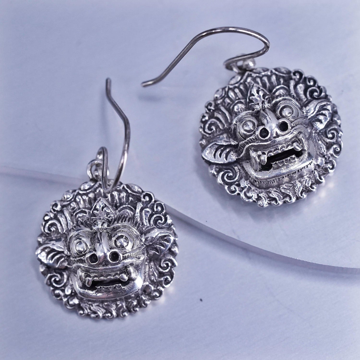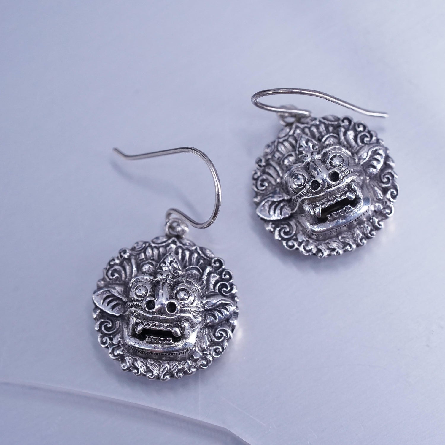 vintage Sterling silver handmade earrings, 925 lion head dangles, stamped 925