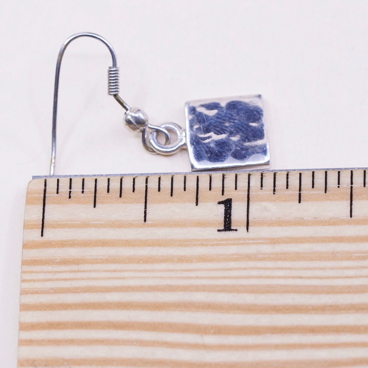 Vintage Sterling silver handmade earrings, hammered 925 square dangle, Stamped 925 mexico