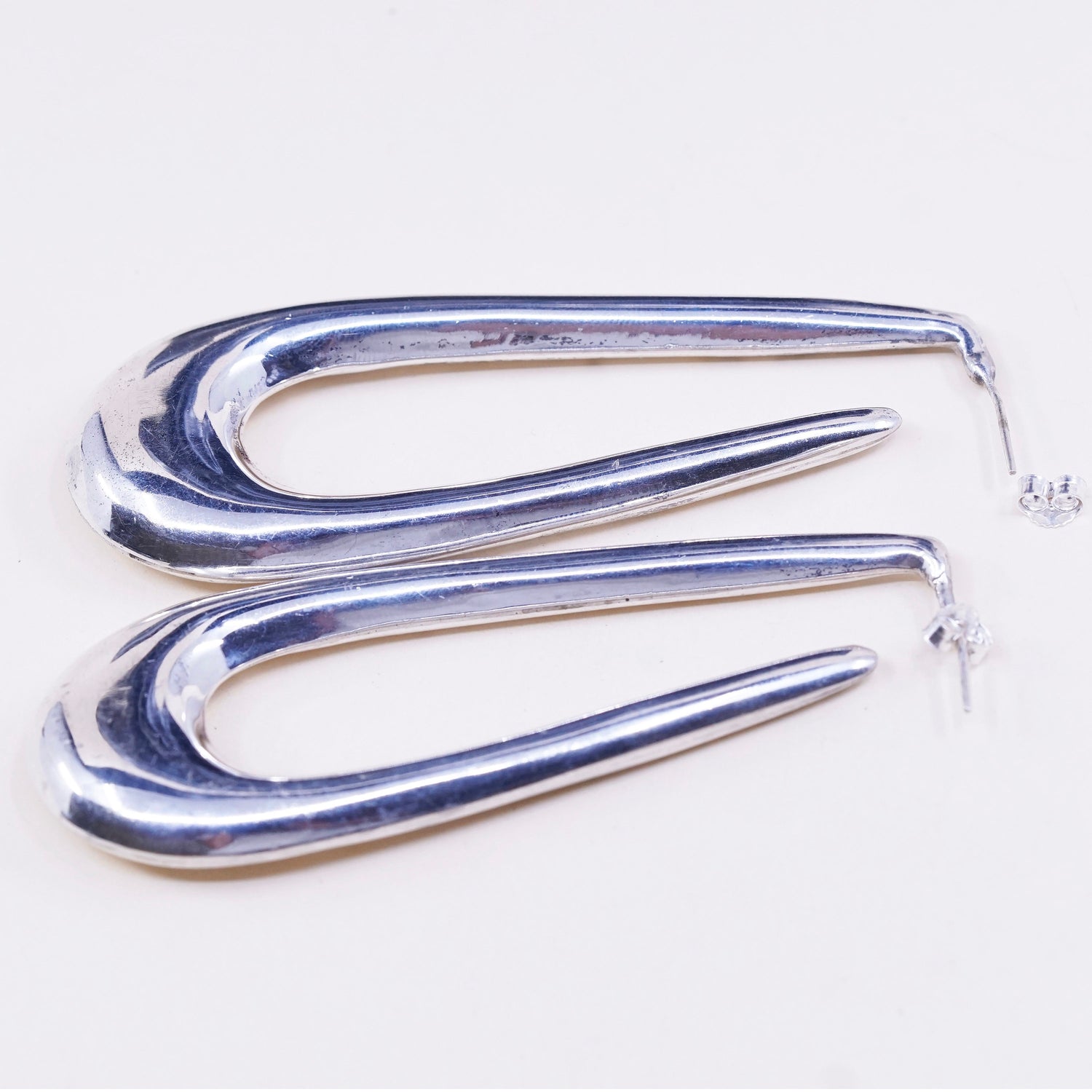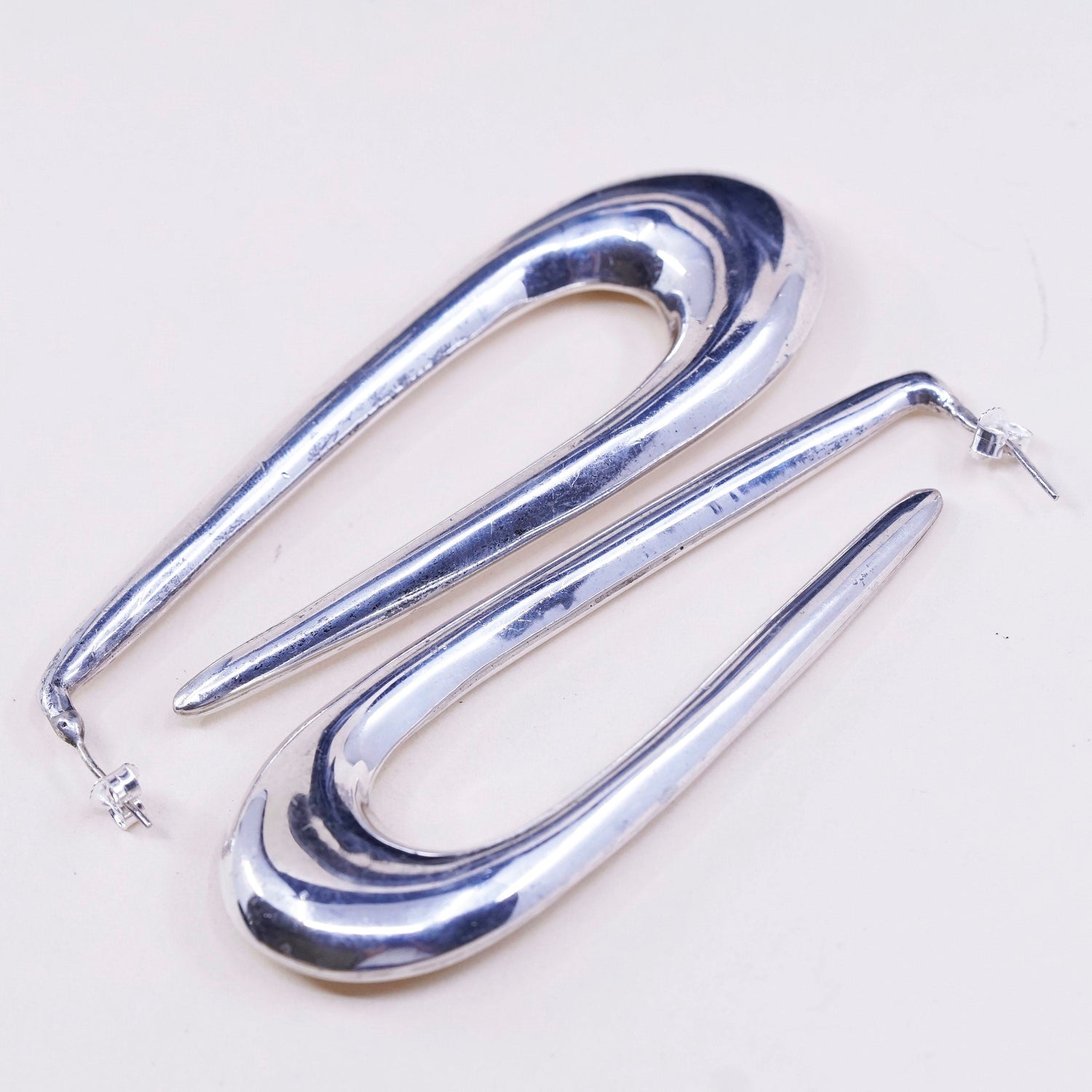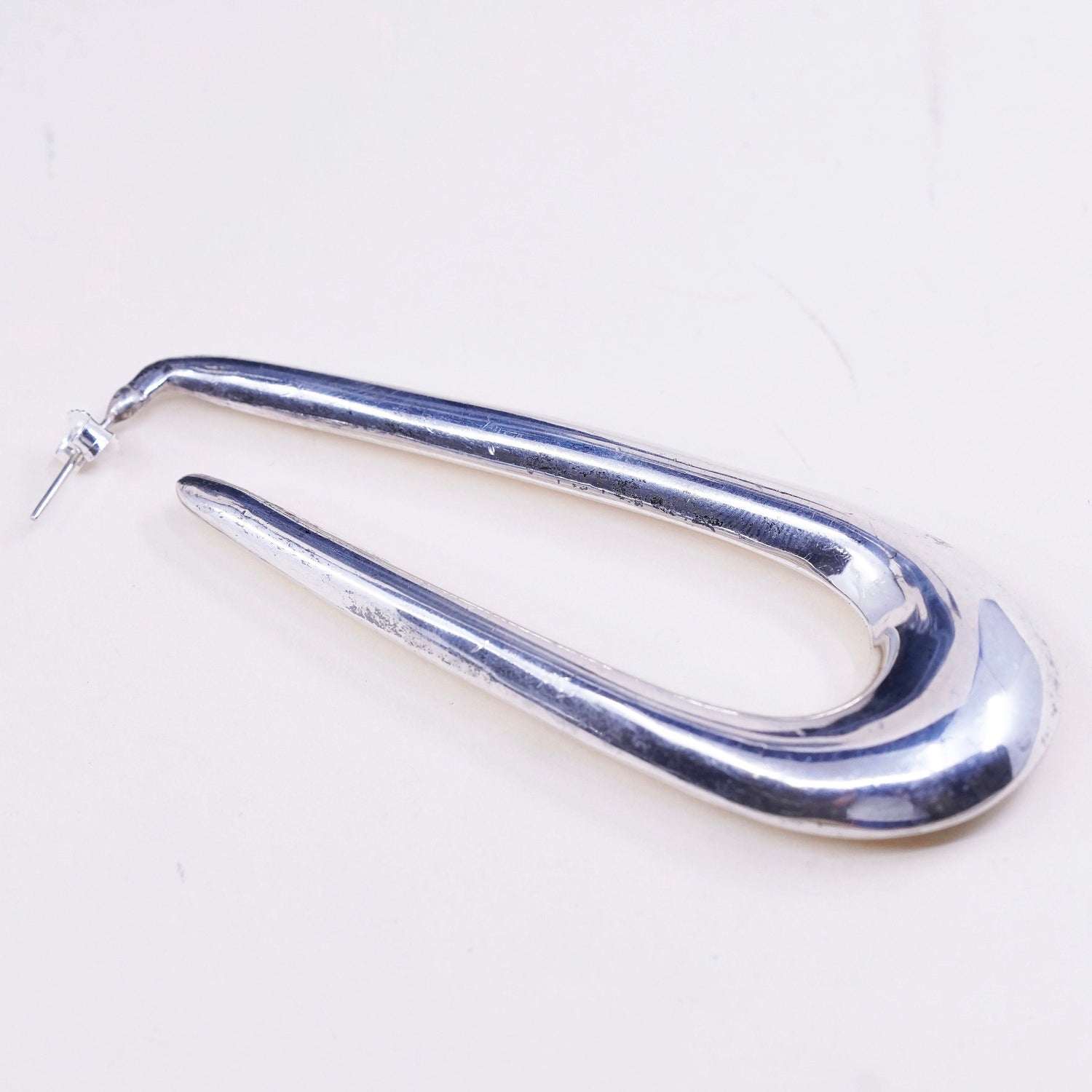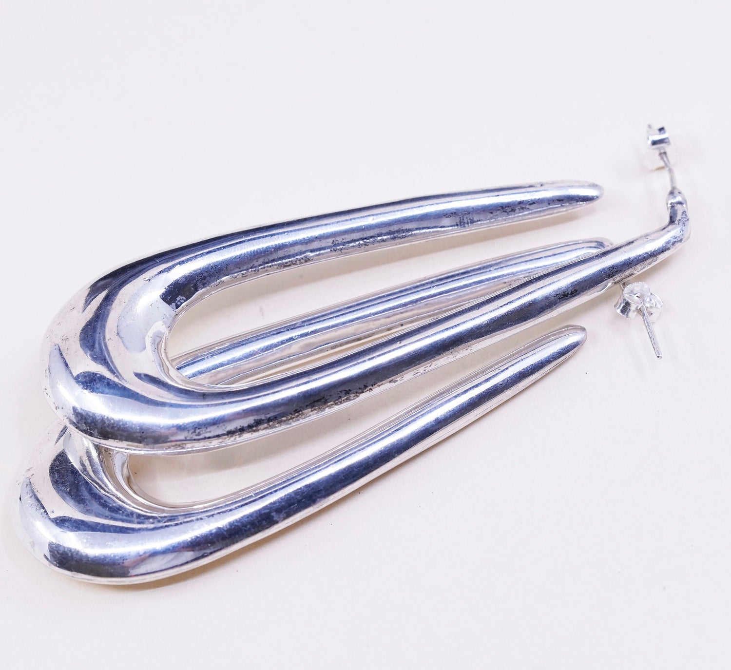 Vintage Sterling silver handmade earrings, heavy 925 silver teardrop studs, silver tested