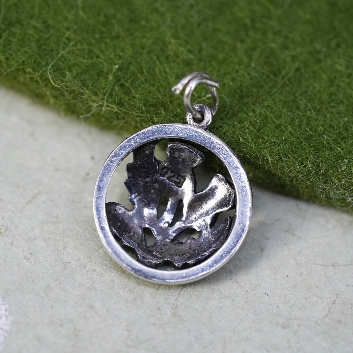 Vintage sterling silver handmade flower brooch, thistle circle pendant, stamped 925