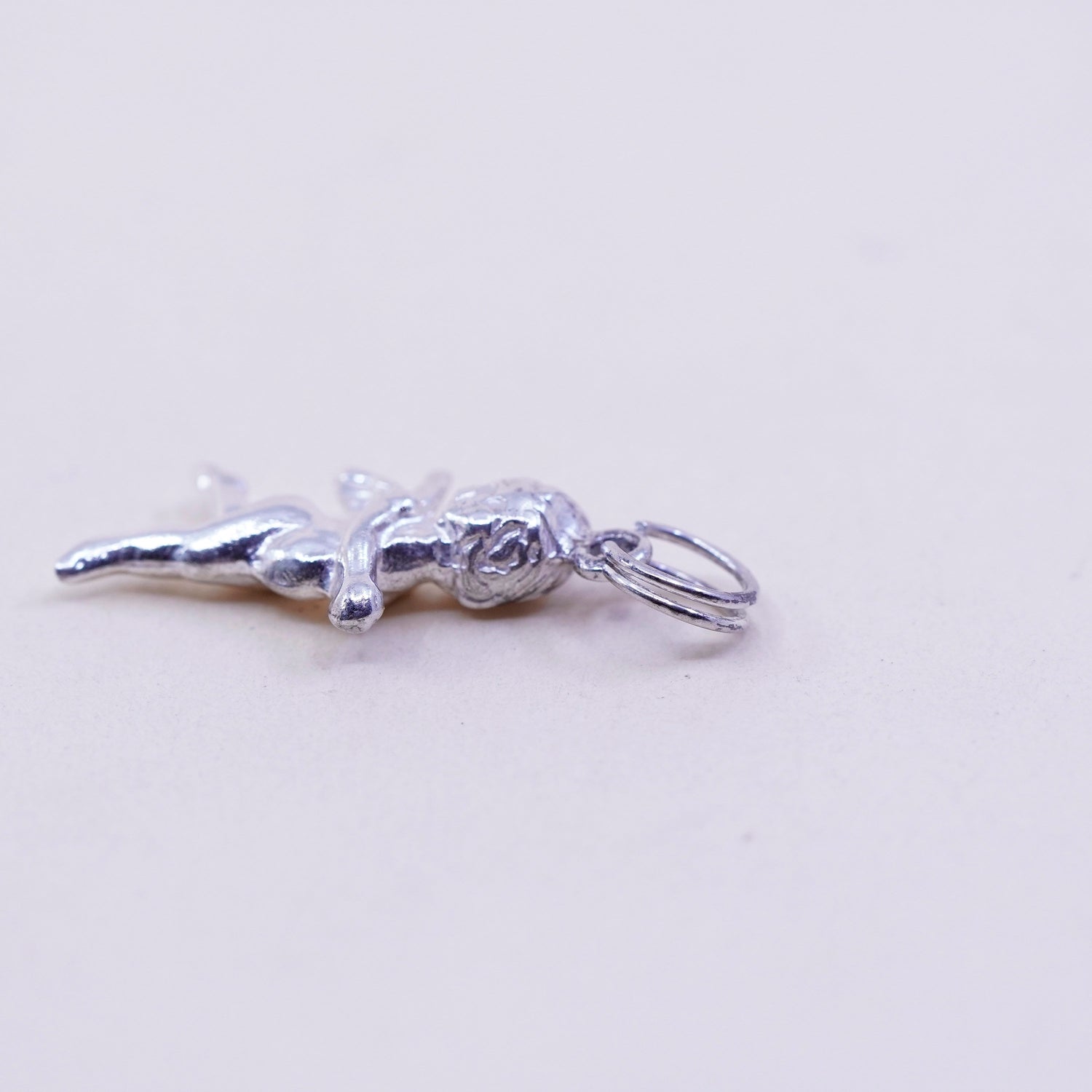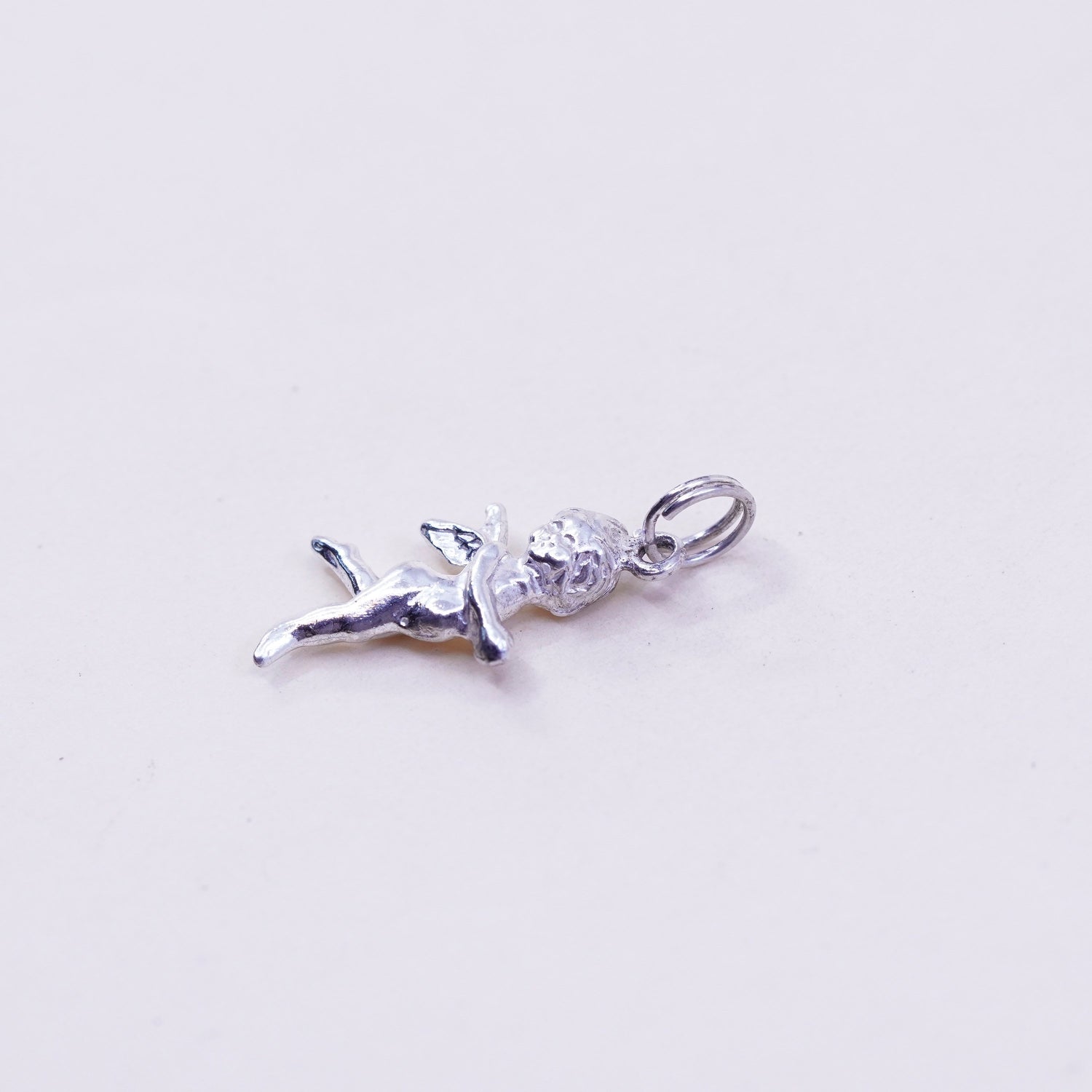 Vintage sterling silver handmade pendant, 925 angel charm, stamped ster