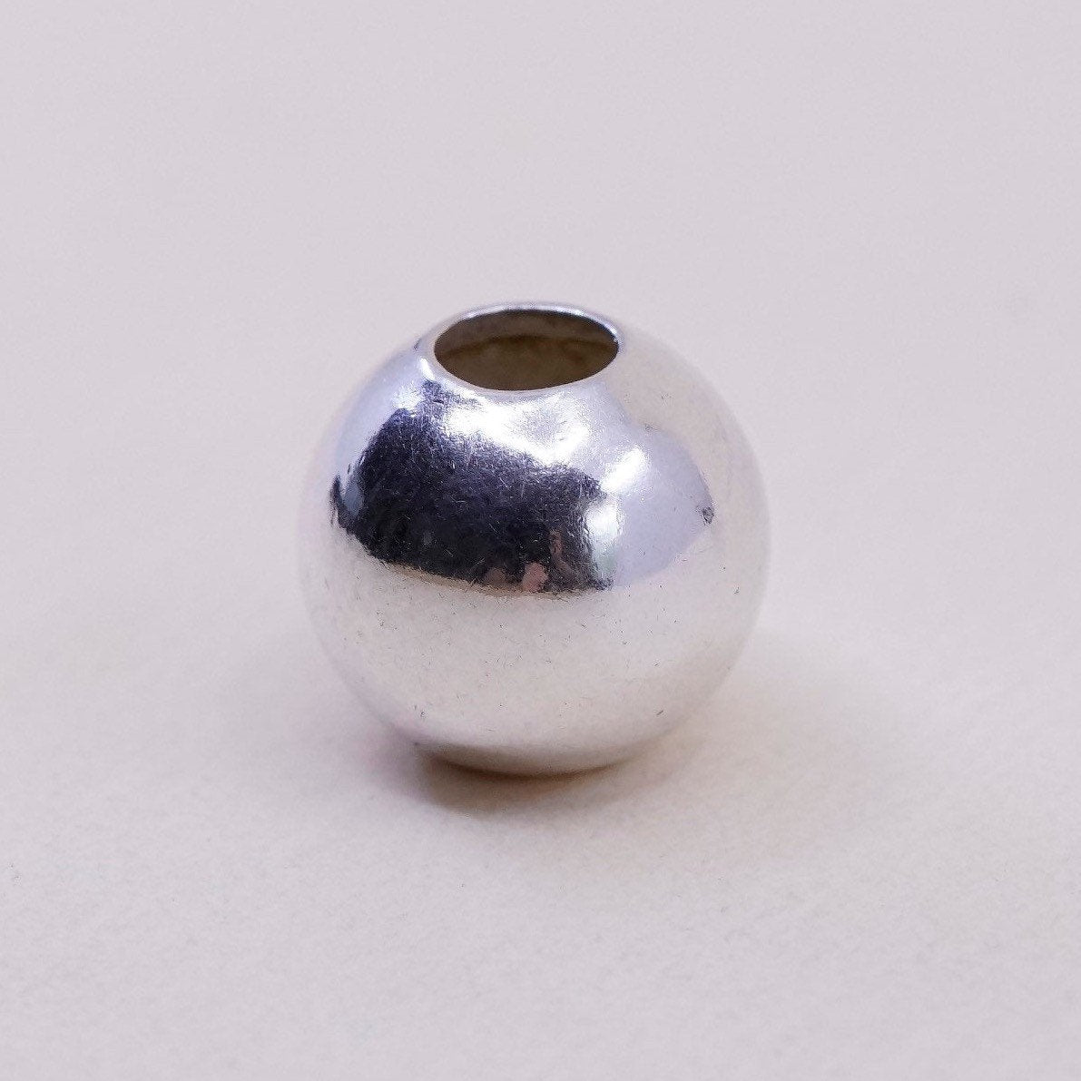 Vintage sterling silver handmade pendant, 925 bead charm embossed heart, silver tested